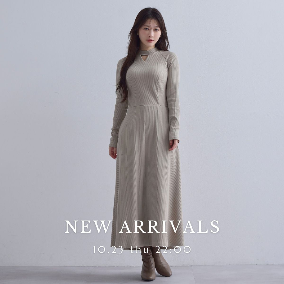 [10/23 22:00発売 期間限定 300円OFF]キーネックリブカットワンピース:サンドベージュ[102サイズ対応]