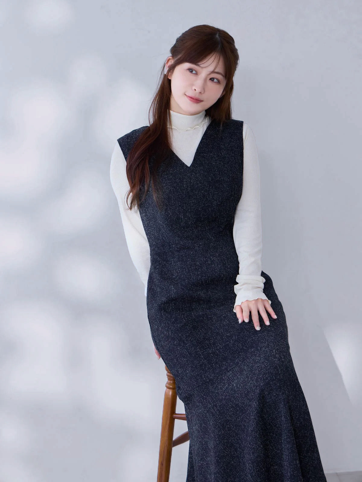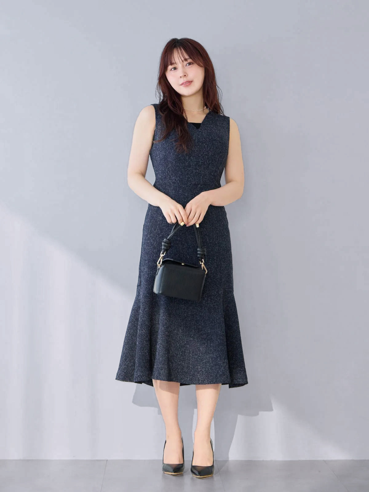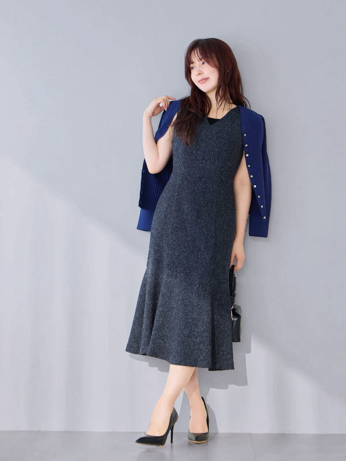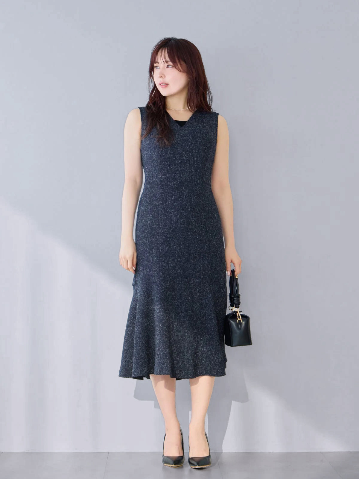 ツイードライクマーメイドワンピース:ミックスブラック