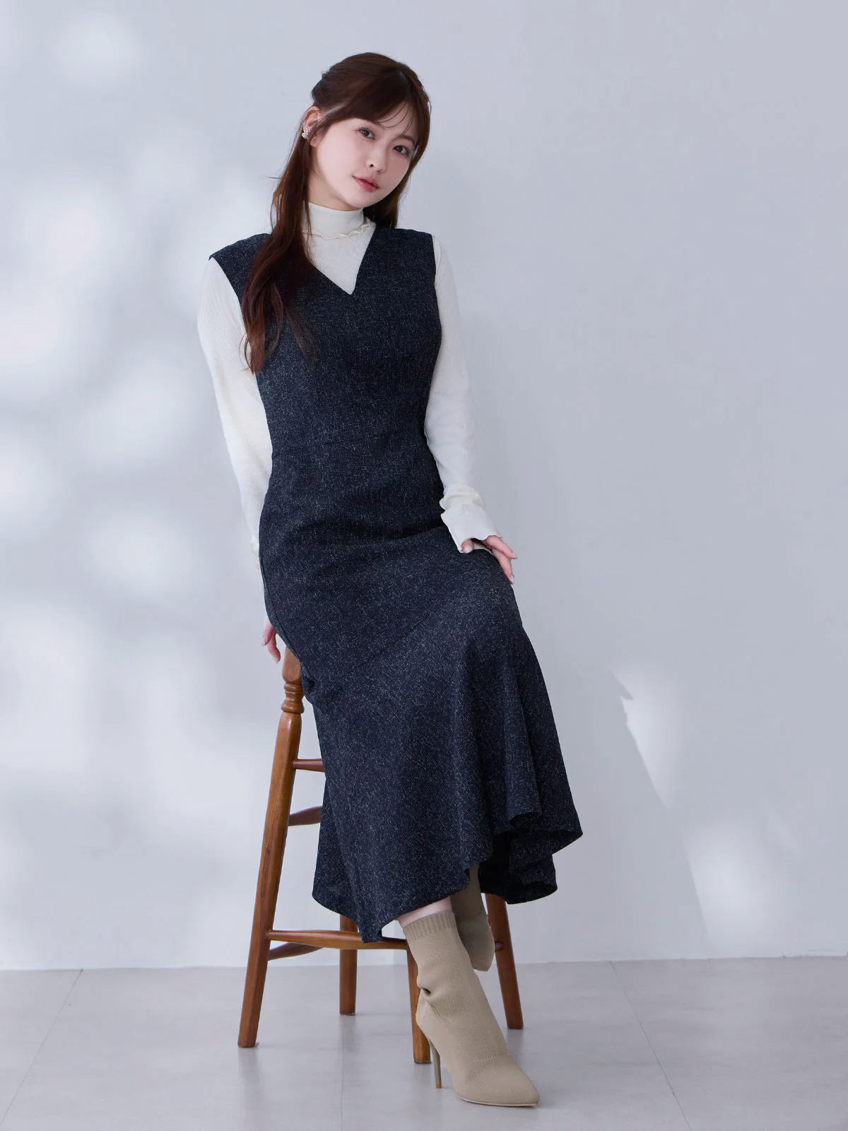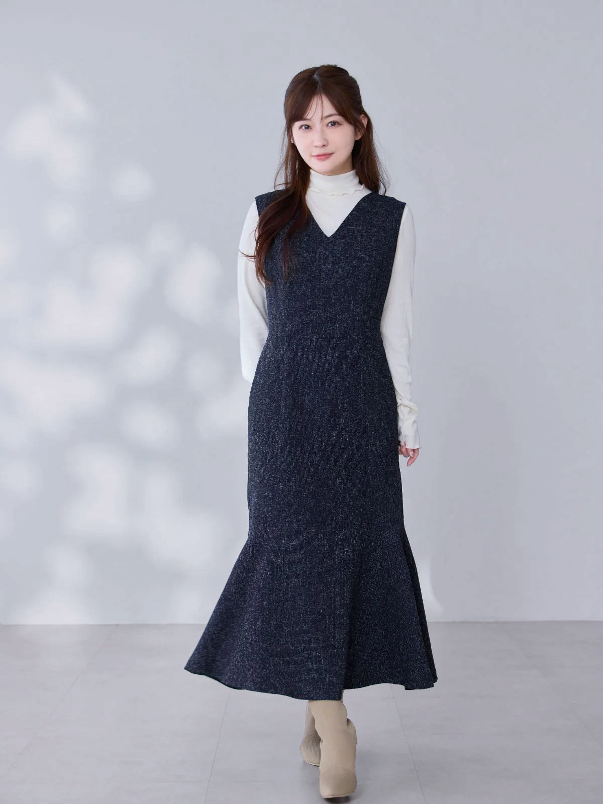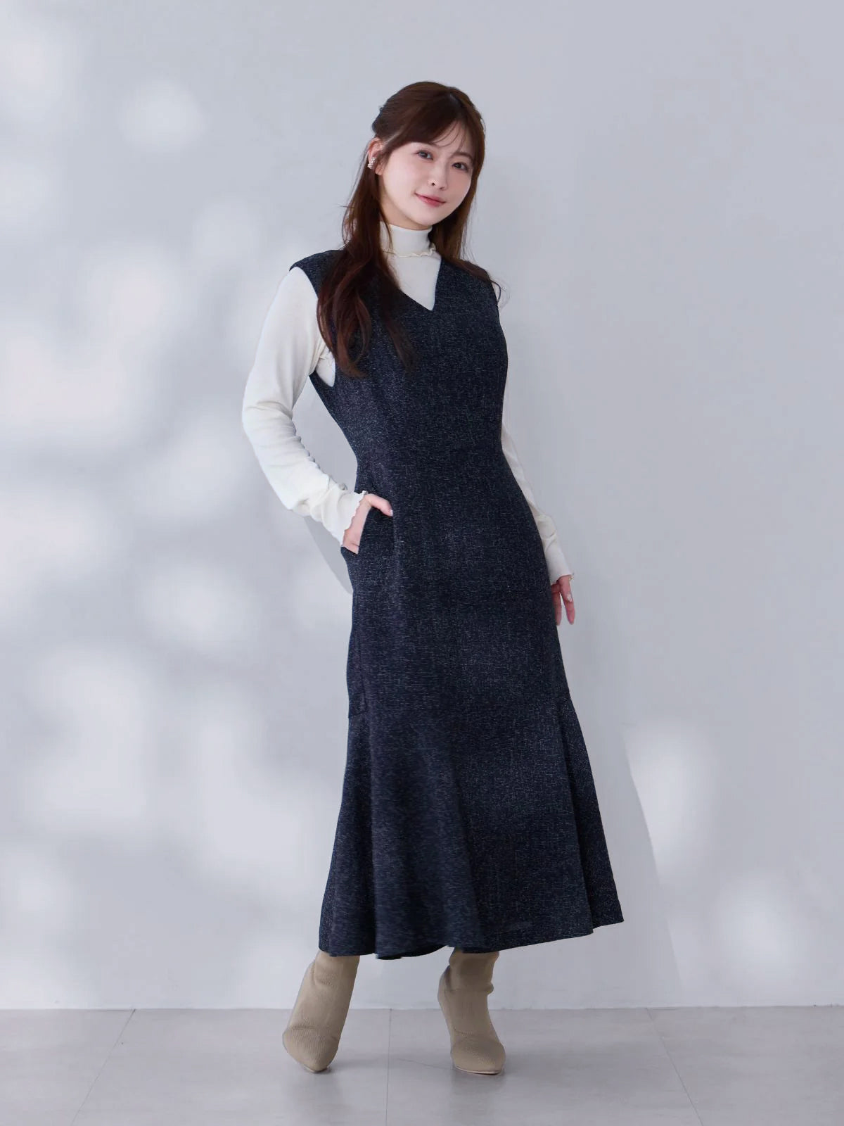 ツイードライクマーメイドワンピース:ミックスホワイト