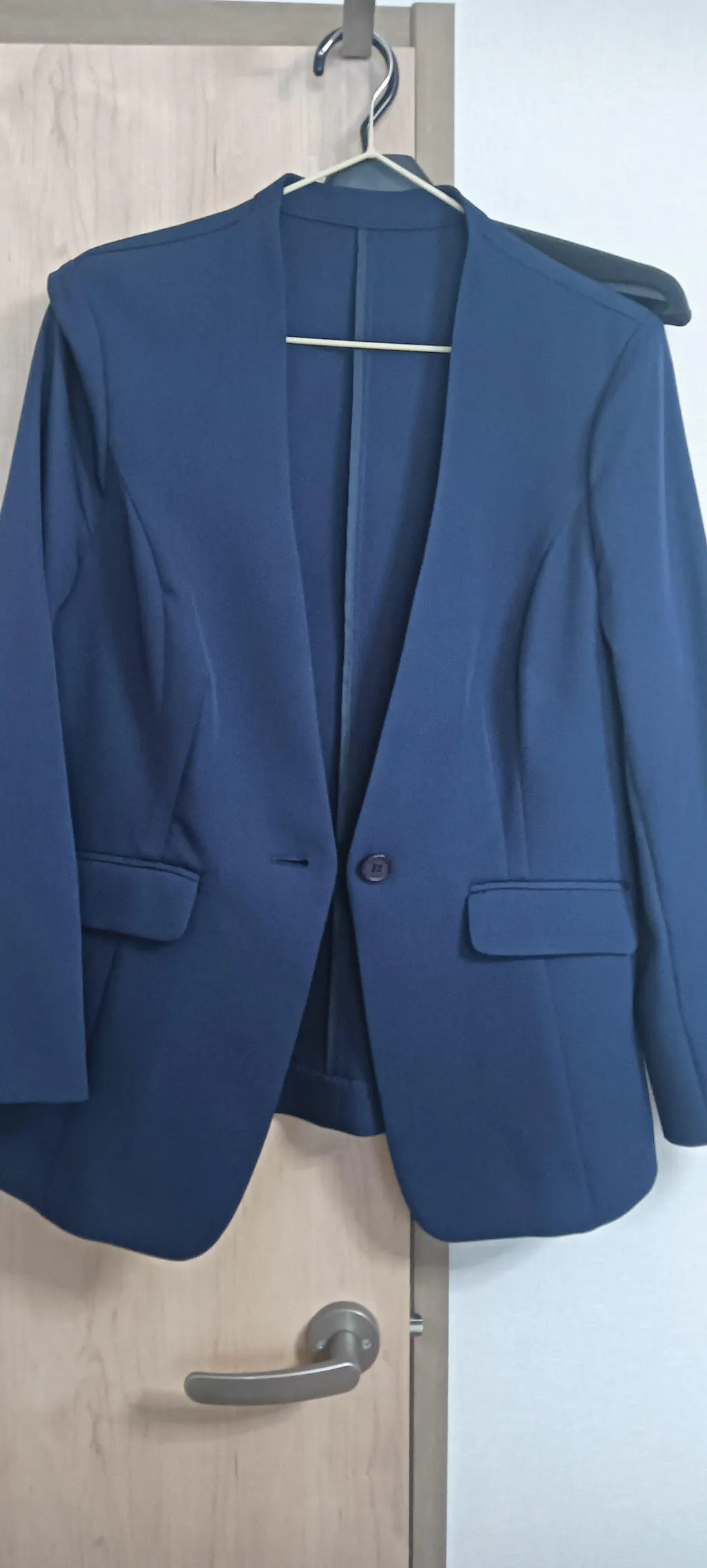 綺麗なネイビー、薄めの生地、ノーカラーという要素がとても素敵にまとまっていて、スタイリッシュです。 背中と腰のラインを綺麗に出してくれるところがお気に入りです。 私はバストやお腹まわりをスッキリ見せたいのと同じくらい、背中と腰のラインの見え方も気になるので、このジャケットはそれをクリアしてくれていて、着ていて嬉しくなります。