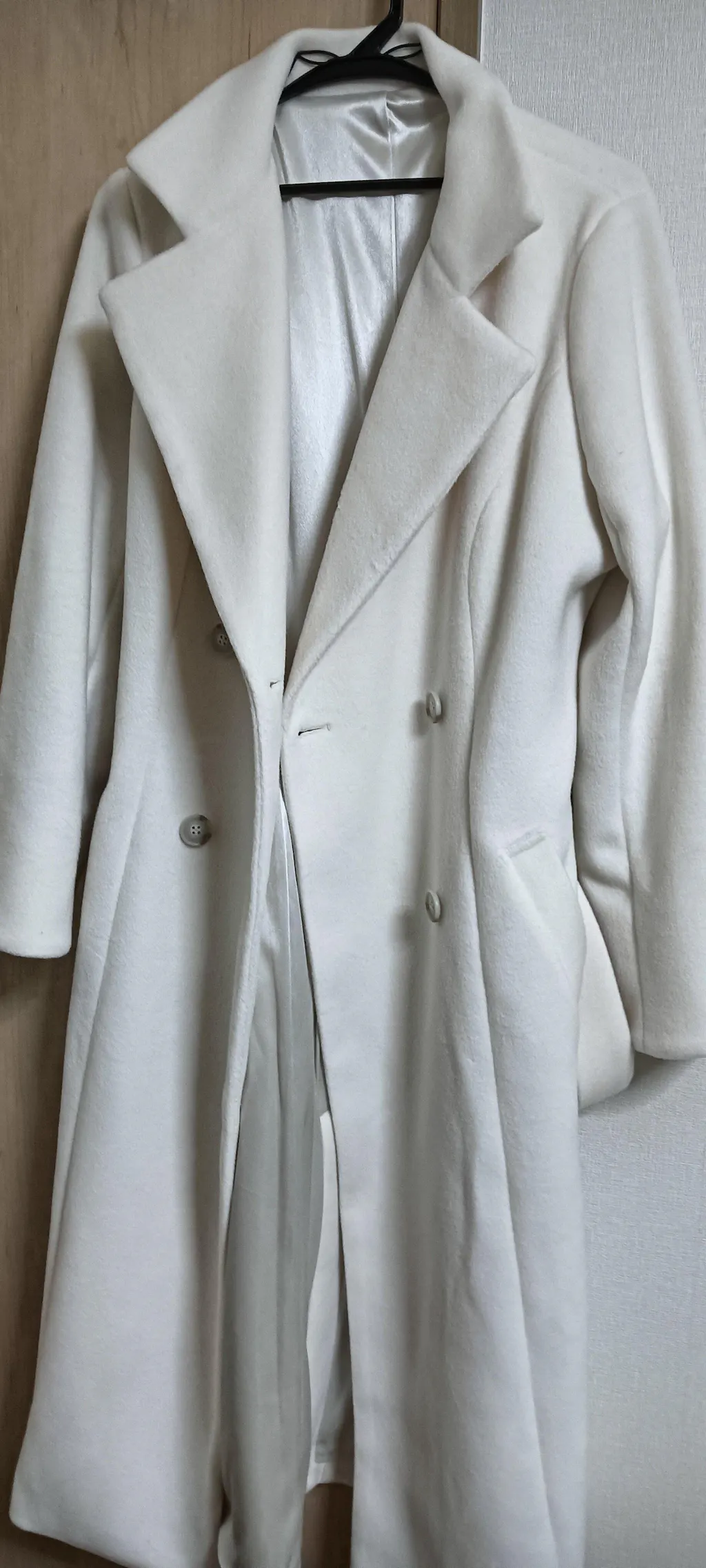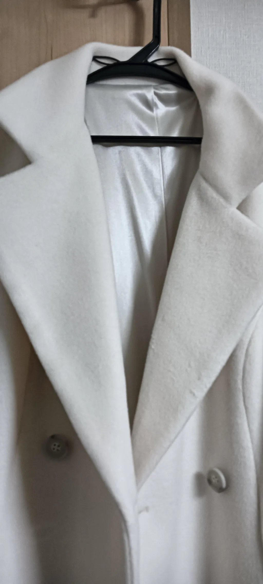 155.5cm/E80の、ややぽっちゃり体型です。 オフホワイトなので膨張して見えないか心配でしたが、コートのラインがきれいに仕立てられているので、カラダに合うサイズの物を着るとこんなに美しく見えるのか!とびっくりしています。 コート自体は少し重めですがとてもあたたかいので、中は春・秋物でもこのコートなら問題ありません(むしろセーターとかを着込むとせっかくキレイなコートのラインが崩れるかも…)。 行きつけのバーのマスターに、「そのコート、いいじゃん!」って褒めてもらいました(笑)