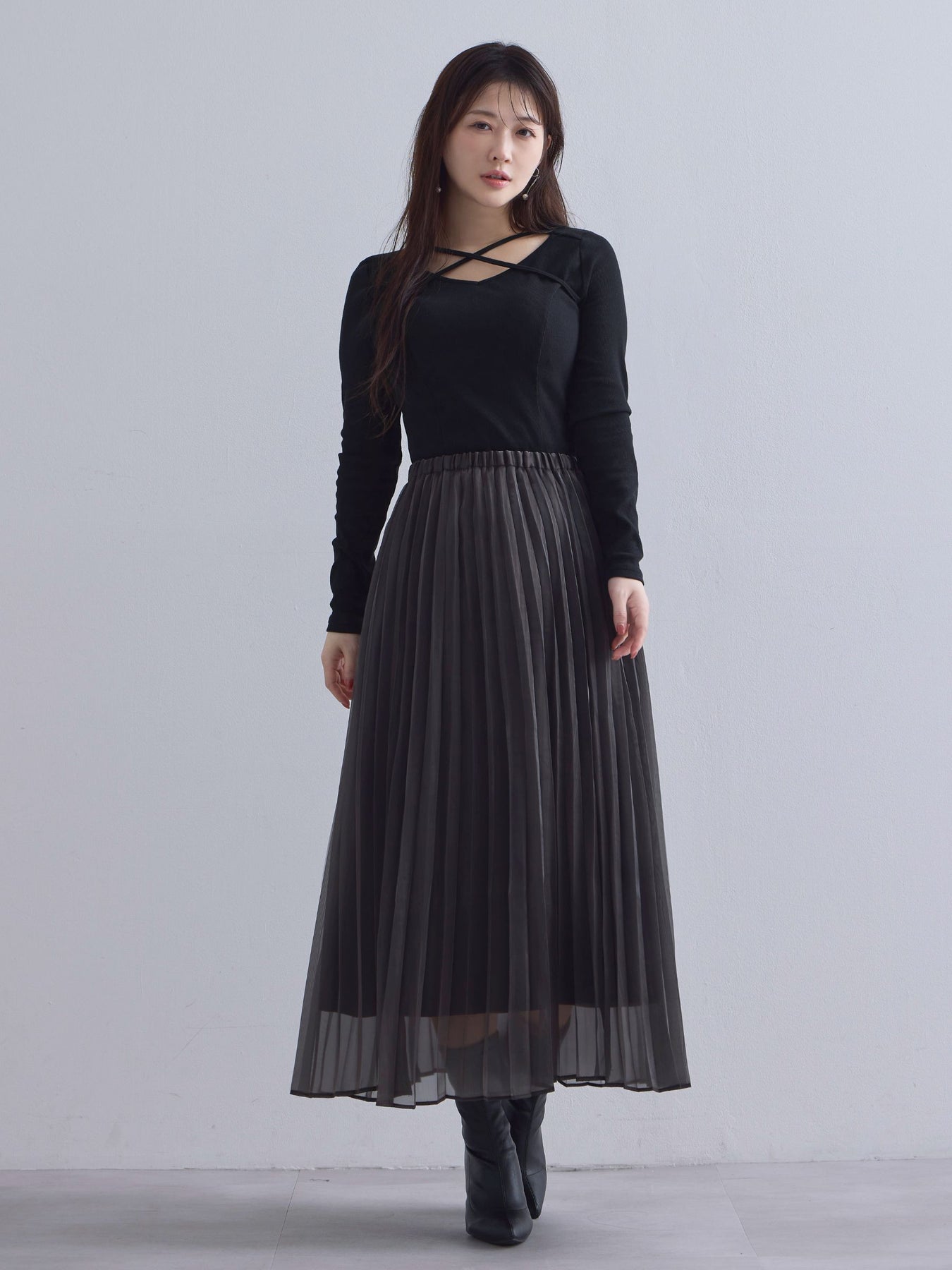 すっきりシルエットで、いつもよりも身体のラインをほっそりと見せてくれます。 身長が150cmと小柄なのですが、スカート丈が長すぎることなく着用できます。ちょうどくるぶしより5cmくらい上のところに裾がくるため、スカートを手で上げなくても階段の昇降もできます!