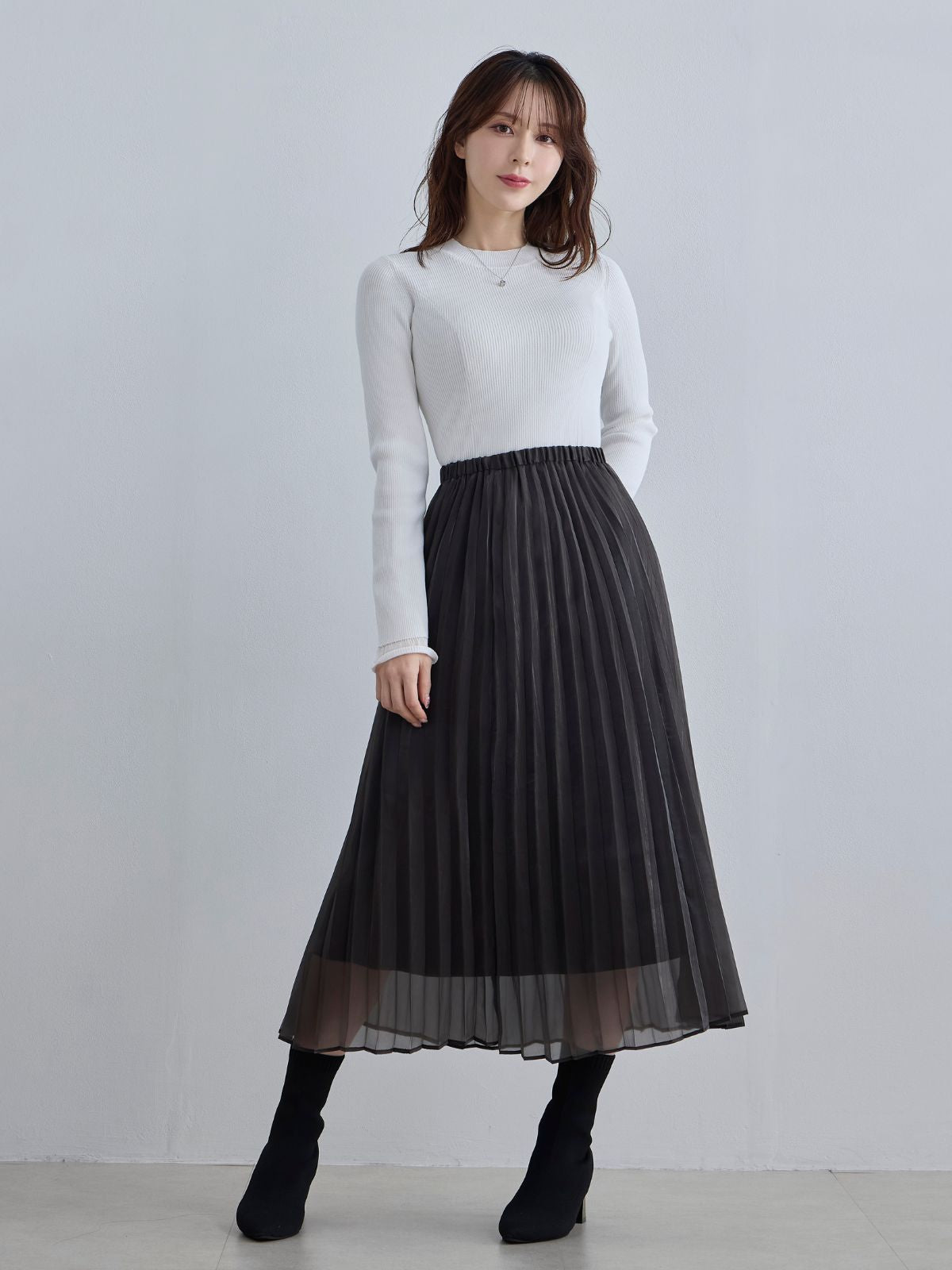 とてもスタイル良くみえます!3色すべて購入しました♡華やかで動きやすいのでコンサートにも着て行きたいと思ってます!