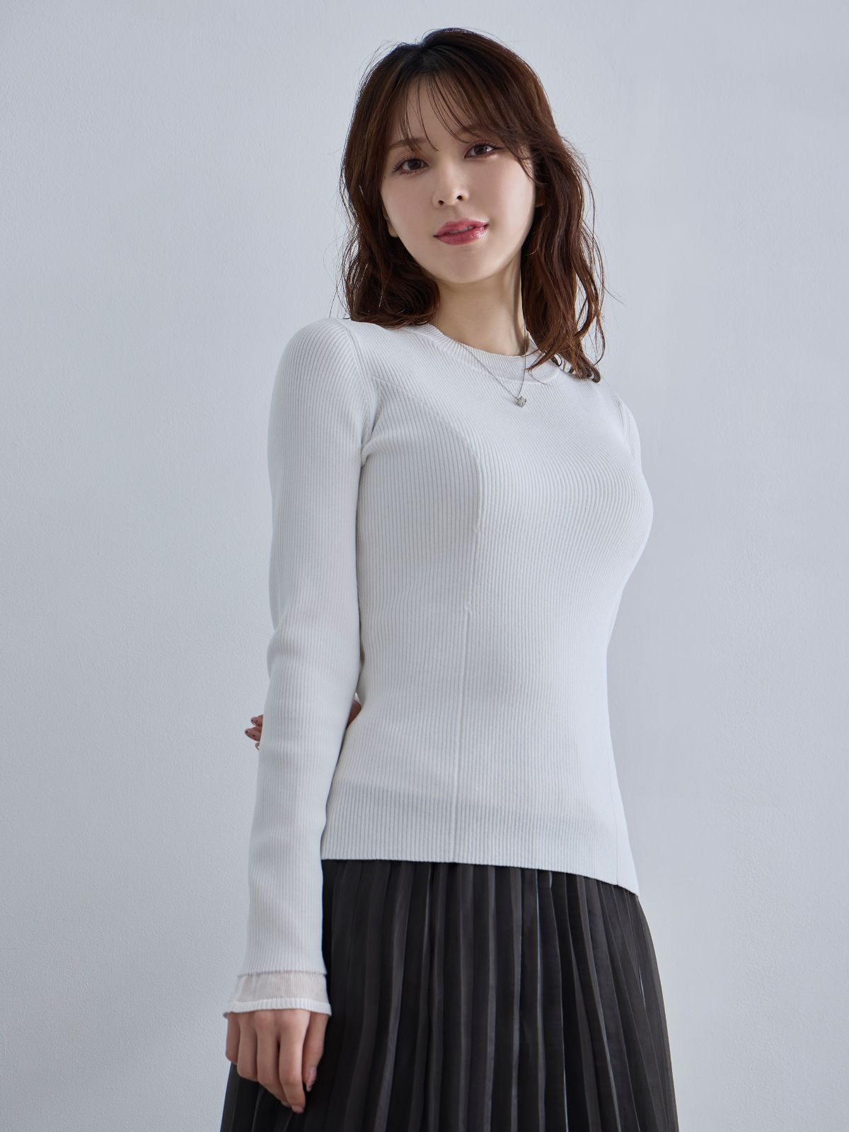 袖口シアーパネルニット:ブルーグレー
