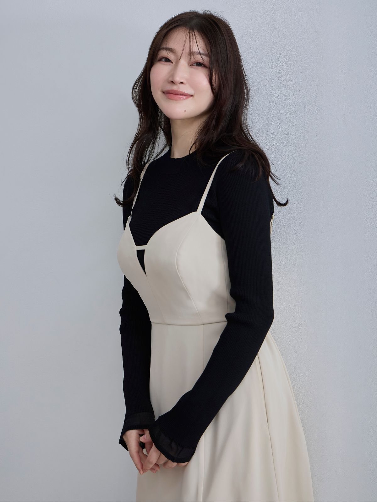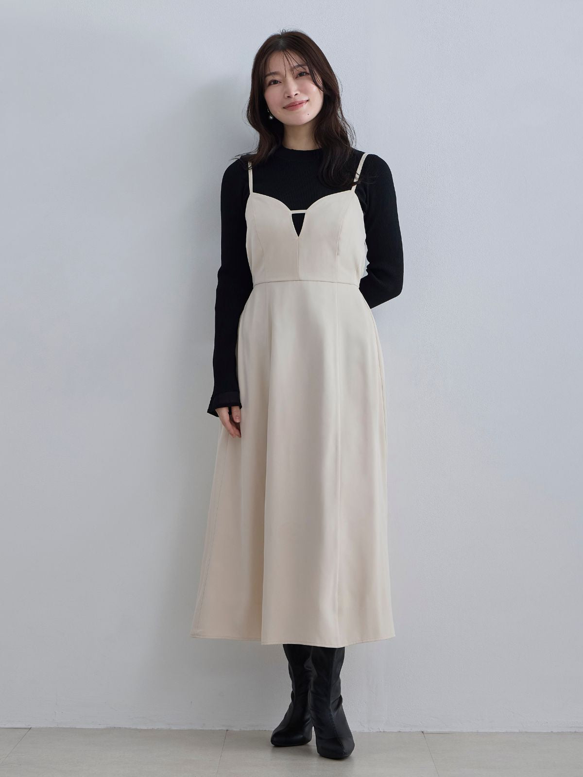 初めてoverEさんで購入しました。 インスタライブやXを見て、胸囲よりワンサイズ下げましたがジャストサイズでした。 ティアードの切り替えが前上がりなので、よりスタイル良くみえます。 姉にも「細く見える!」と言われてにんまりしてます! 普段からワンピをよく着るので買って良かったです。 また自分へのご褒美としてoverEさんで買わせていただきます!
