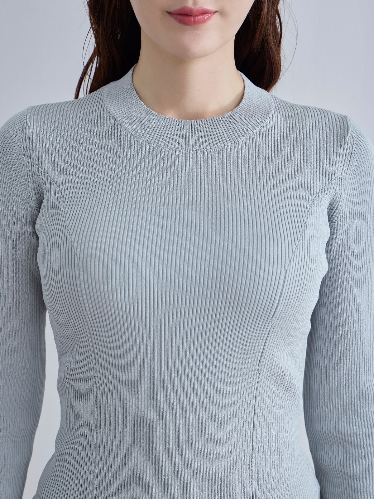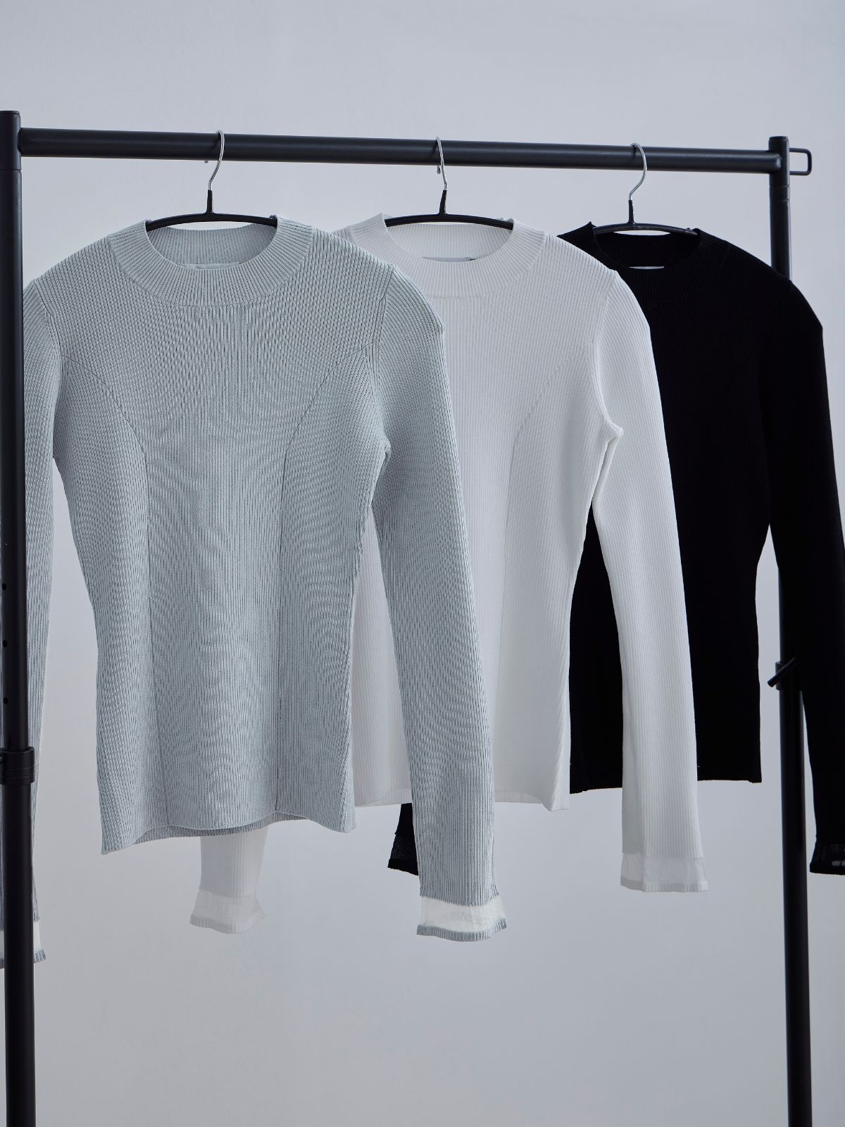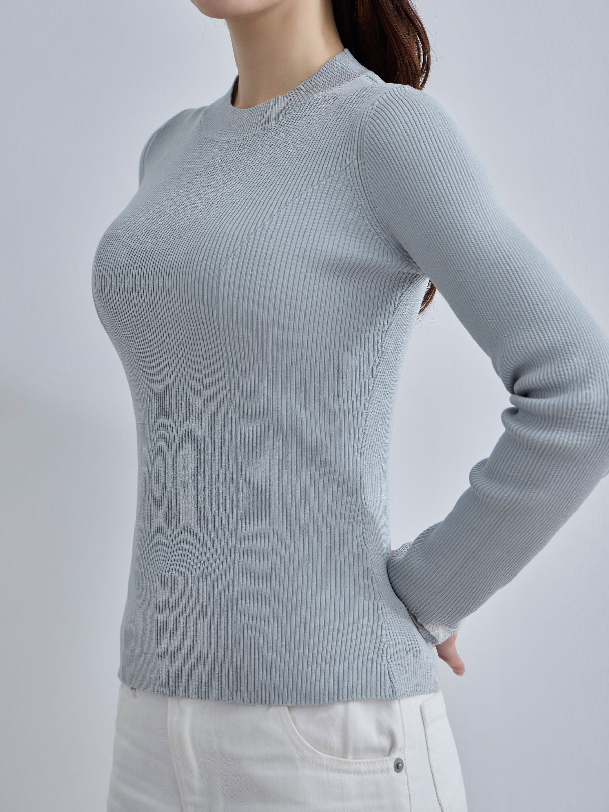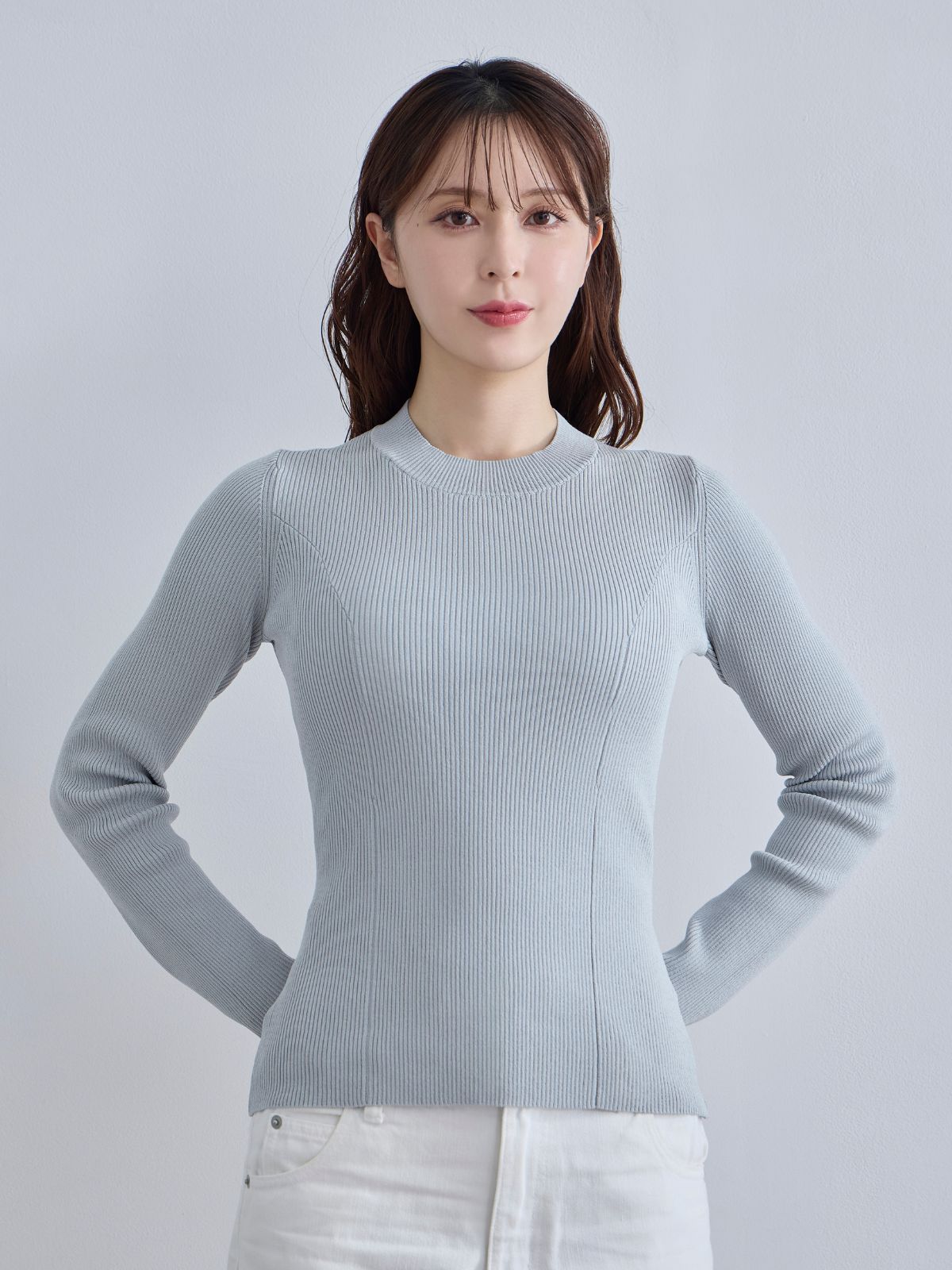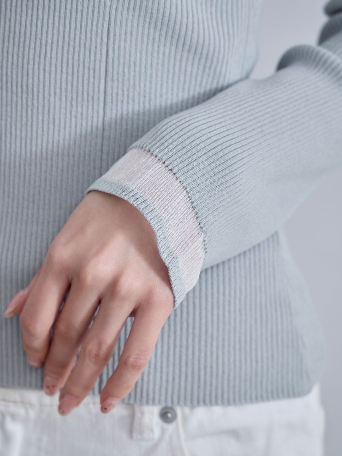 袖口シアーパネルニット:ブルーグレー