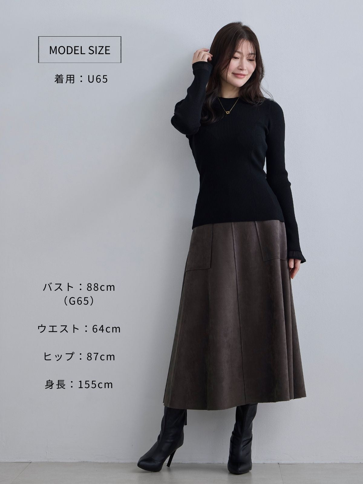 ポップアップの試着にてお迎えを即決しました!いつもはU65か90サイズを着用していて、試着させていただきU65は胸の下からウエストまでの間が体のラインにそい過ぎるかな?と思い店員さんに伺ったところU65で素敵だと思いますと言っていただき90も試着させていただいたら印象の違いにU65の方で即決でした!皆さんがおっしゃるようにファスナーは少し上げにくいですが可愛らしくかつ上品でスタイルが良く見えるのでとても気に入っています。 ゆったり目に着用されたい方はワンサイズ上げても良いかな?と思いました。