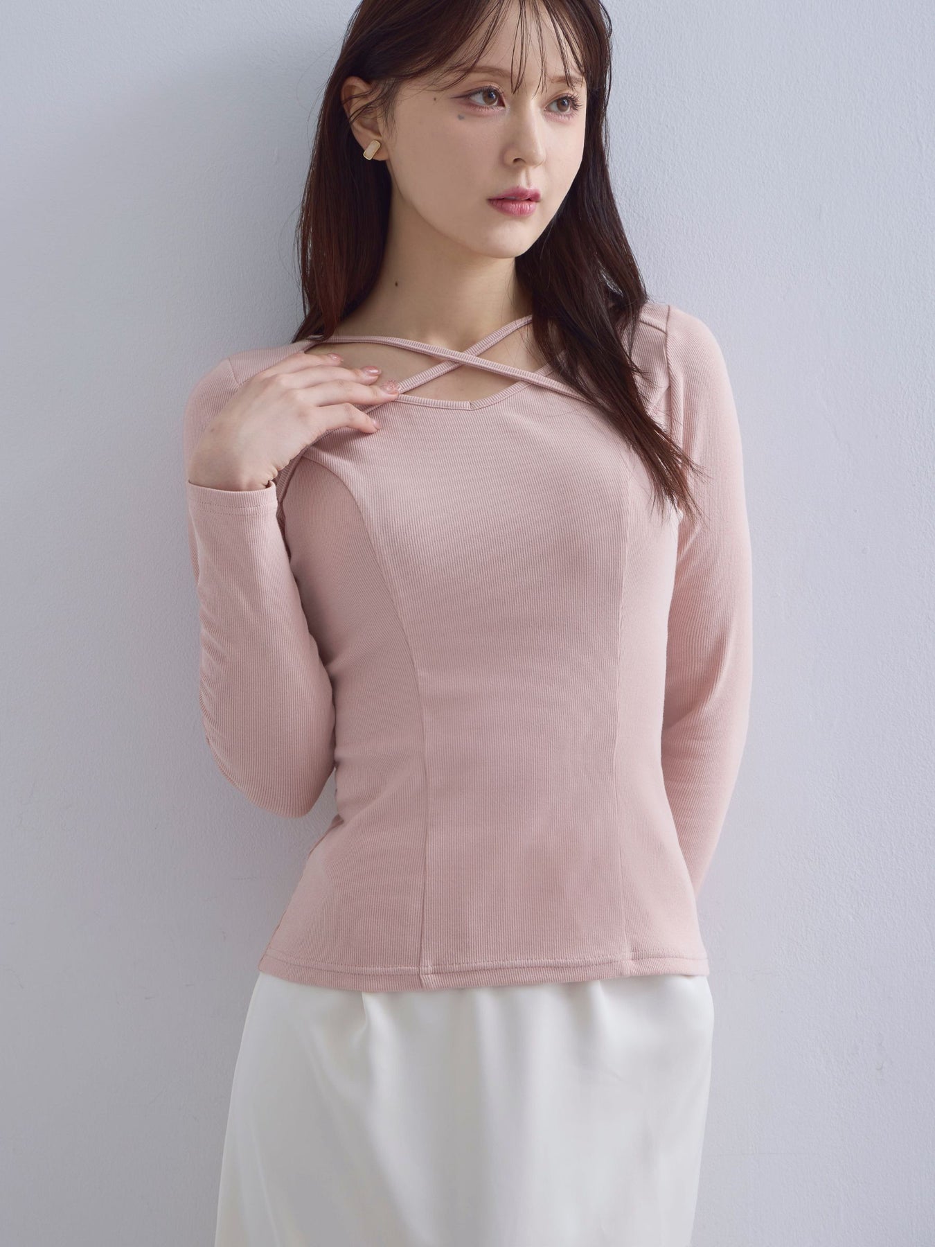 Vネックストラップカットソー