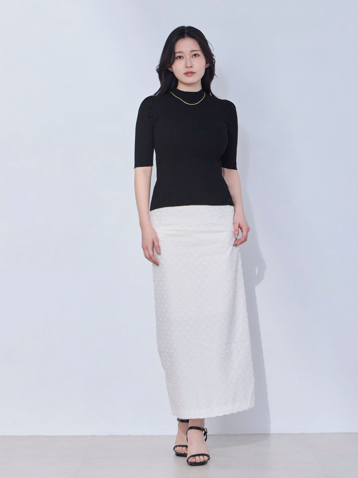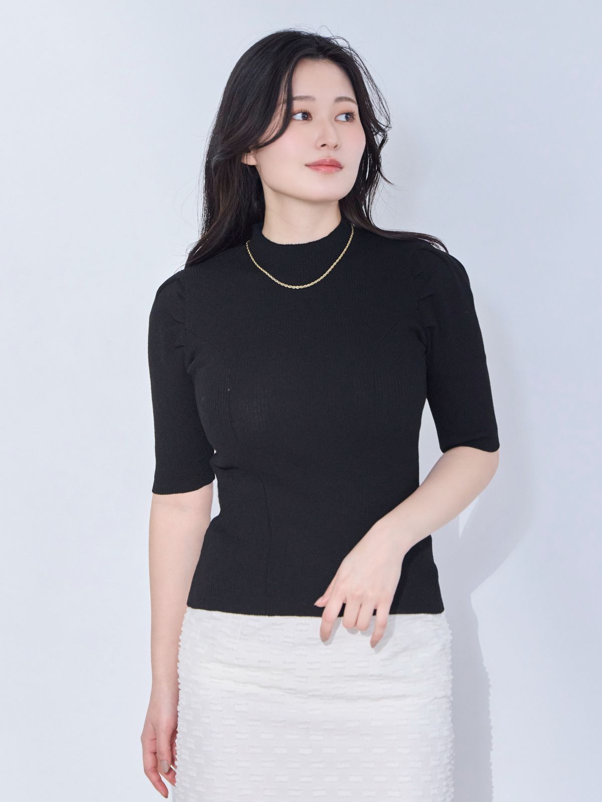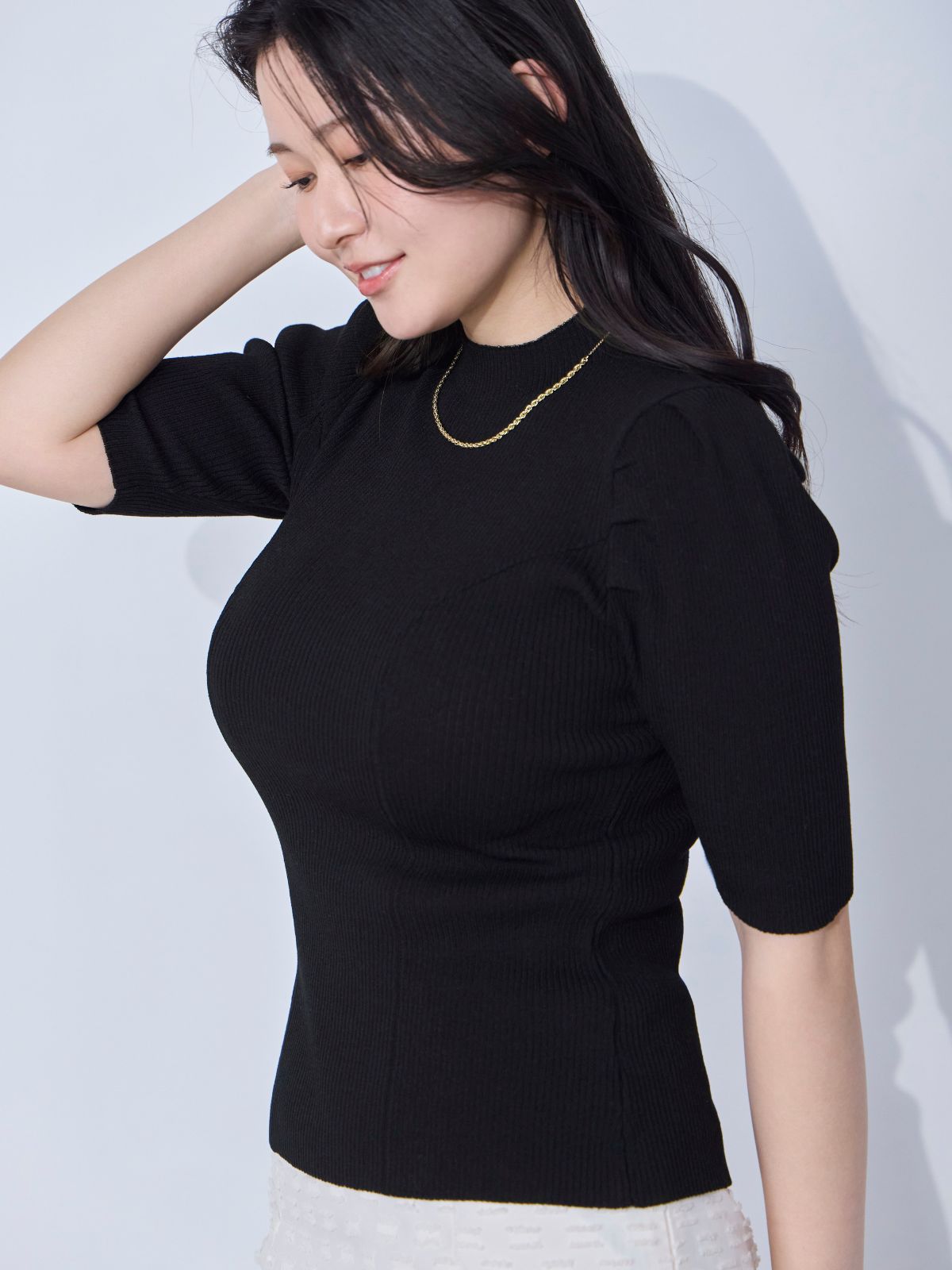 体の横幅が大きいので、肩部分に切り返しがあり、首元が詰まっているタイプの服は苦手な体型なのですが、こちらの服は綺麗に着れて驚きました。 ふわっとした服にありがちな、腰周りの布が余って大きく見えるという事も全く無く、むしろ肉感を拾わずに体のラインに沿ってくれるので、シルエットがとても綺麗です。