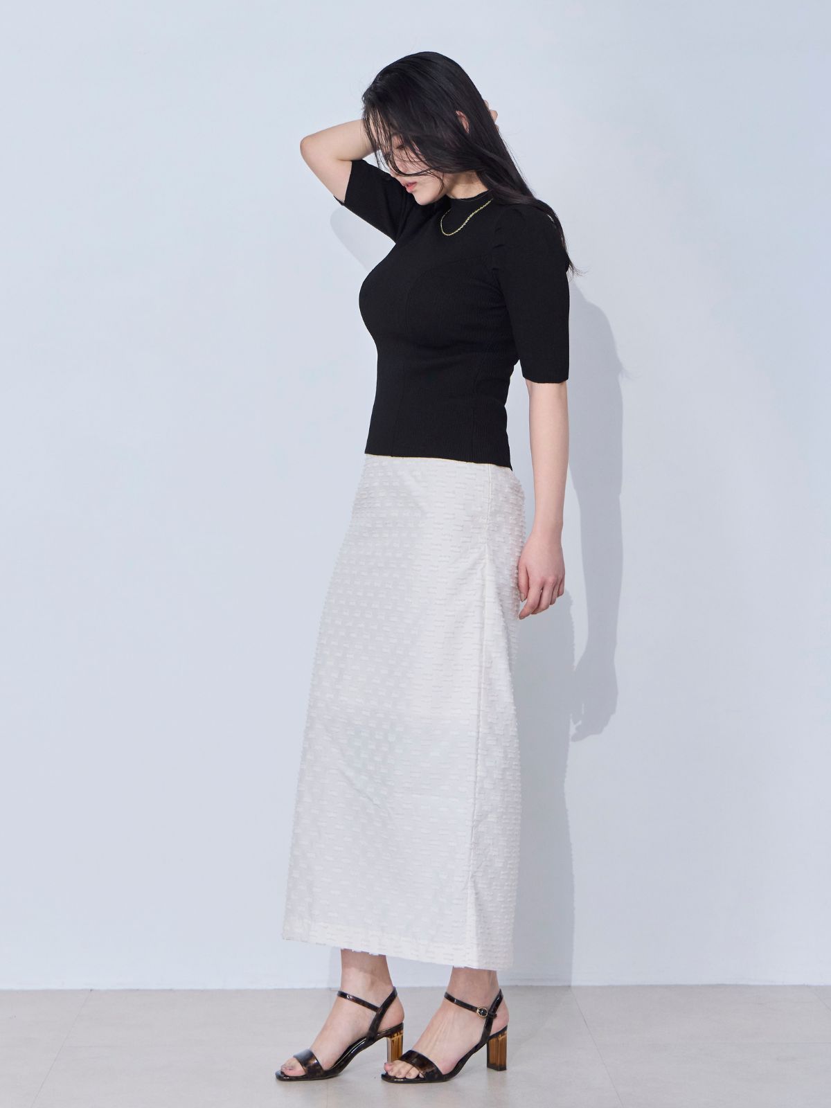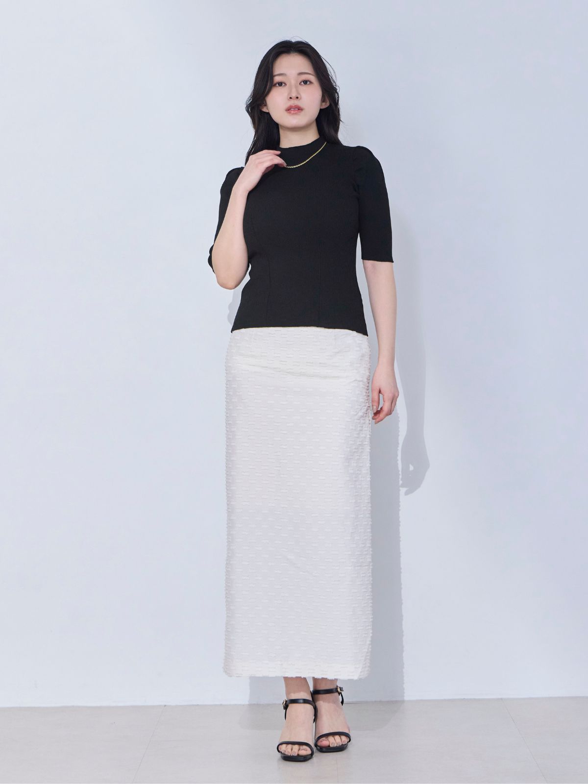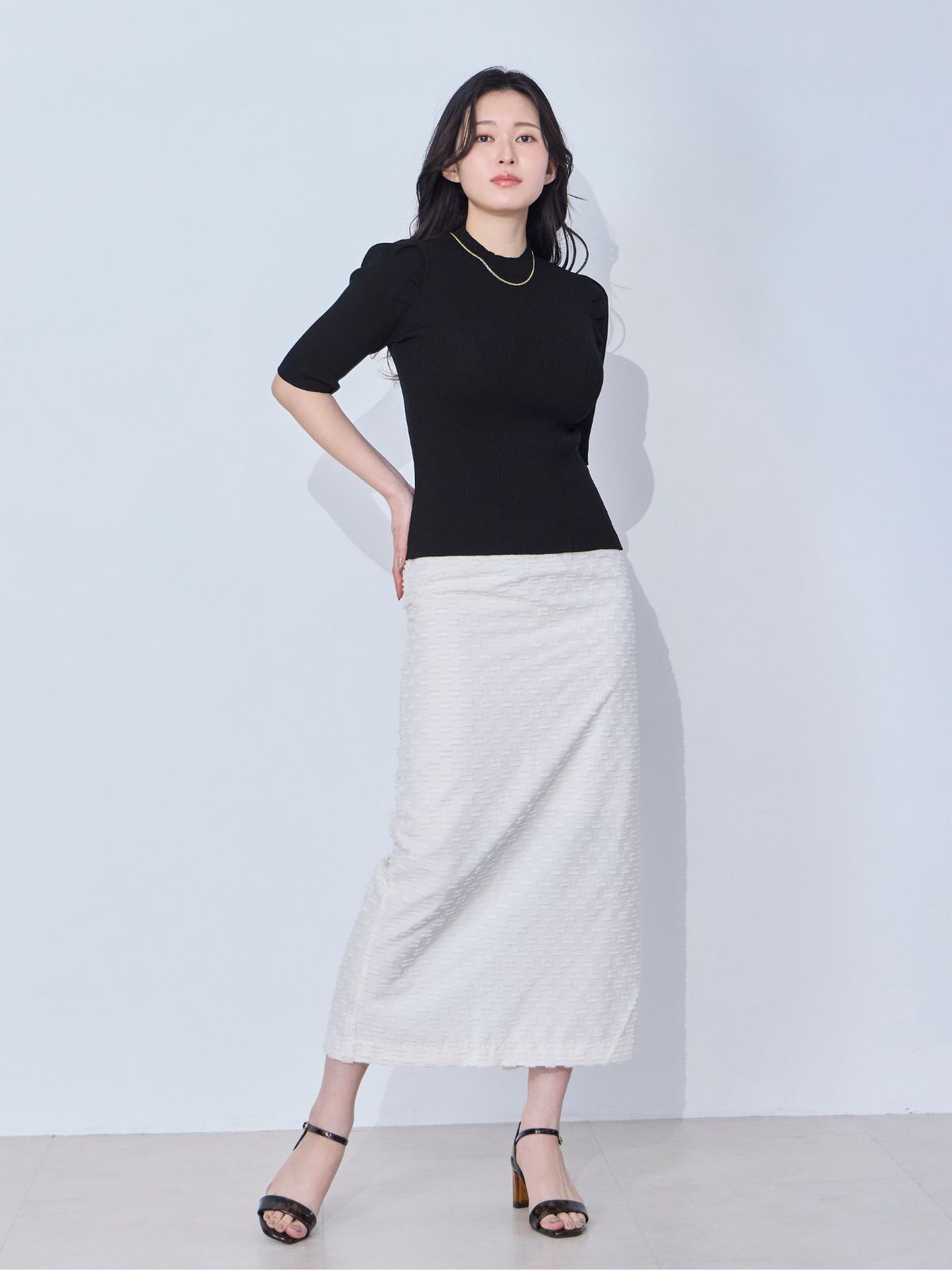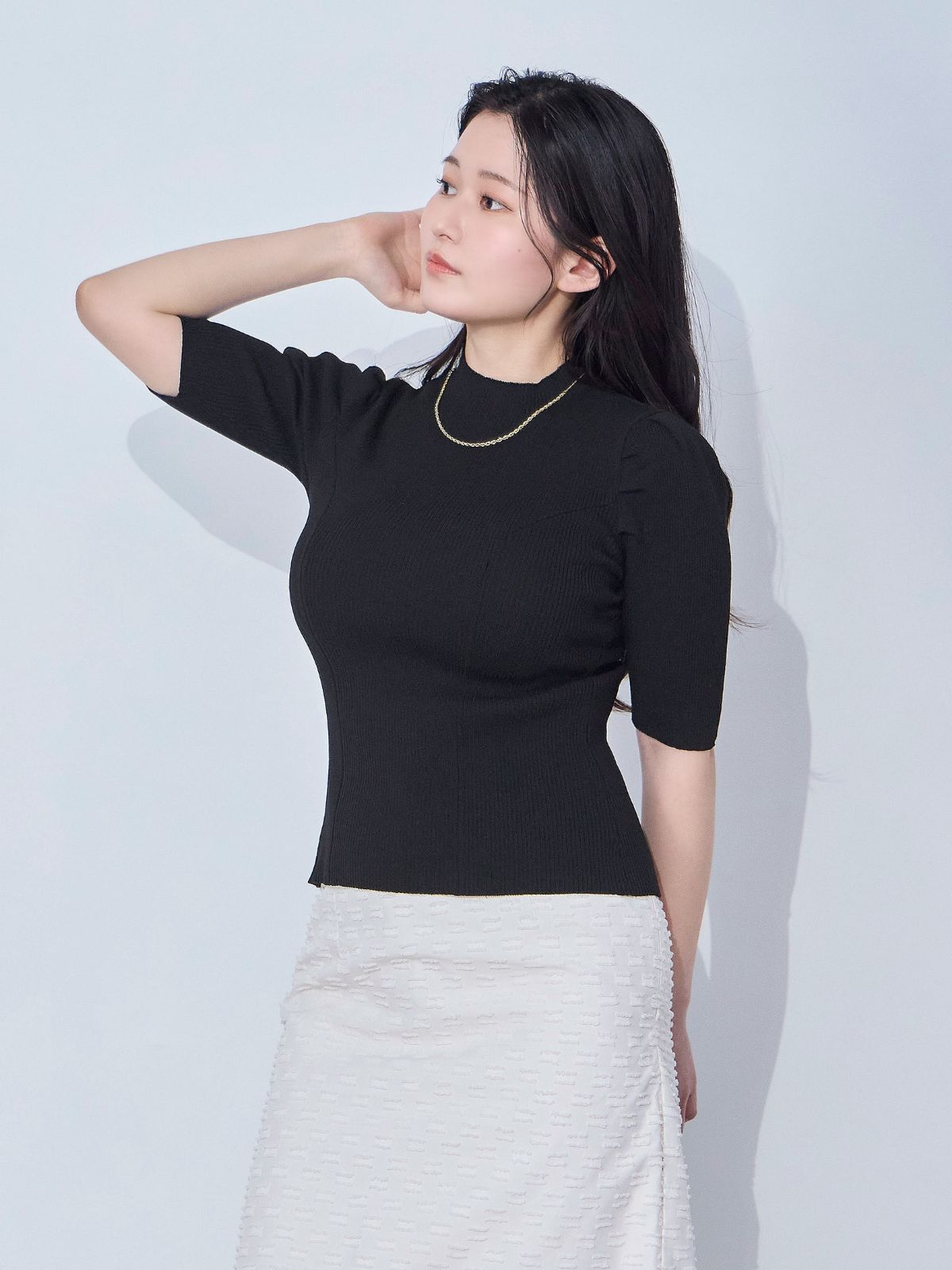 体の横幅が大きいので、肩部分に切り返しがあり、首元が詰まっているタイプの服は苦手な体型なのですが、こちらの服は綺麗に着れて驚きました。 ふわっとした服にありがちな、腰周りの布が余って大きく見えるという事も全く無く、むしろ肉感を拾わずに体のラインに沿ってくれるので、シルエットがとても綺麗です。