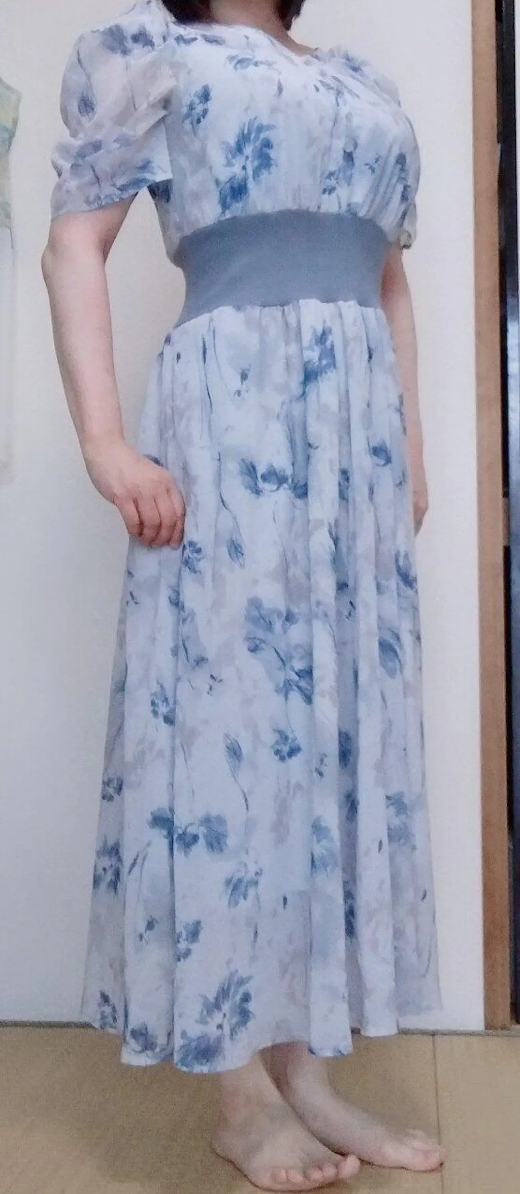 シフォンワンピースはとにかく事故る…グラマーさんあるあるだと思いますが…さすがoverEさん✨胸下はスッキリ!リブも絶妙な位置にあり、スカートが上がらない!でも袖やスカートはシフォンでフワッとしてて可愛いです! 153、G65でU65を買いました!