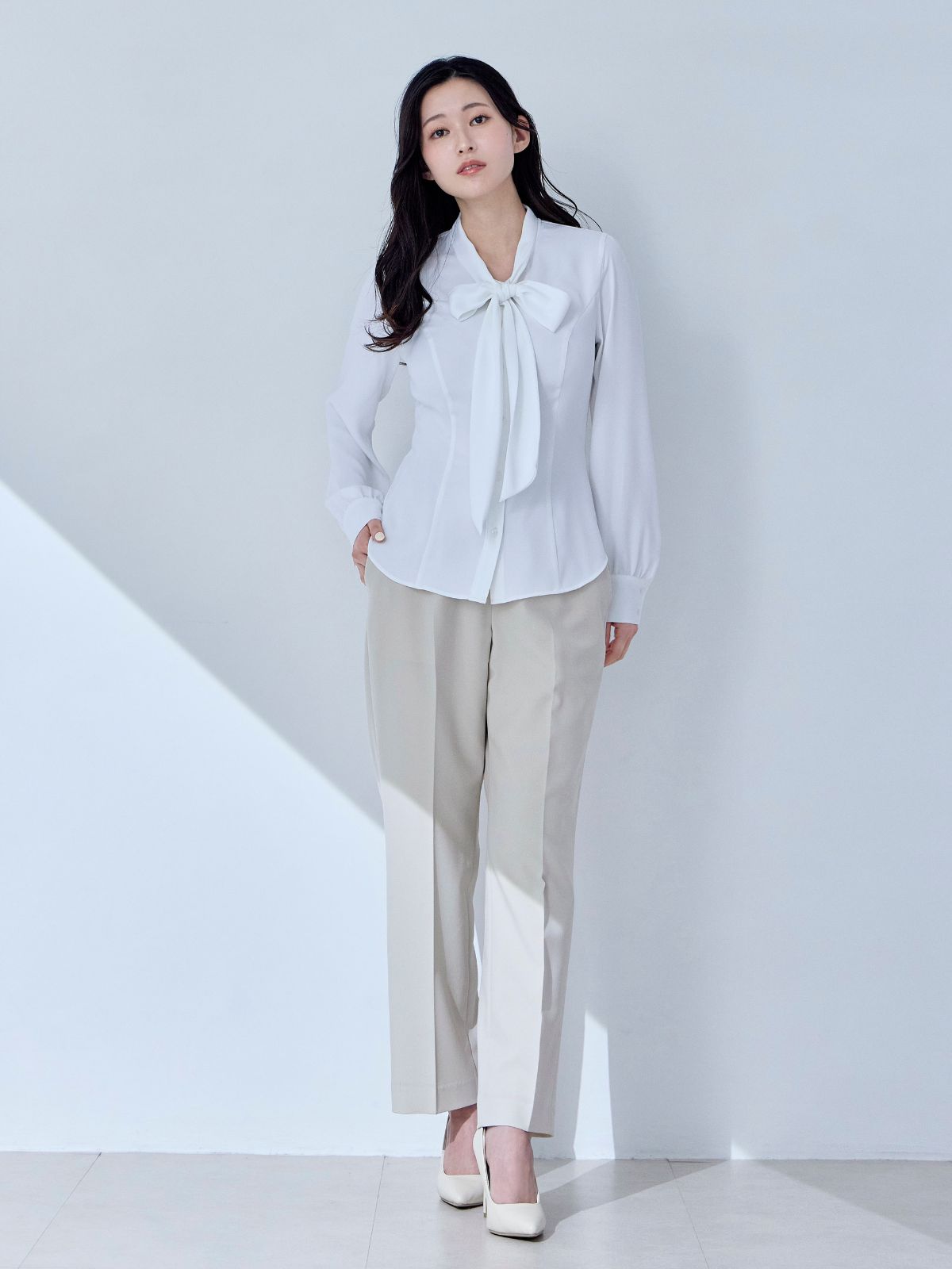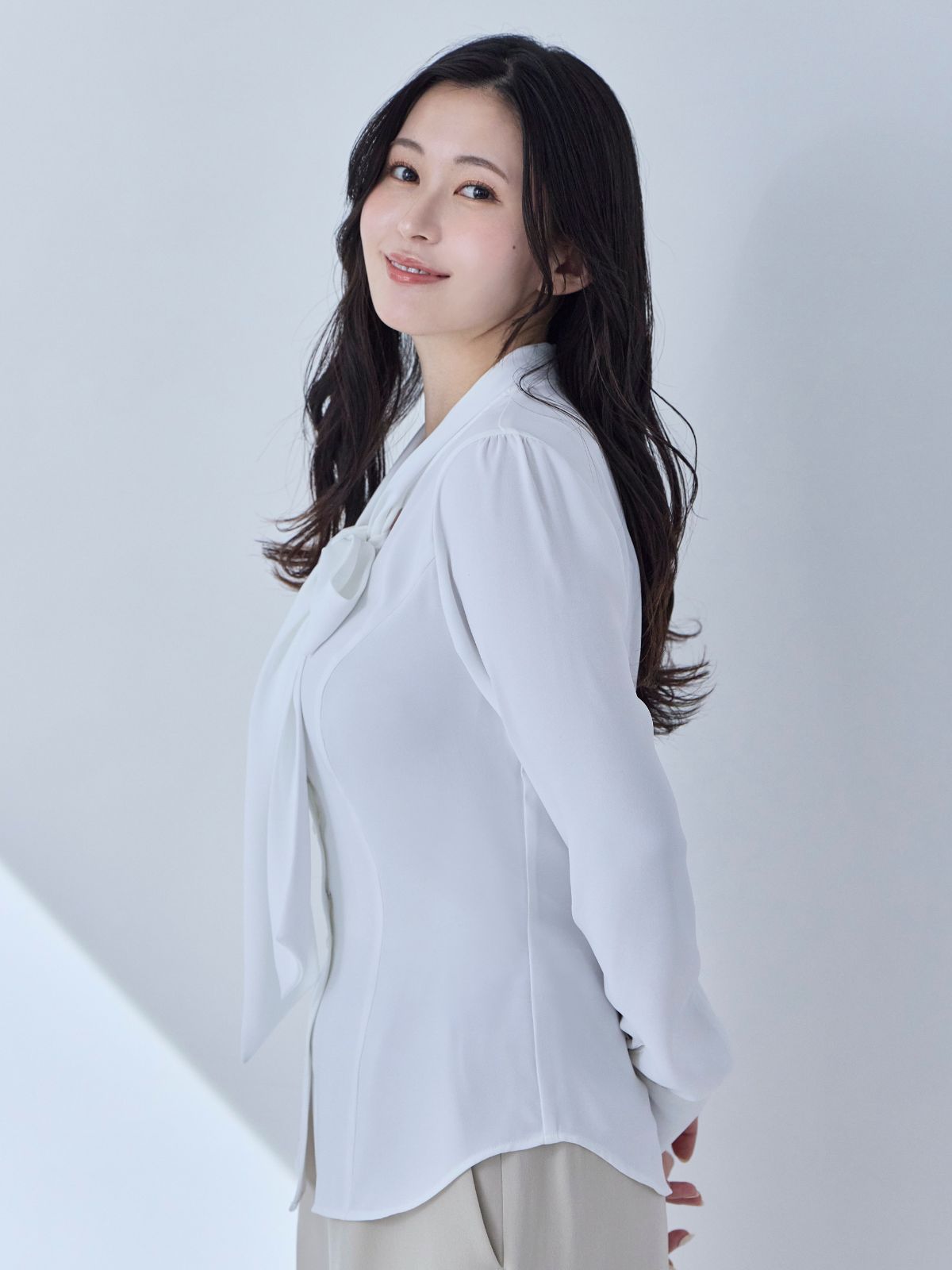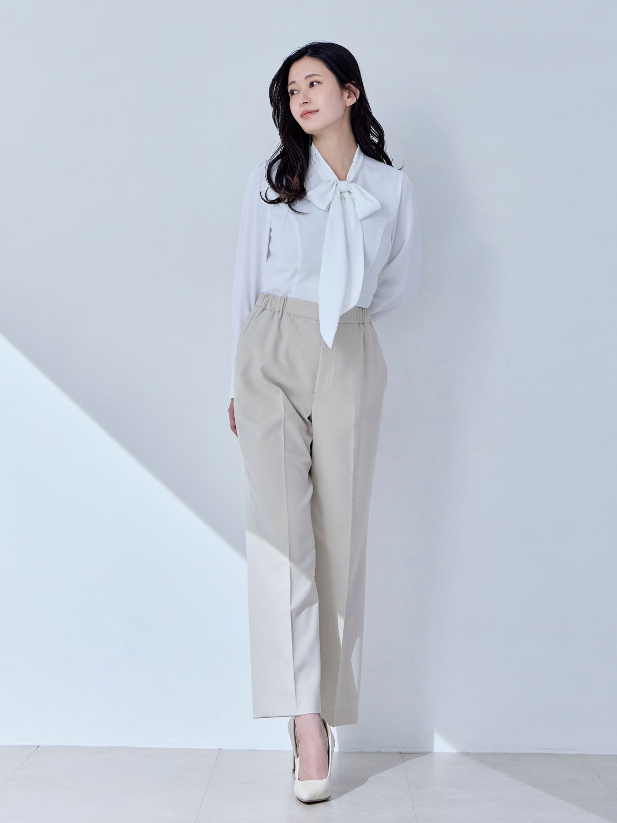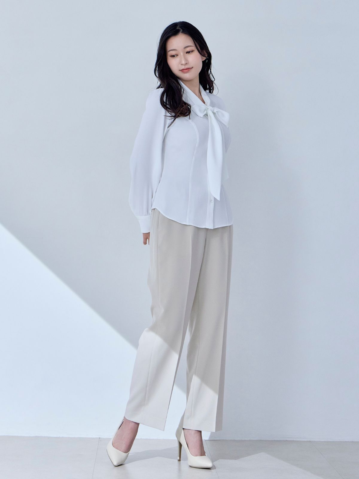 透けづらいフレンチボウタイブラウス:パウダーブルー