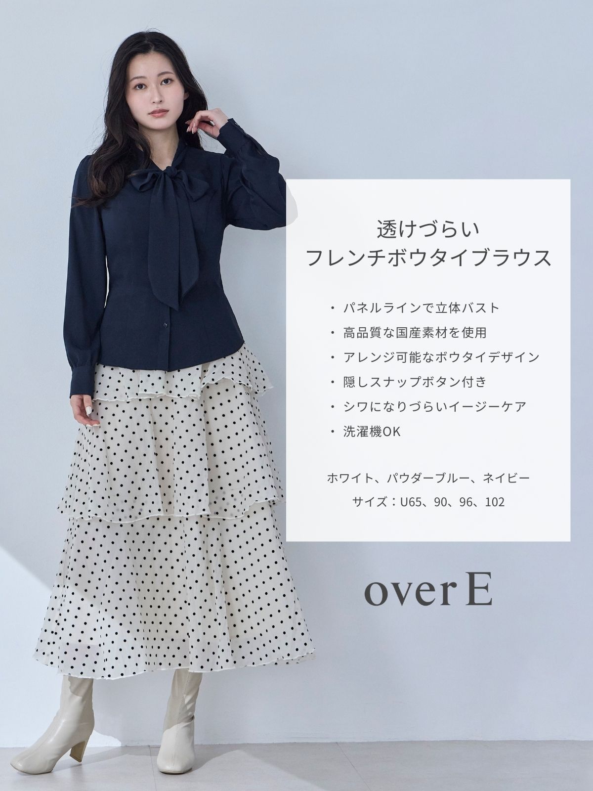 初めてoverEのお洋服を手に取ったのですが、胸周りはスッキリするので着膨れすることなくウエストも絞れるのでスッキリ着用できました。(いっぱい食べても横のベルトを緩めれば良いので、ご飯会にぴったりだと思いました)