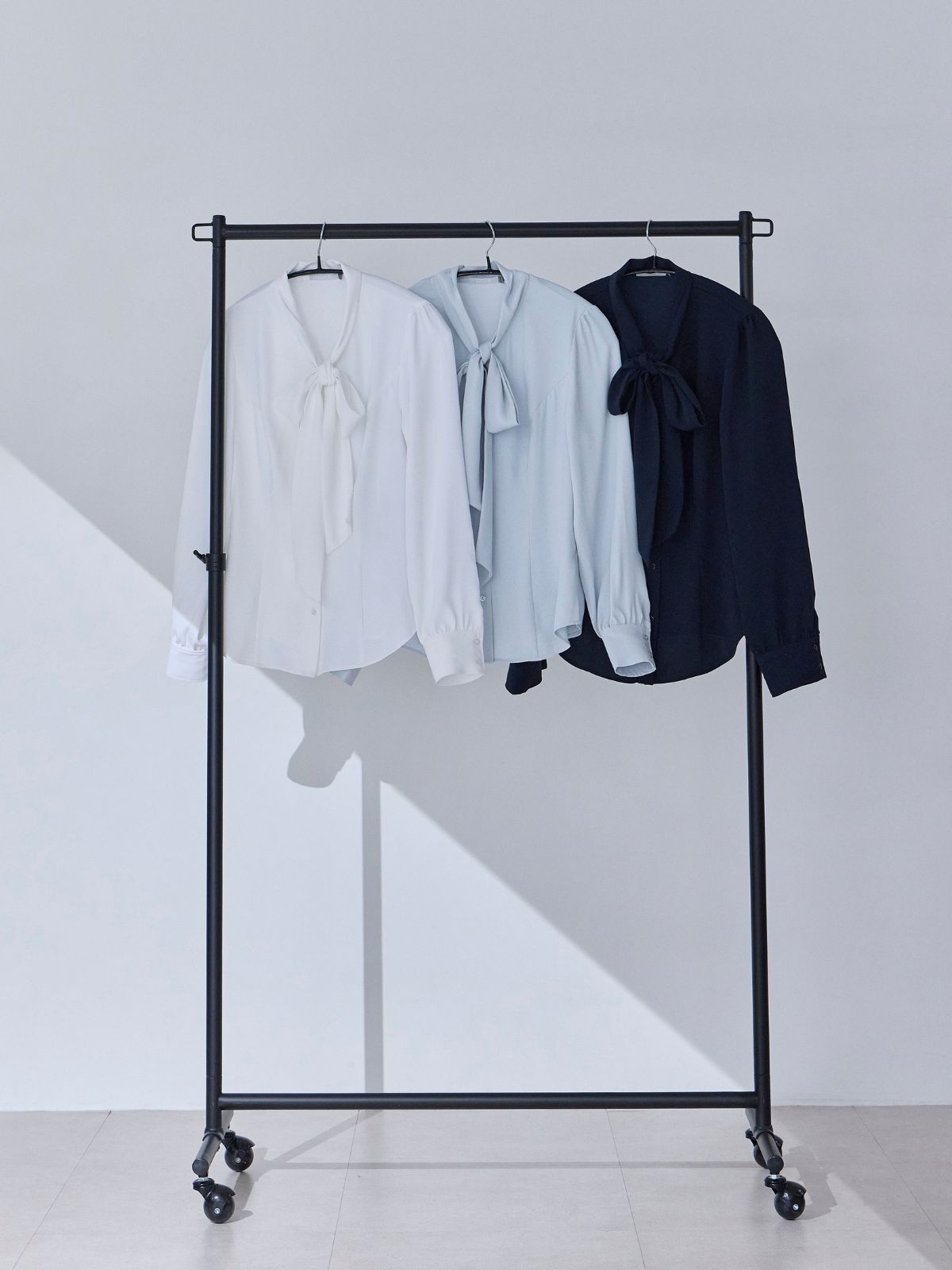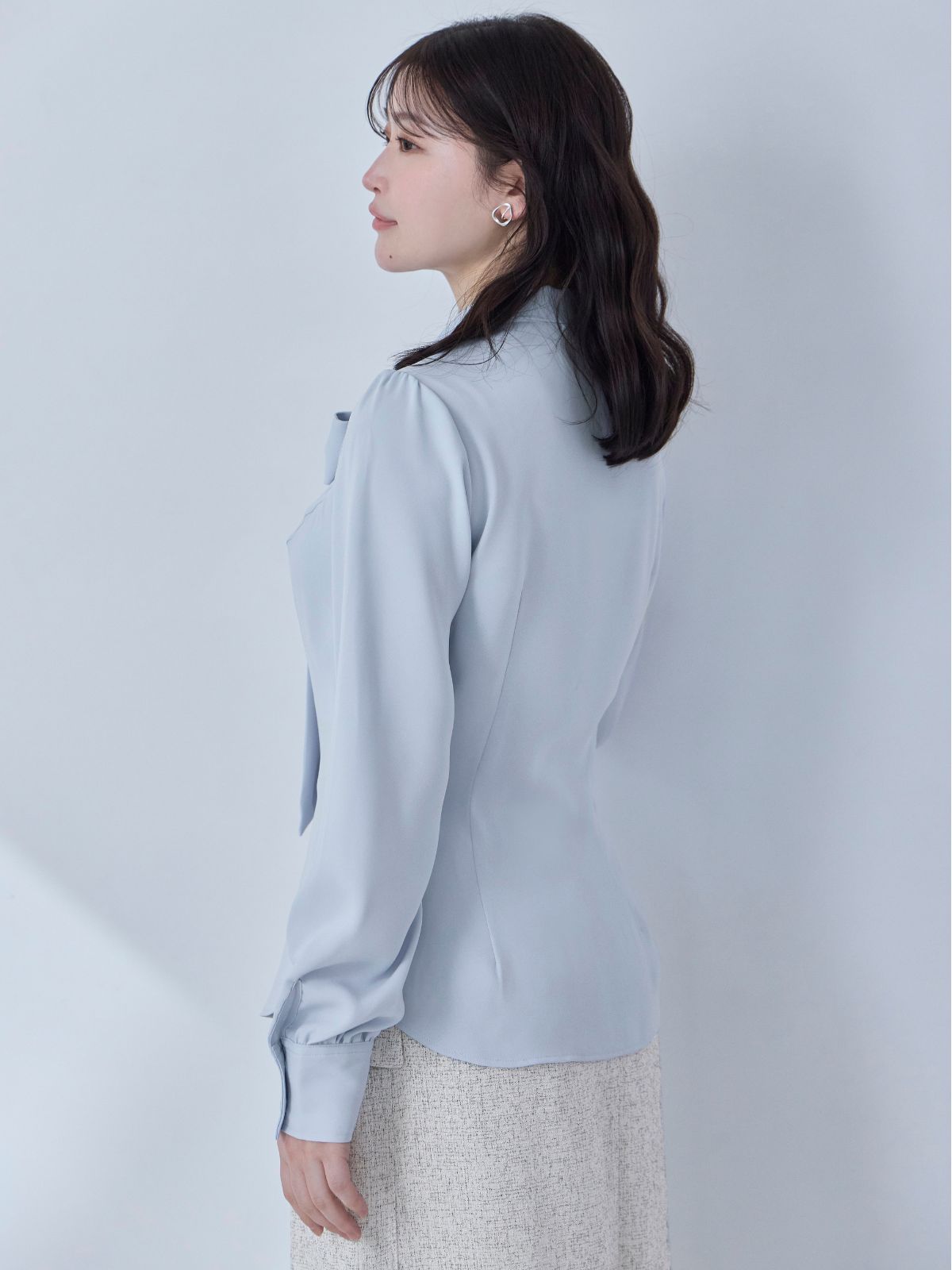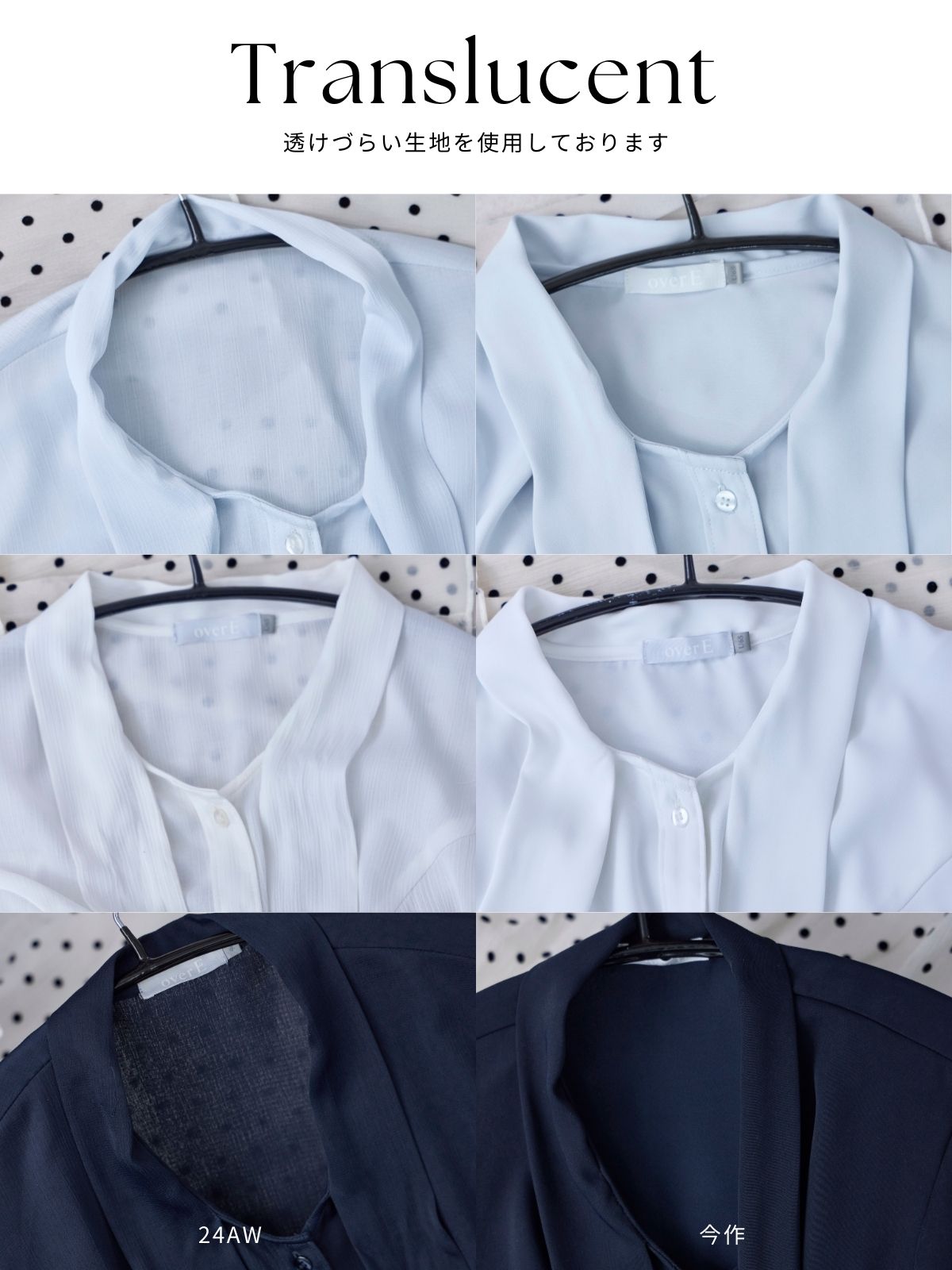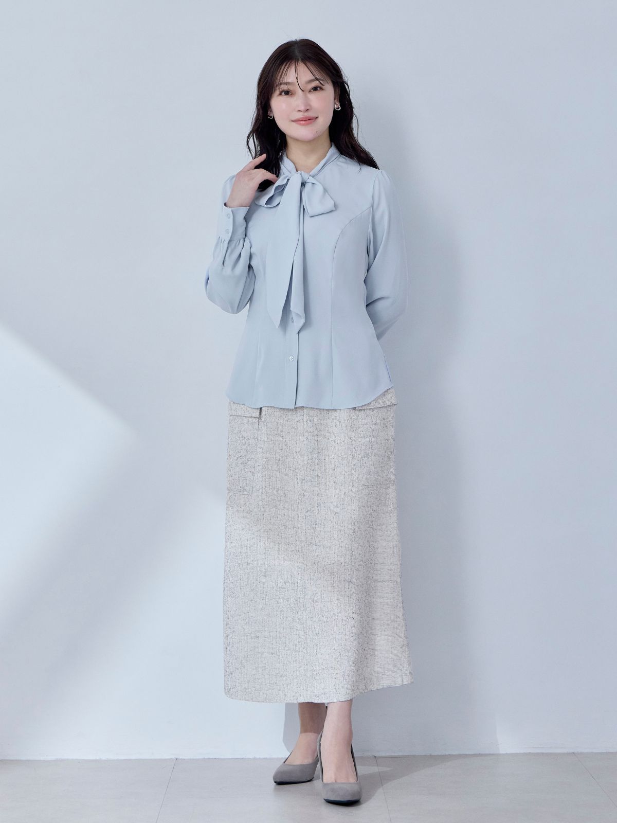 ポップアップで店員さんがこちらとスエードライクスカートのブルーグレーを合わせているのが可愛すぎて、真似して買いました。 意外に顔色も悪くなく浮かず、しかも、これ全然透けないからベージュのブラならインナーいらないくらいで使いやすいです。 よく伸びるし、パネルラインで横から見た胸が美しい。 クラッシュベロアの動くたびに表情が変わるところがほんとに好きです。