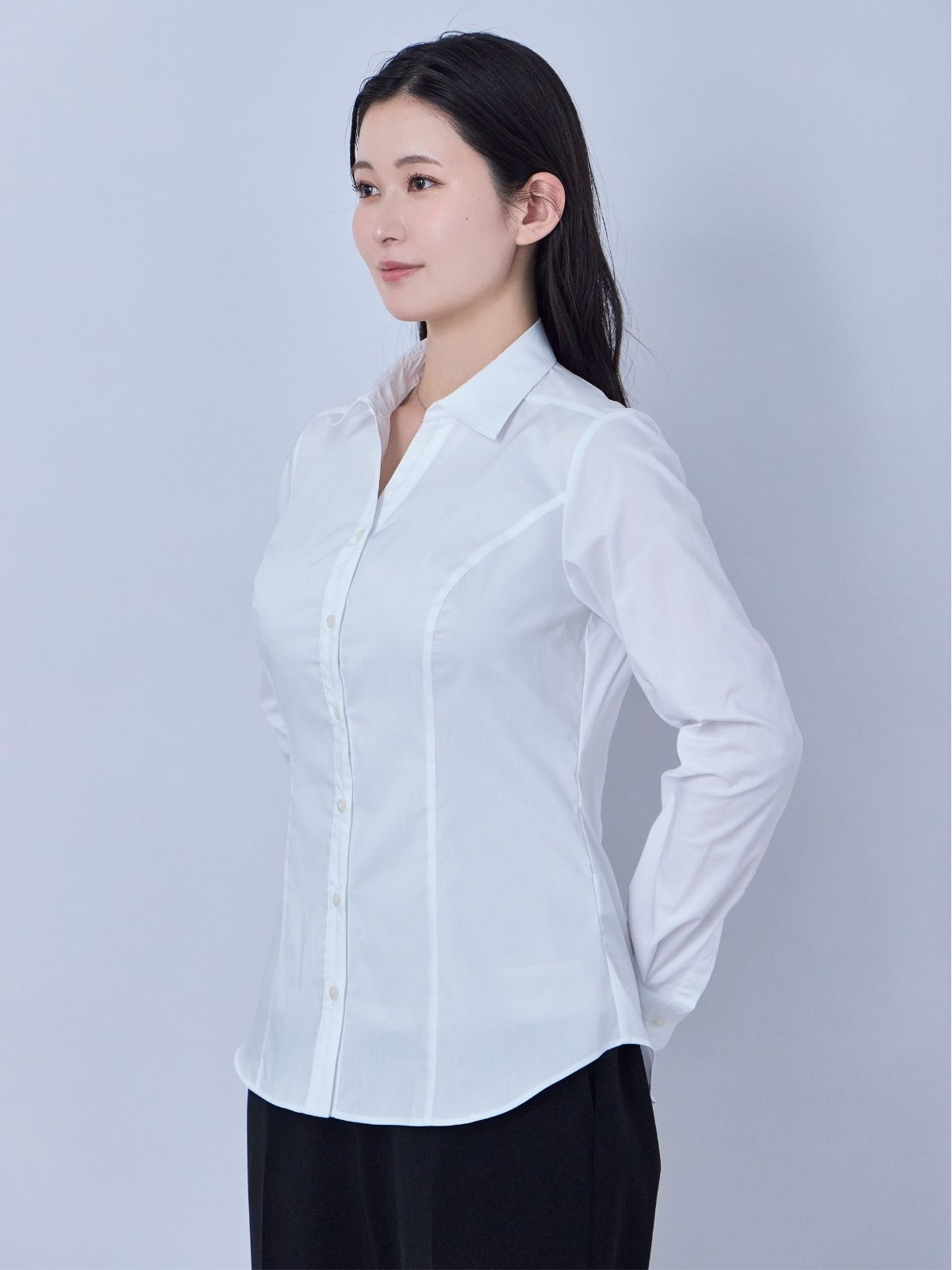 ずっとブラックフォーマルがほしく、入り用な時にちょうど発売されて購入。 いつものサイズでぴったりでした。 身体のラインを拾いすぎずにすっきり着れました。 スーツの伸びがいい感じで手伝いで動くのもすごく楽でした。
