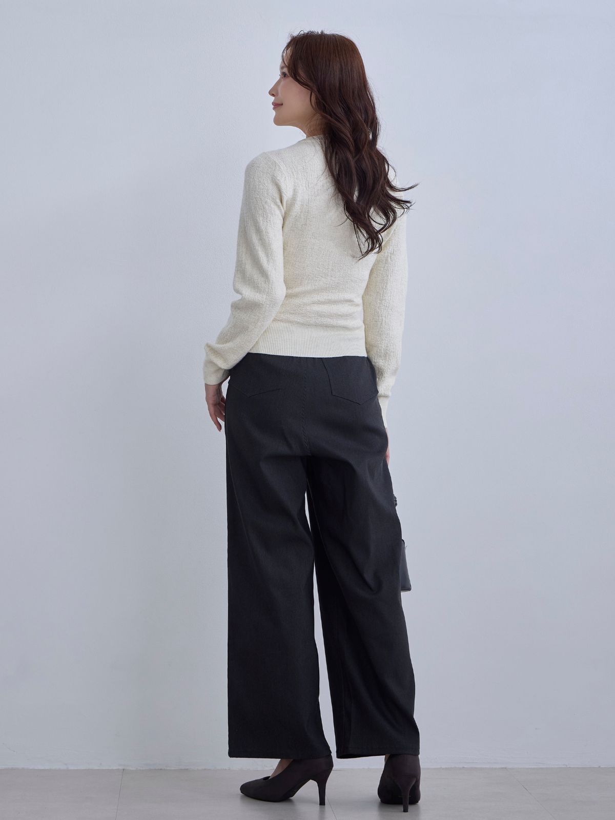 しっかりした冬らしい生地感。 Vネックがすっきり見せてくれる。 腰部分も好きな位置まで絞れるので、好みの調整ができます。 真冬でもインナーやコートを工夫すれば全然着れそうです。