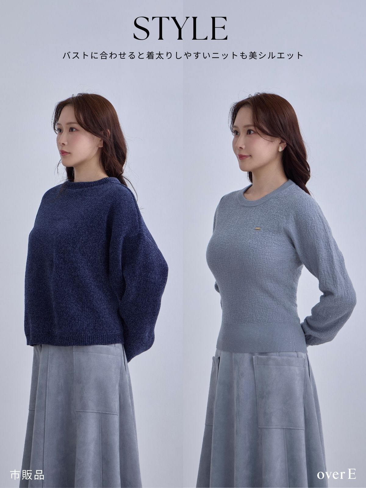 基本は胸囲を基準とした通常サイズをおすすめします。ニットで伸縮性があるため、サイズ境界線の方は小さい方をお選びください。推奨胸囲+3cmまで着用可能です。