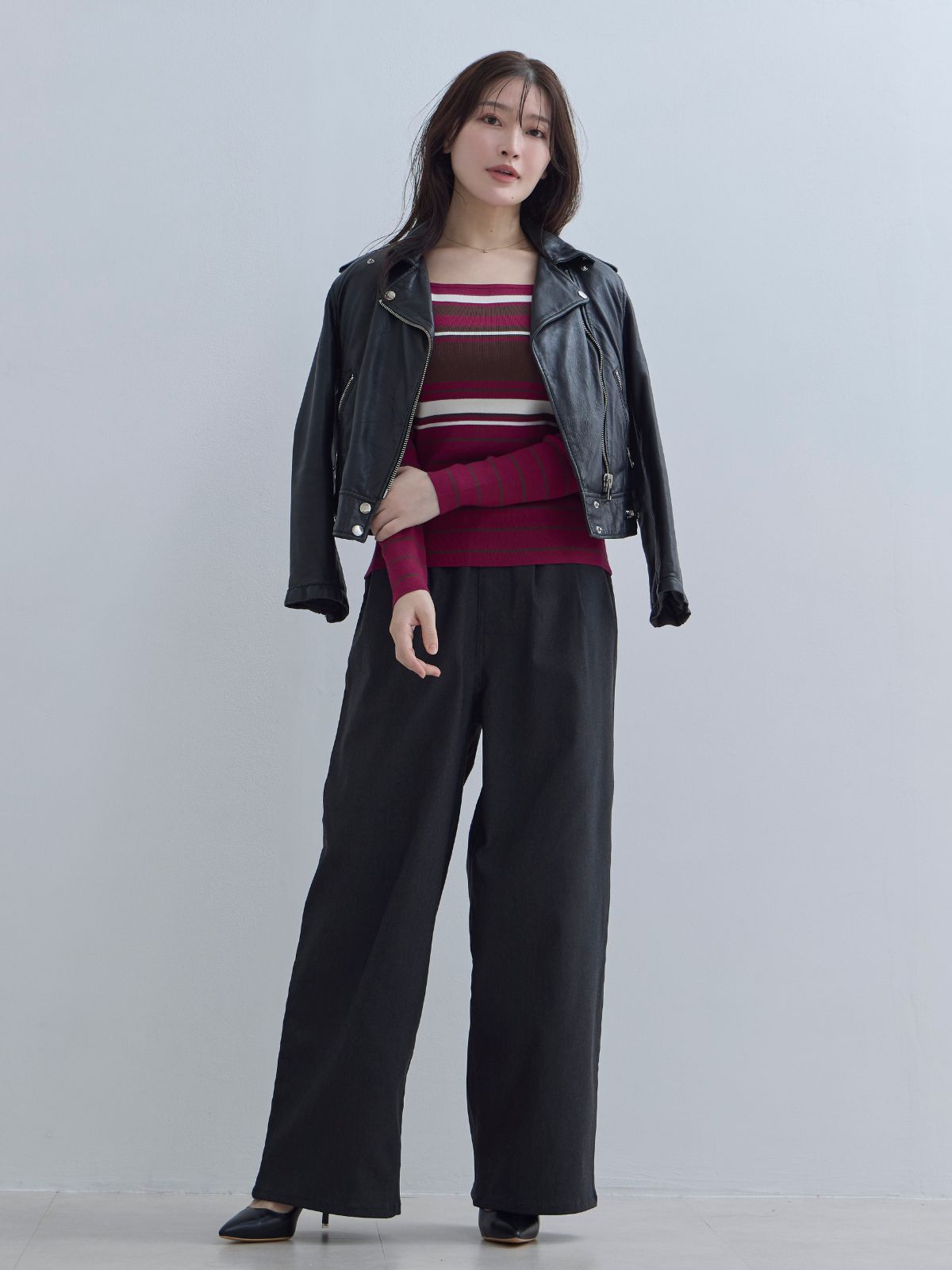 色可愛い!着痩せ!この二つで最高にお気に入りです!また、ライダースのスエードはなかなかないため好みのものに出会えてよかったです。レザーライダースだとかっちりしすぎてしまうのをスエードで抑えてくれます