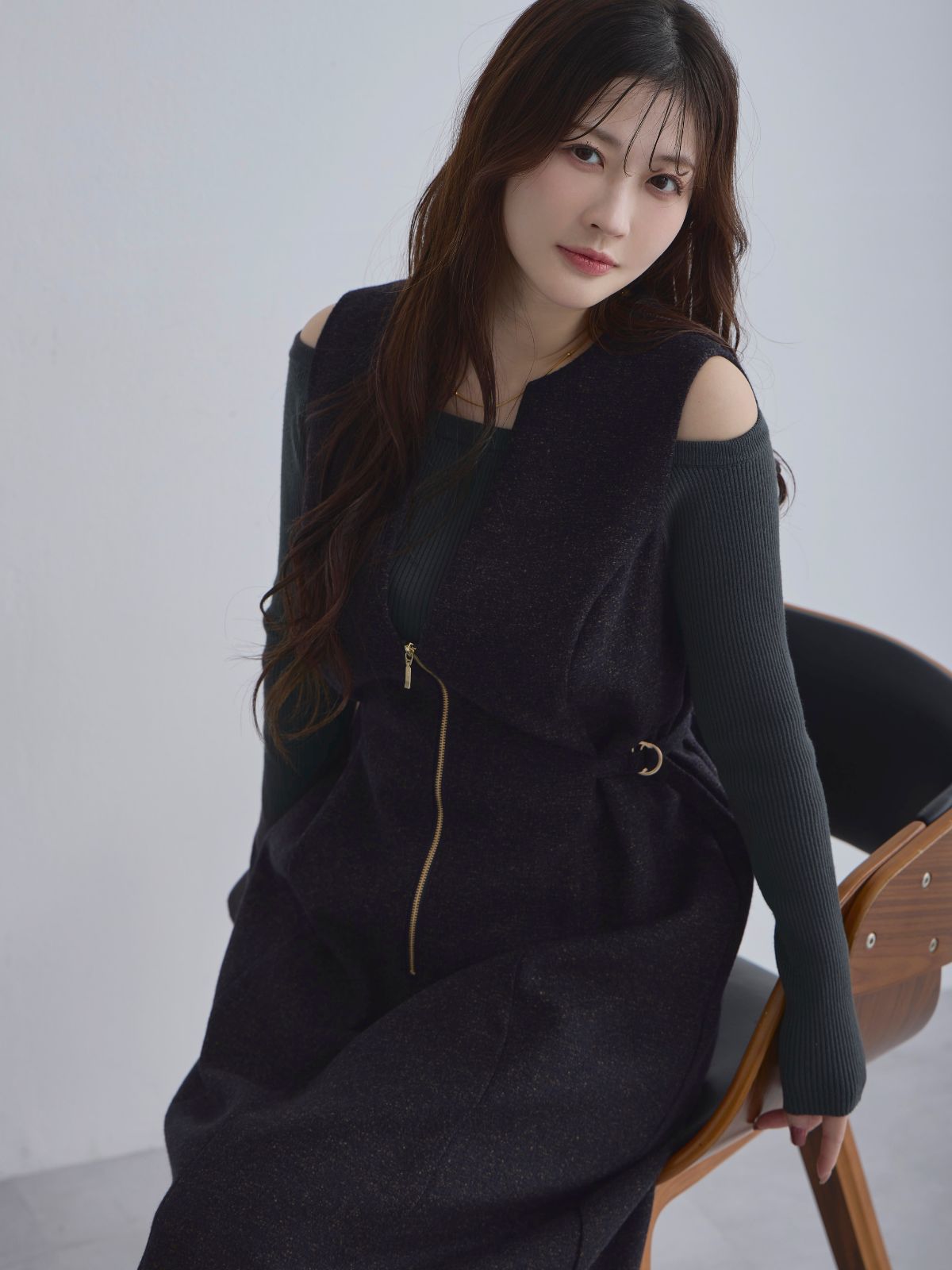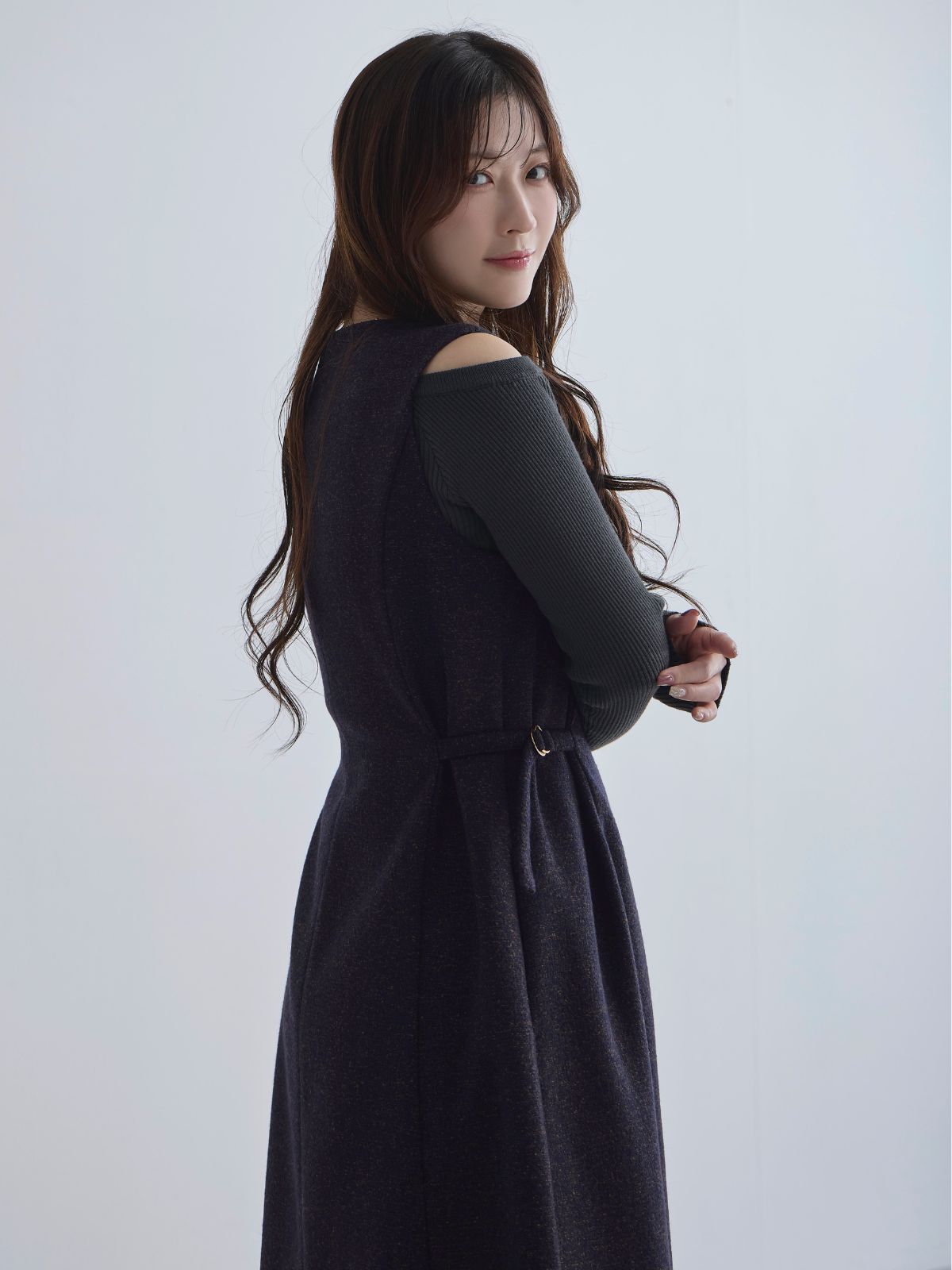 最近、コルセットをつけ始めました。骨ストなのにVネックがしっかりこない自分としてはこちらのネックラインがすごくしっくりきて、試着した瞬間、良いお買い物をした…!!と感動いたしました。推しのファンミはこちらのお洋服で行きます!ニットも是非Vネック以外が今後増えていってくれたら嬉しいです。