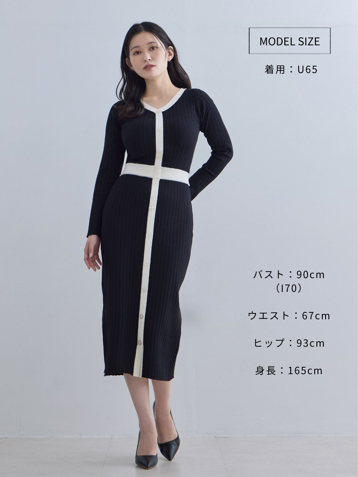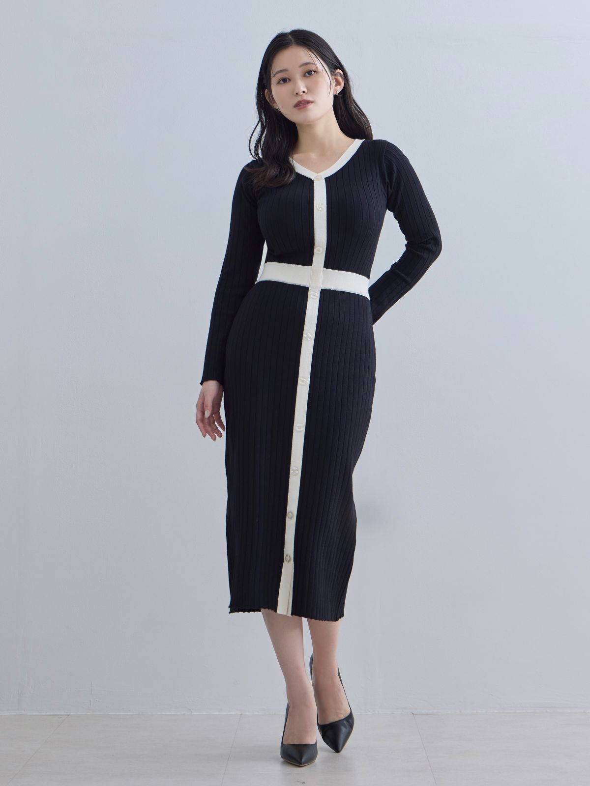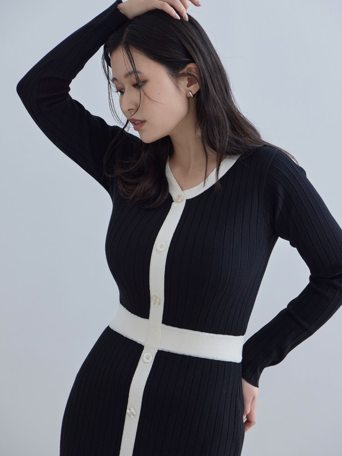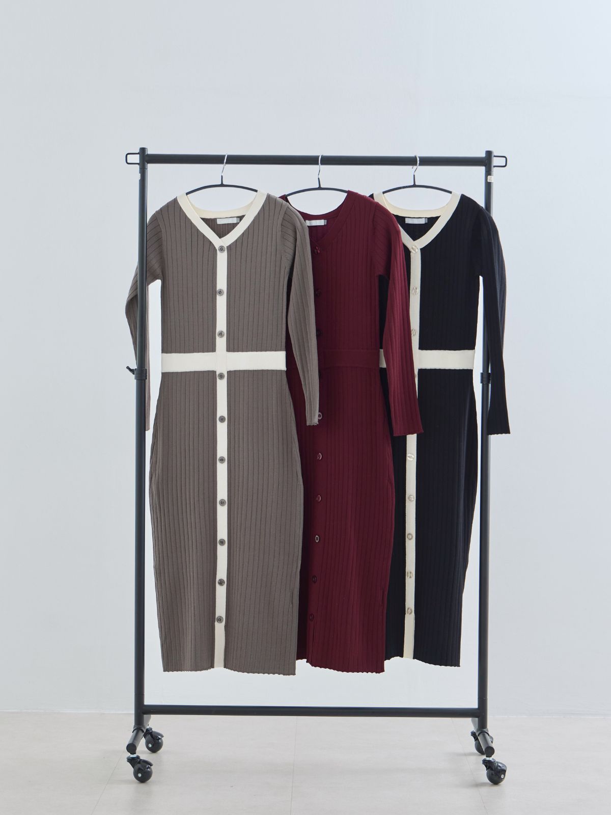 タイト風ワイドリブニットワンピース:ダークモカバイカラー