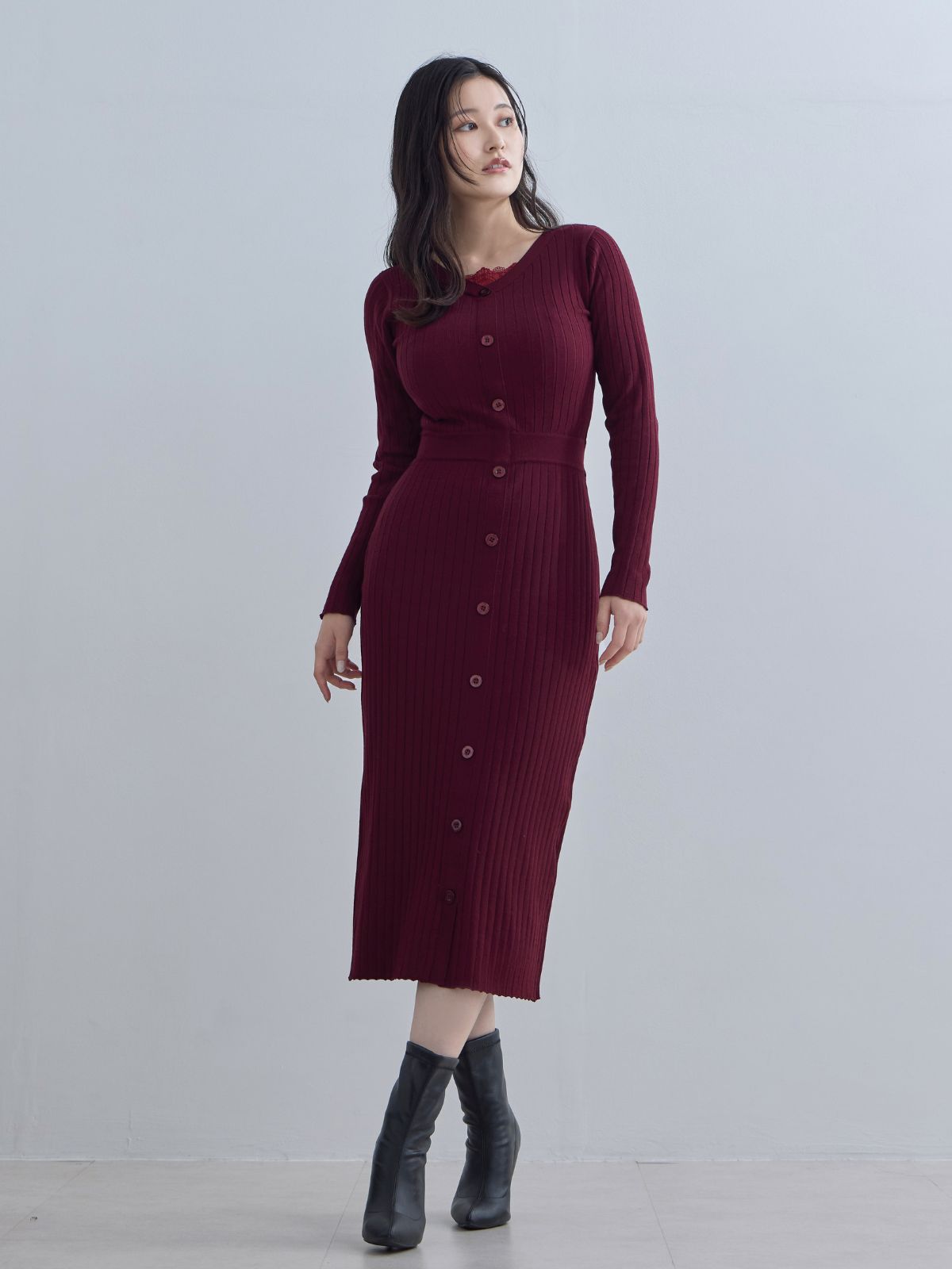 【参考】C0121 タイト風フロントボタンリブニットワンピース
