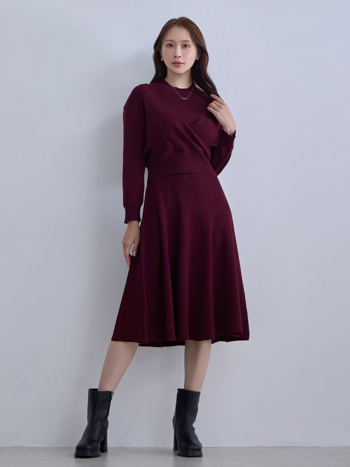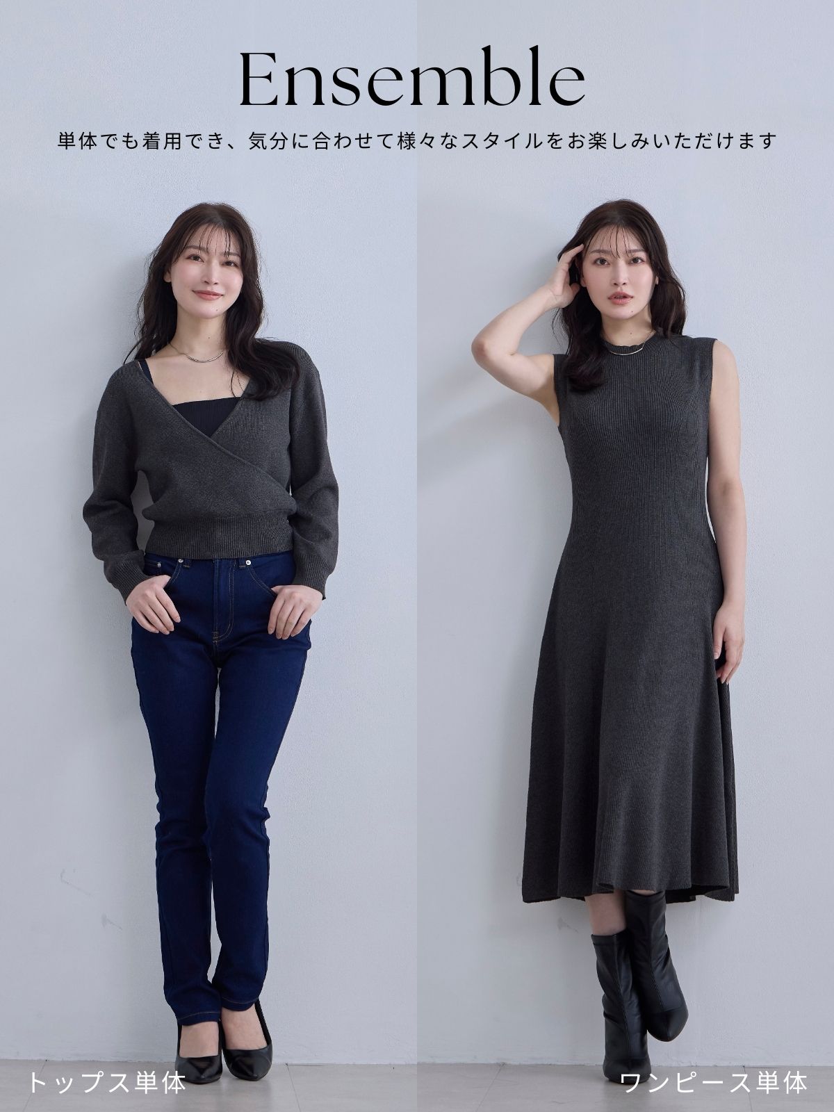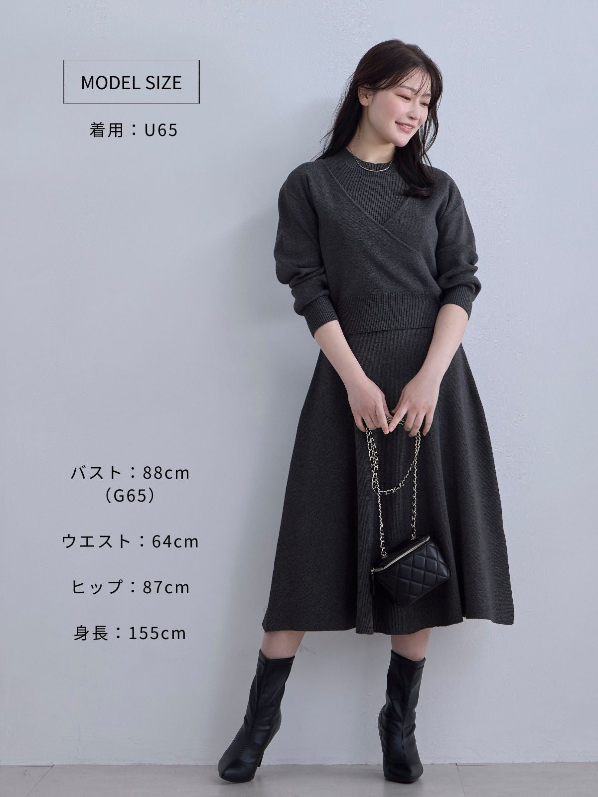 アンサンブルパネルニットワンピース:ダークグレー