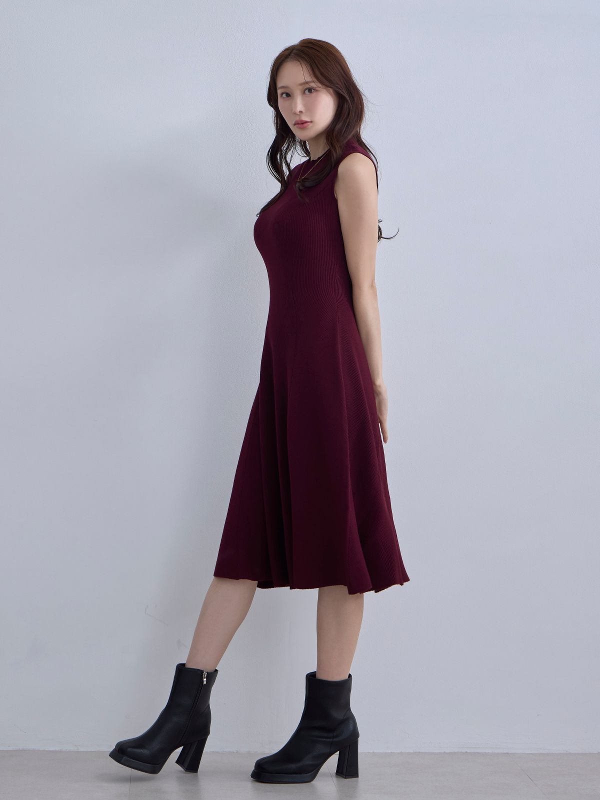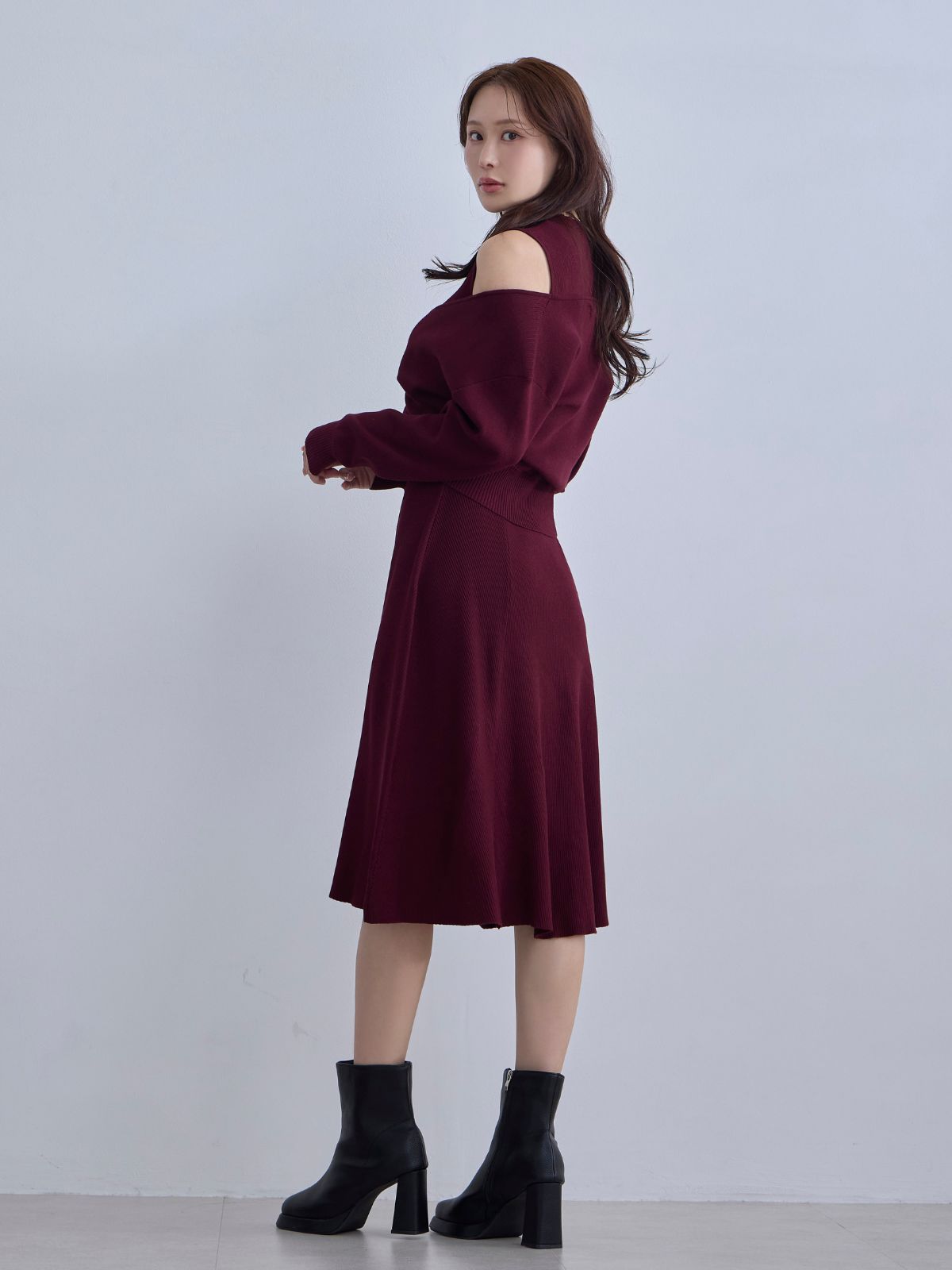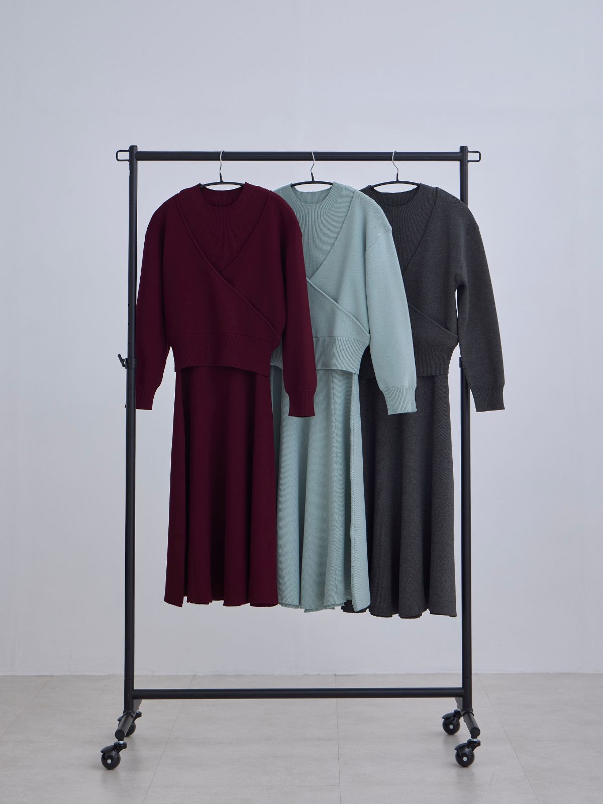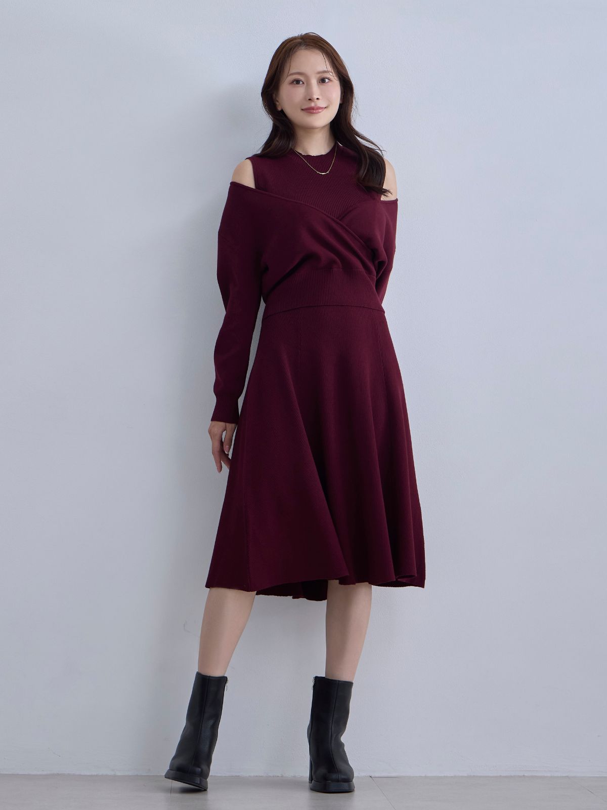 アンサンブルパネルニットワンピース:ダークグレー