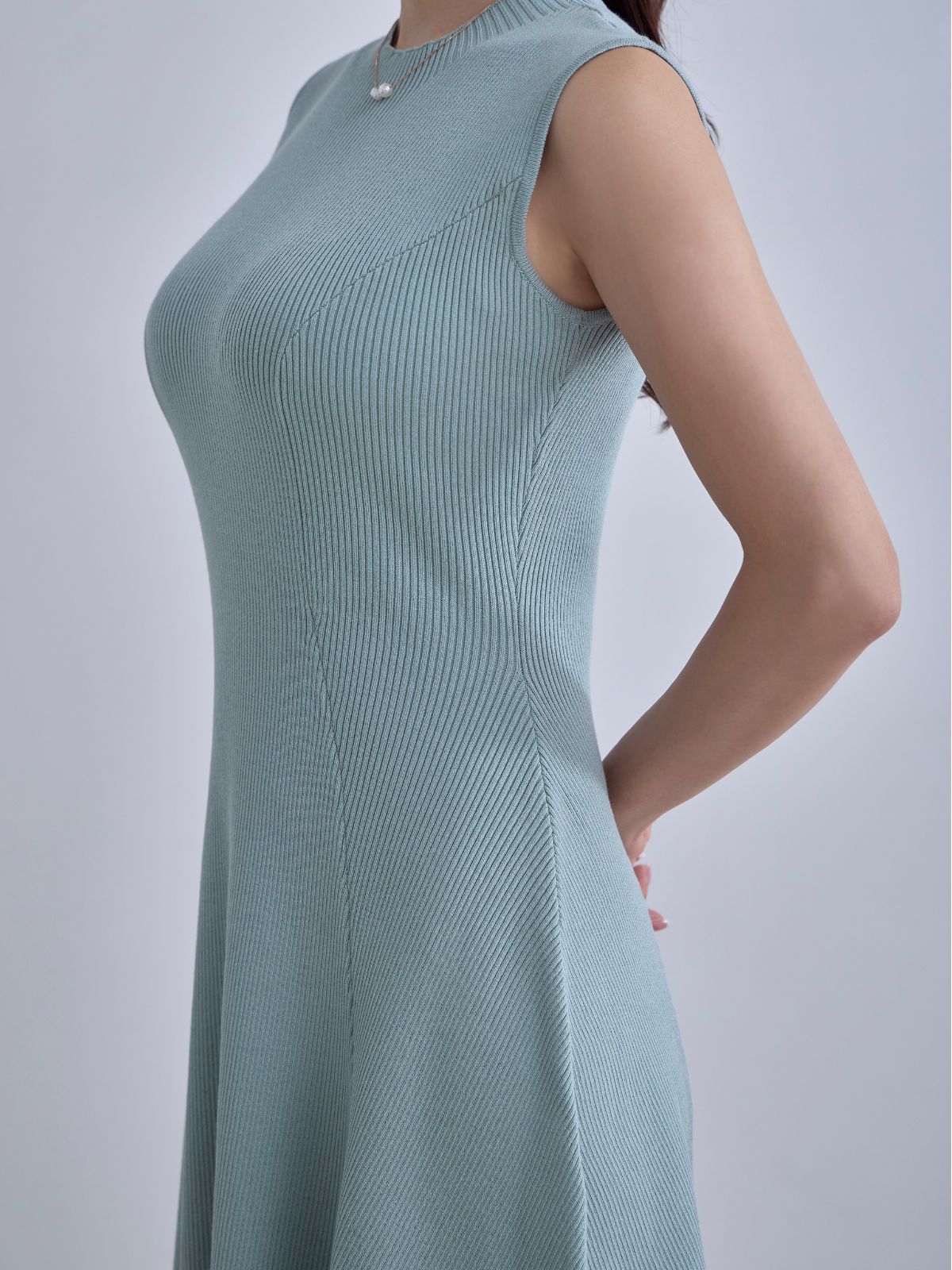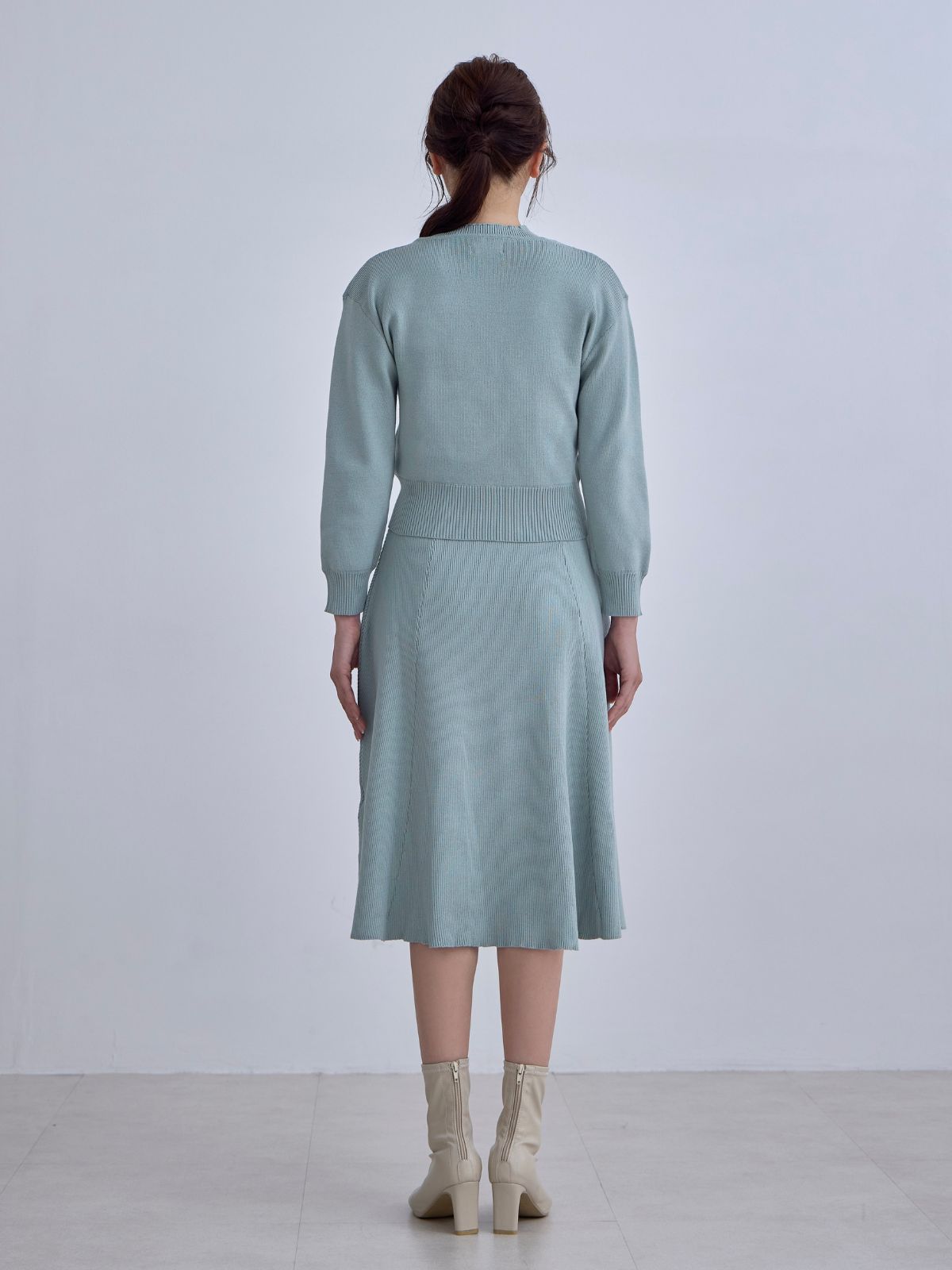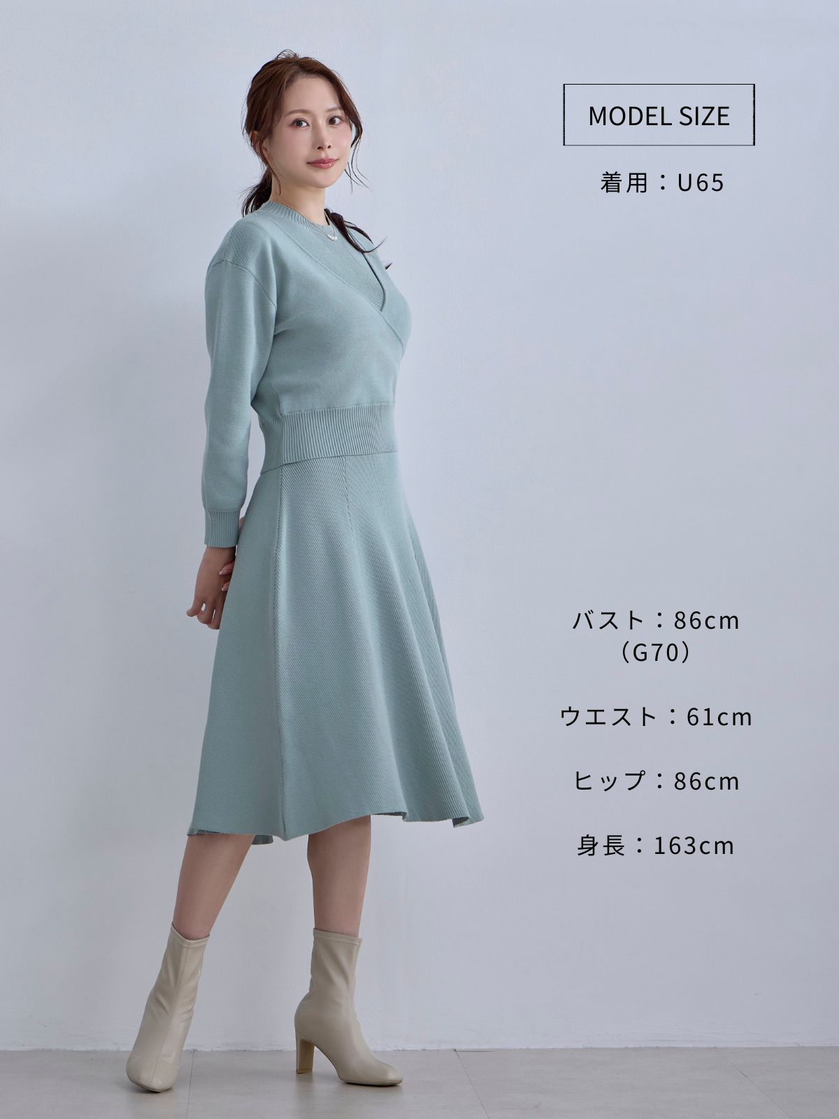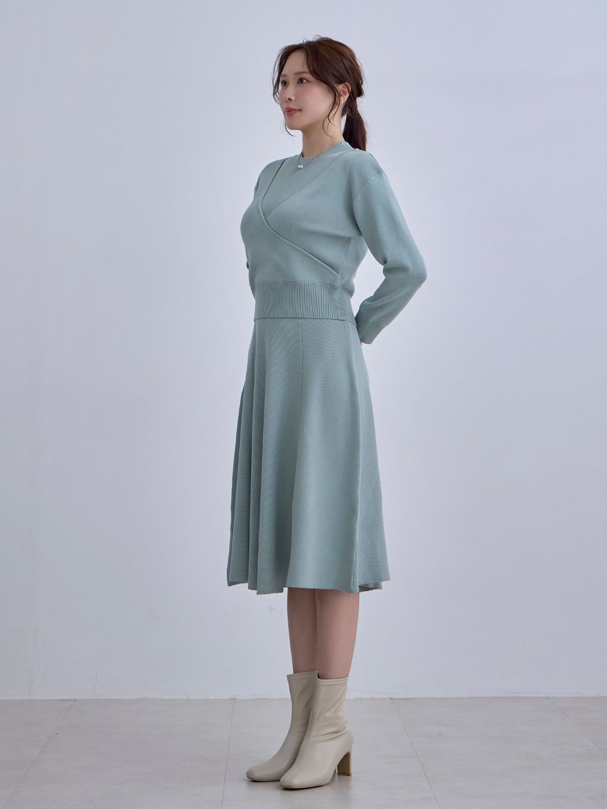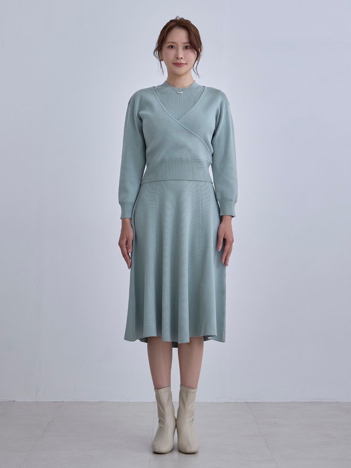 アンサンブルパネルニットワンピース:アクアグリーン