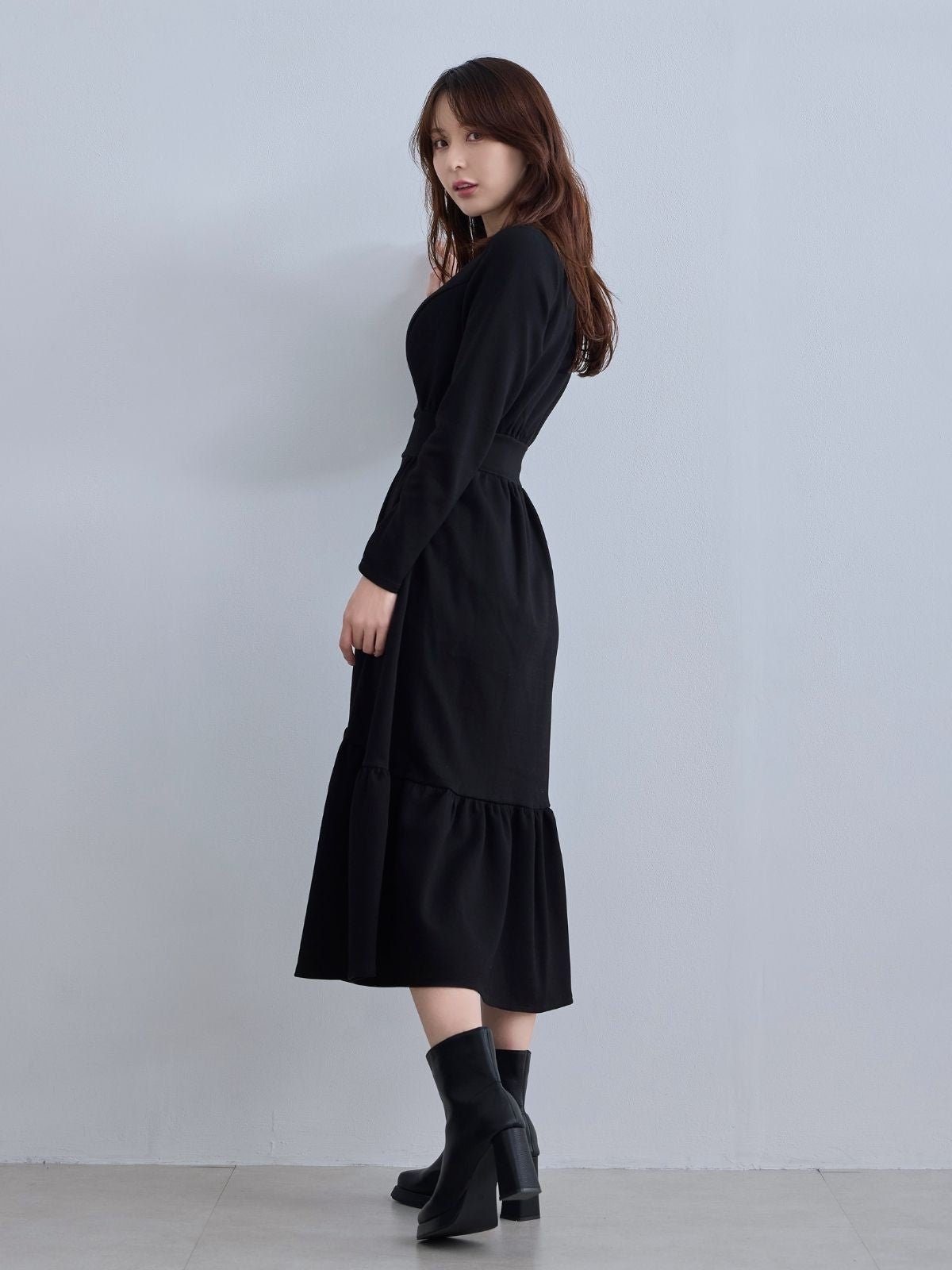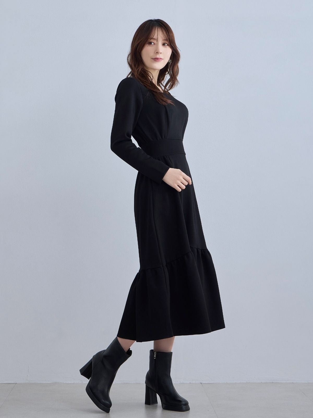 裏起毛プルオーバーティアードワンピース:エクリュ