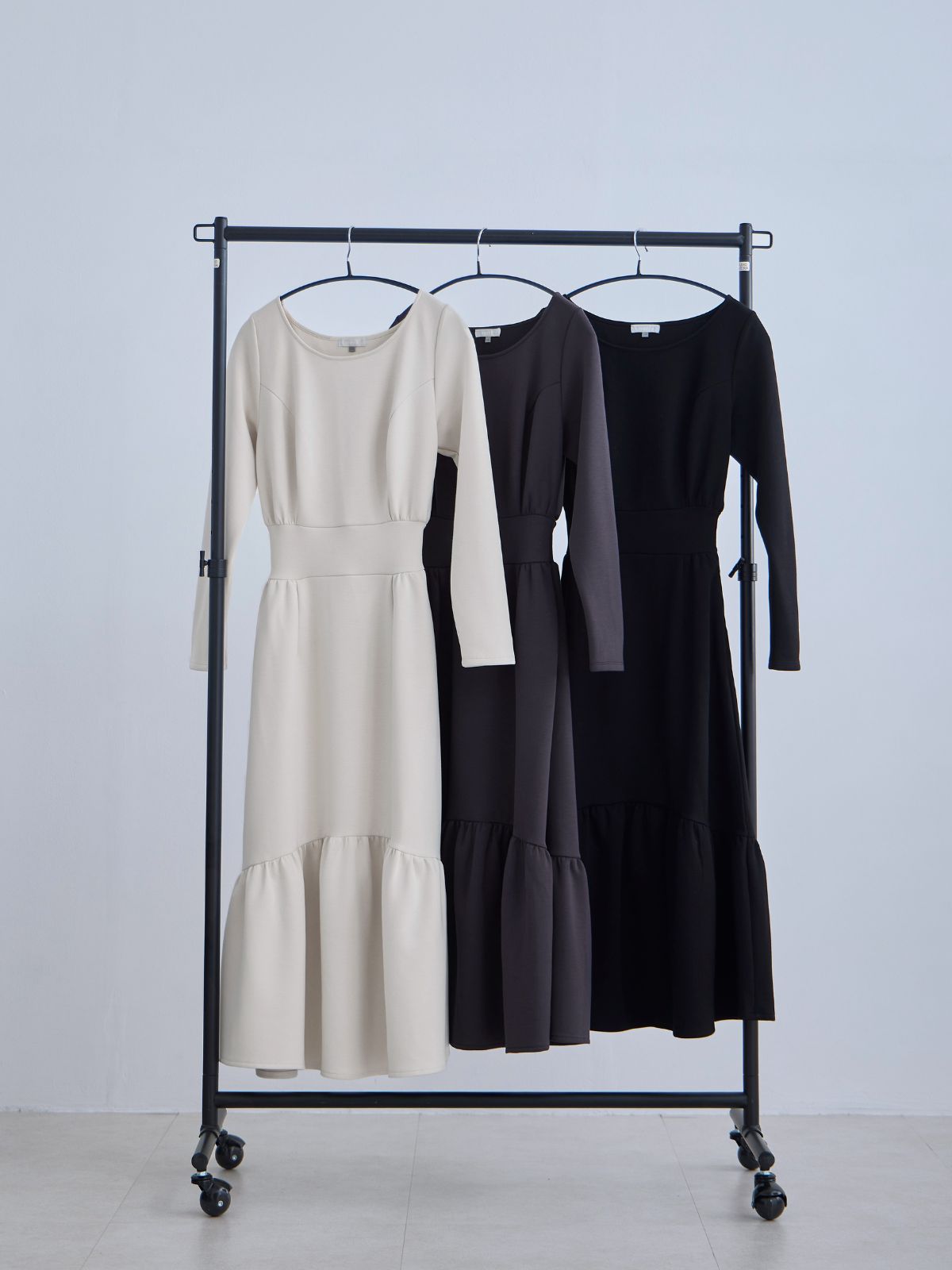裏起毛プルオーバーティアードワンピース:エクリュ