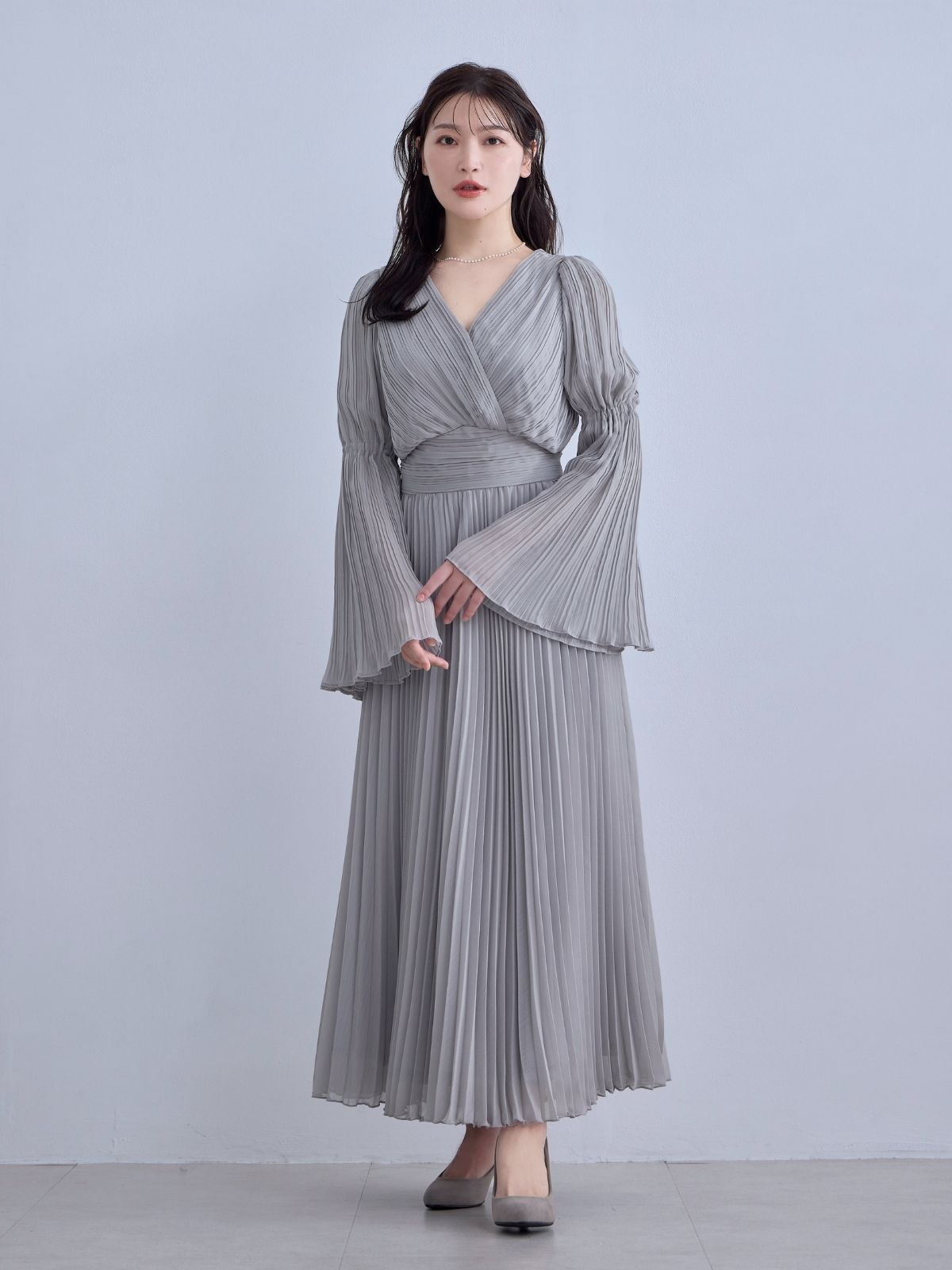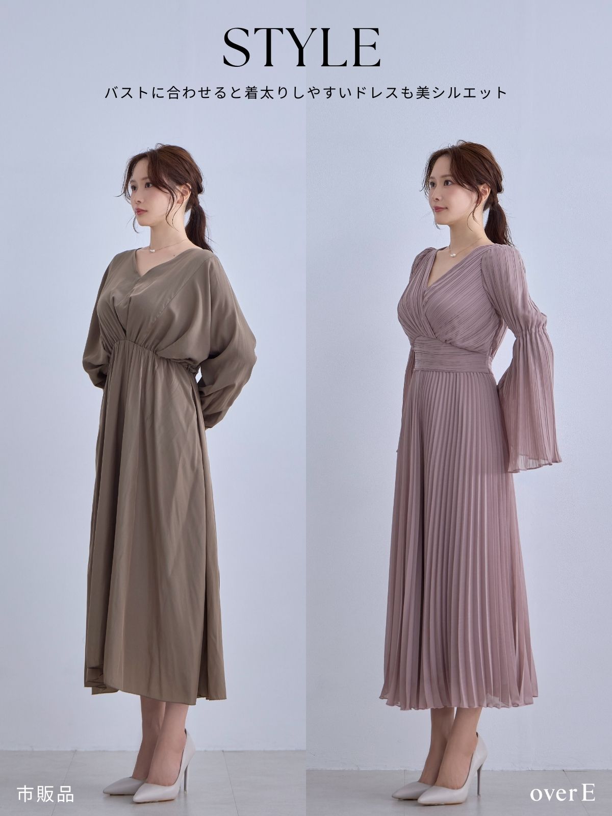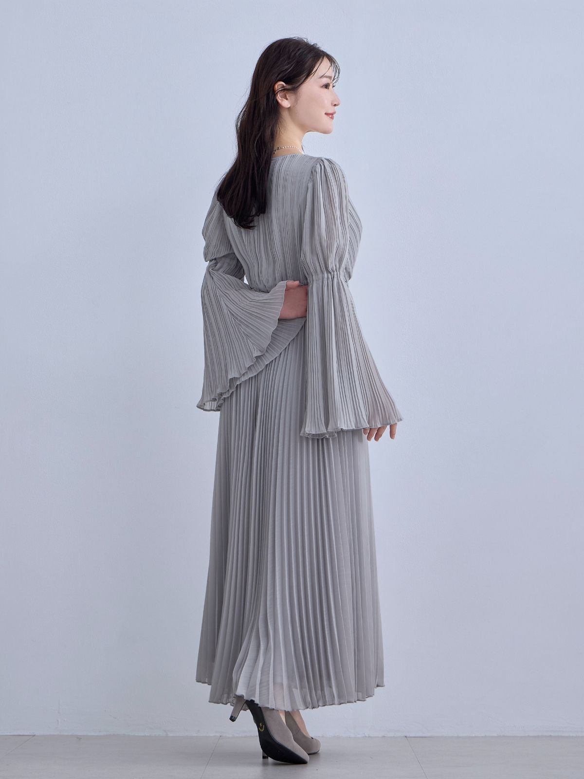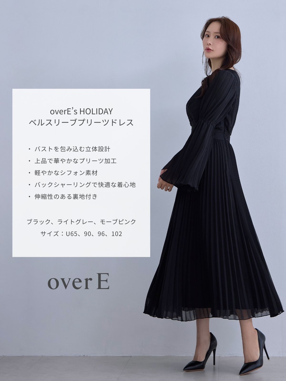 C0160 overE’s HOLIDAY ベルスリーブプリーツドレス