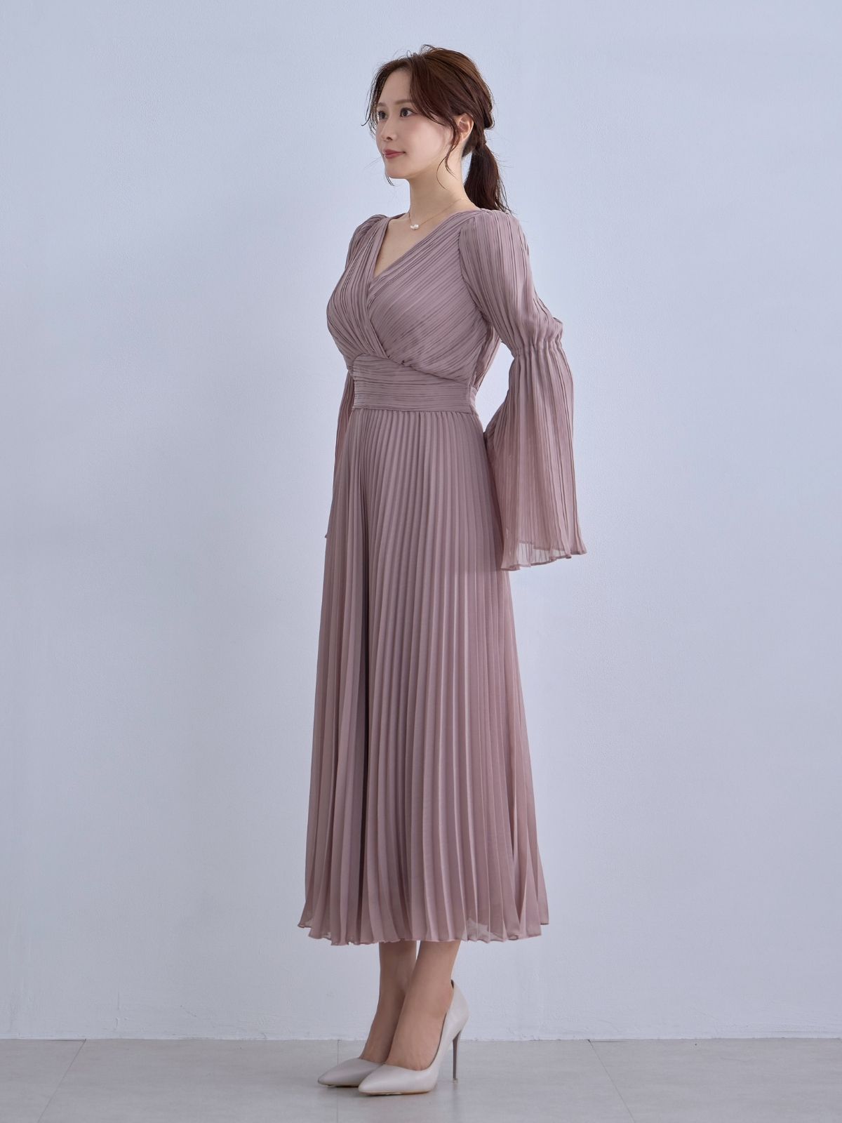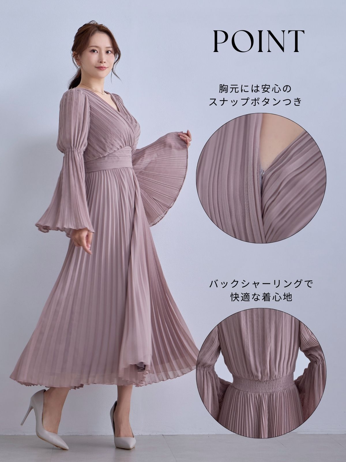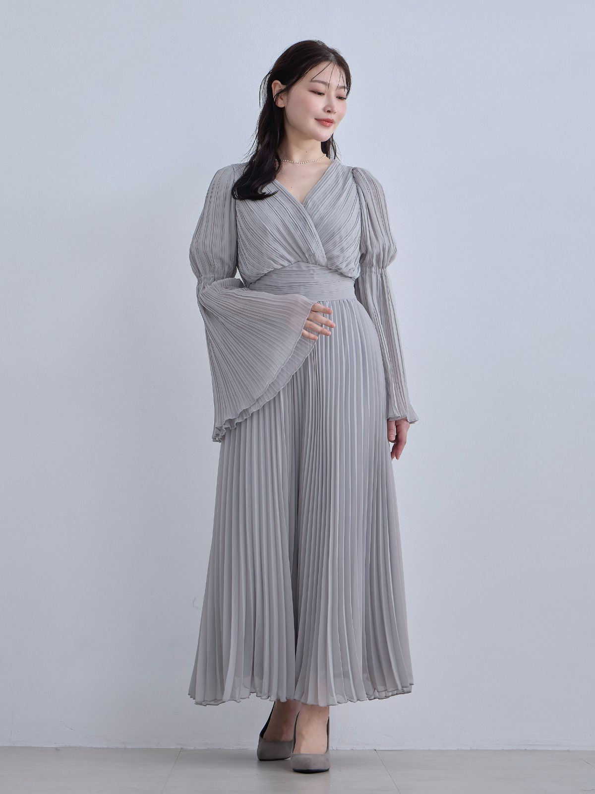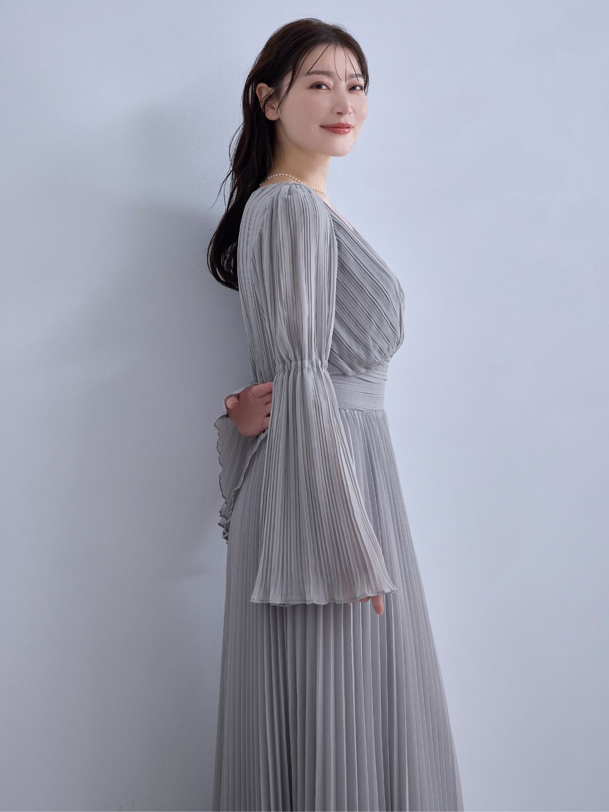C0160 overE’s HOLIDAY ベルスリーブプリーツドレス
