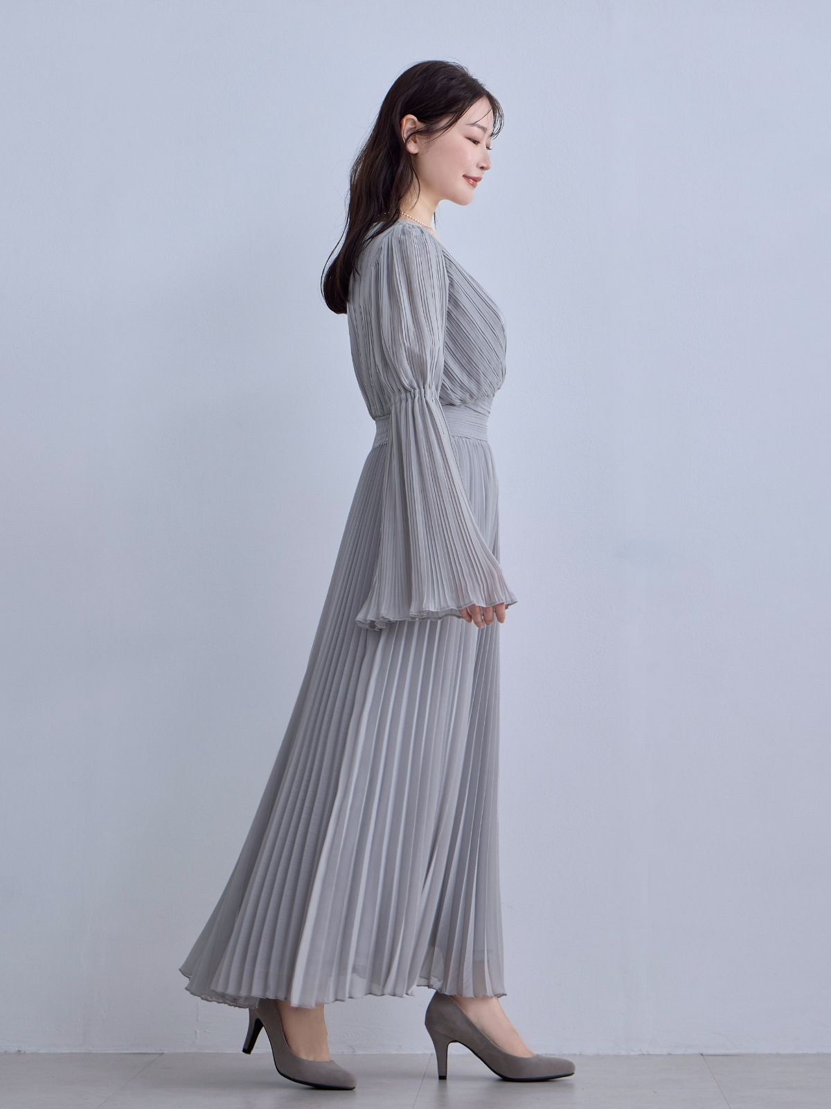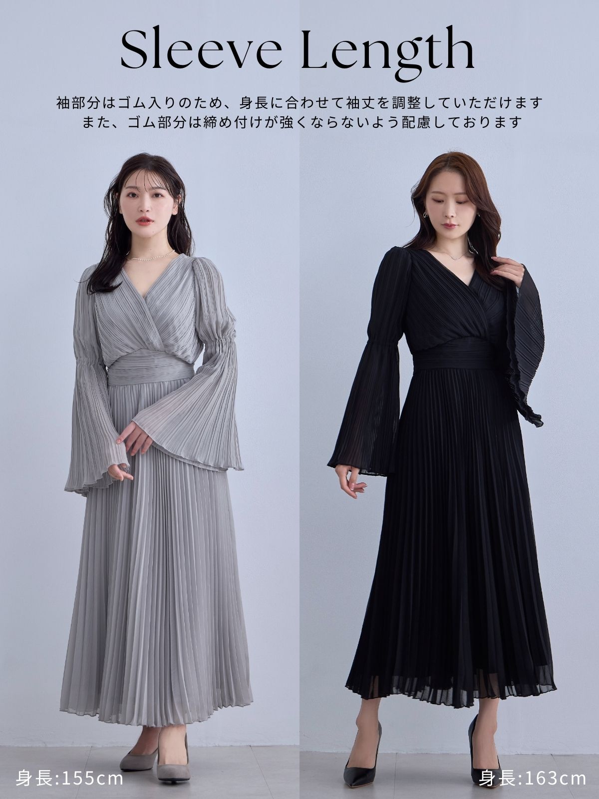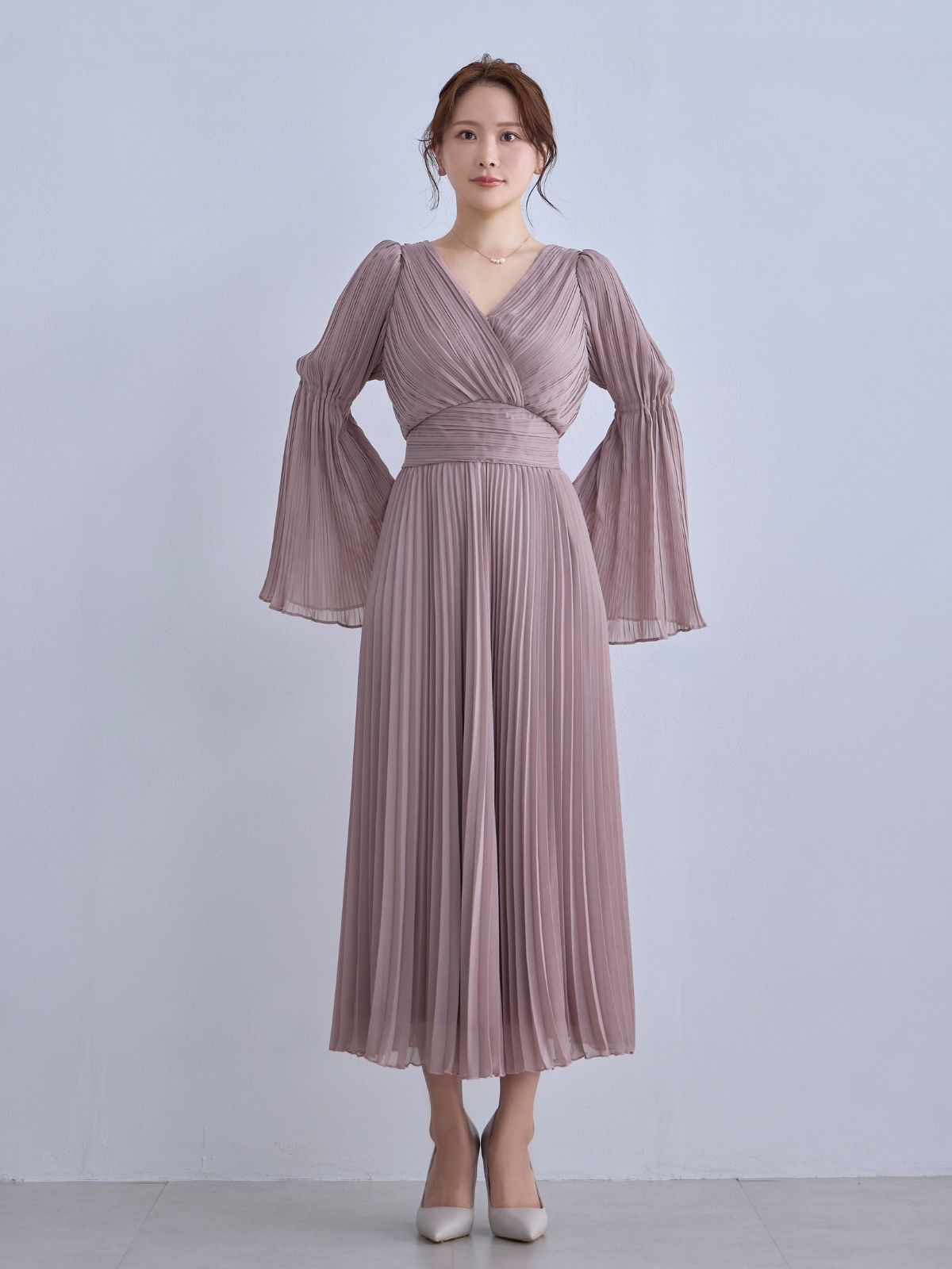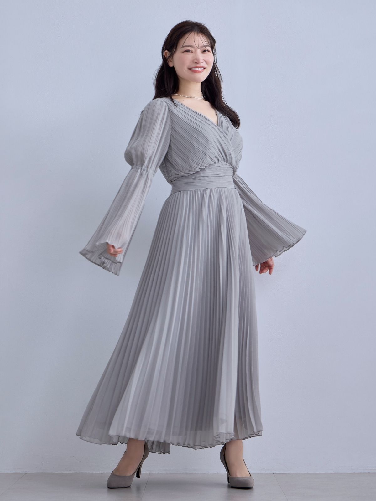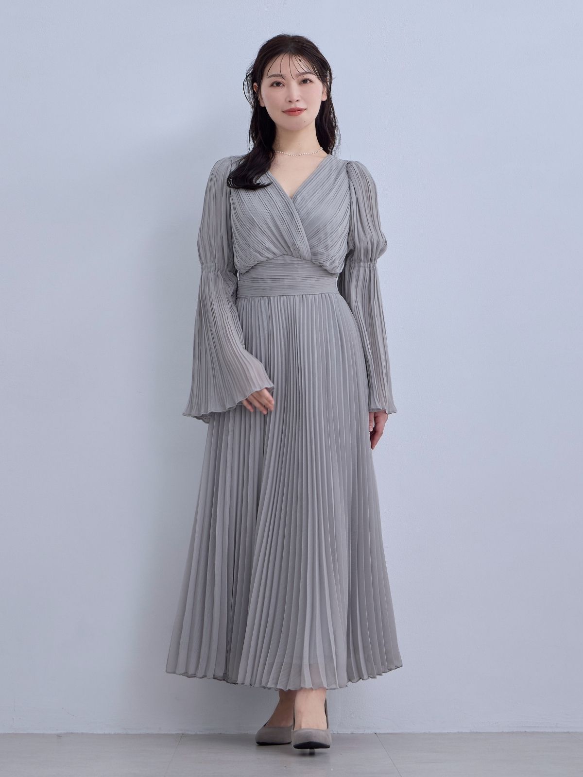 C0160 overE’s HOLIDAY ベルスリーブプリーツドレス