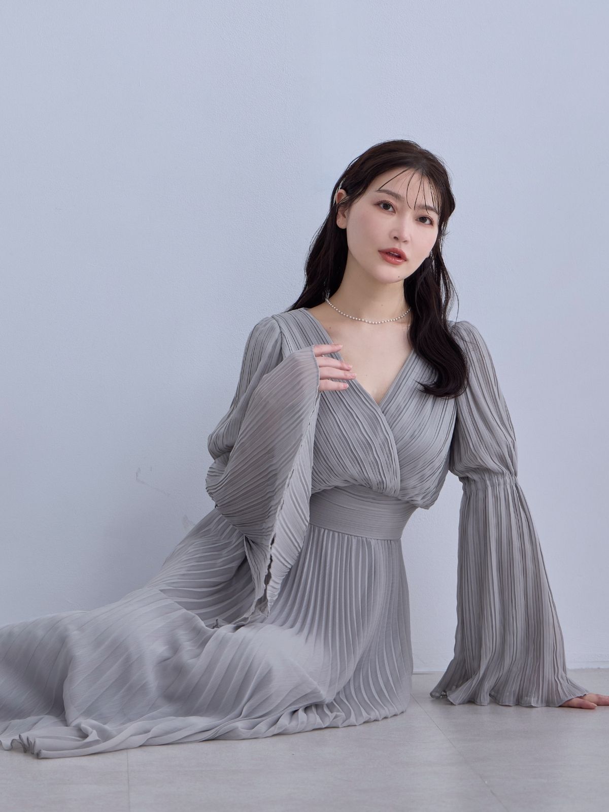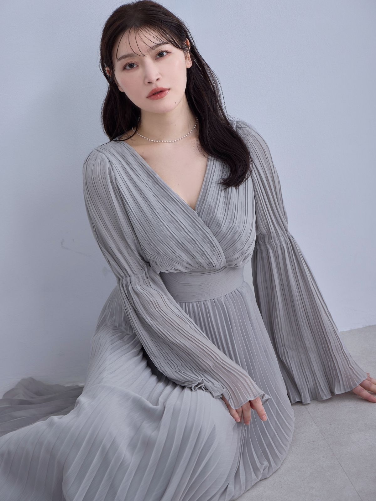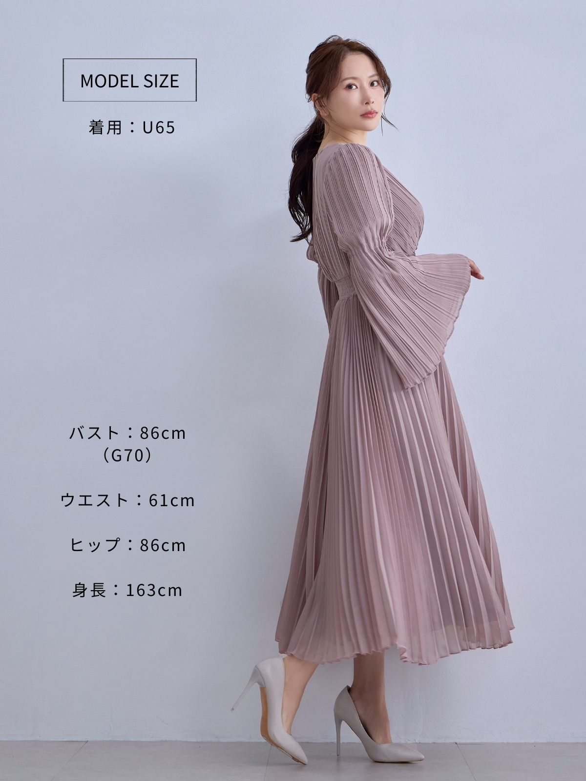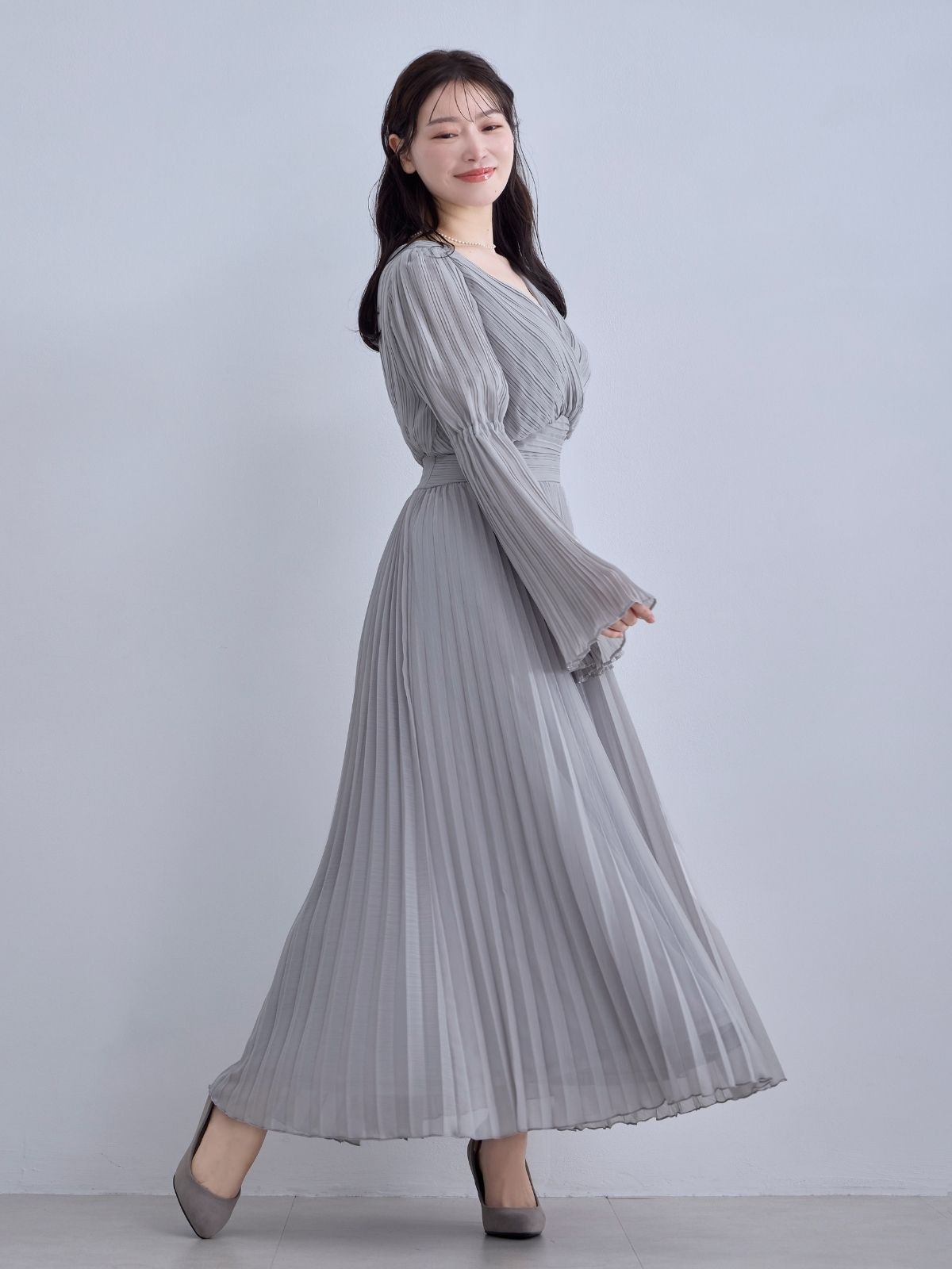C0160 overE’s HOLIDAY ベルスリーブプリーツドレス