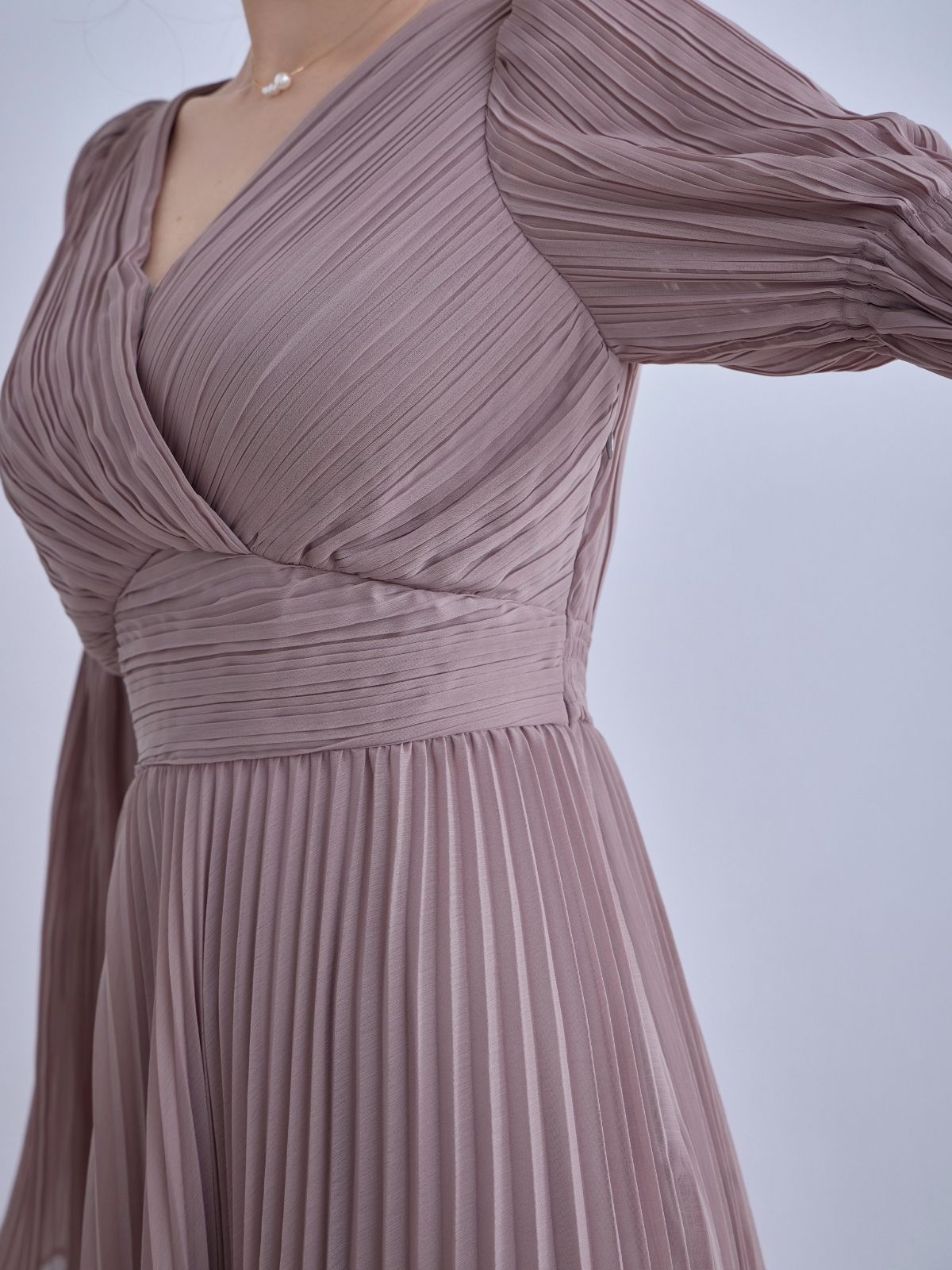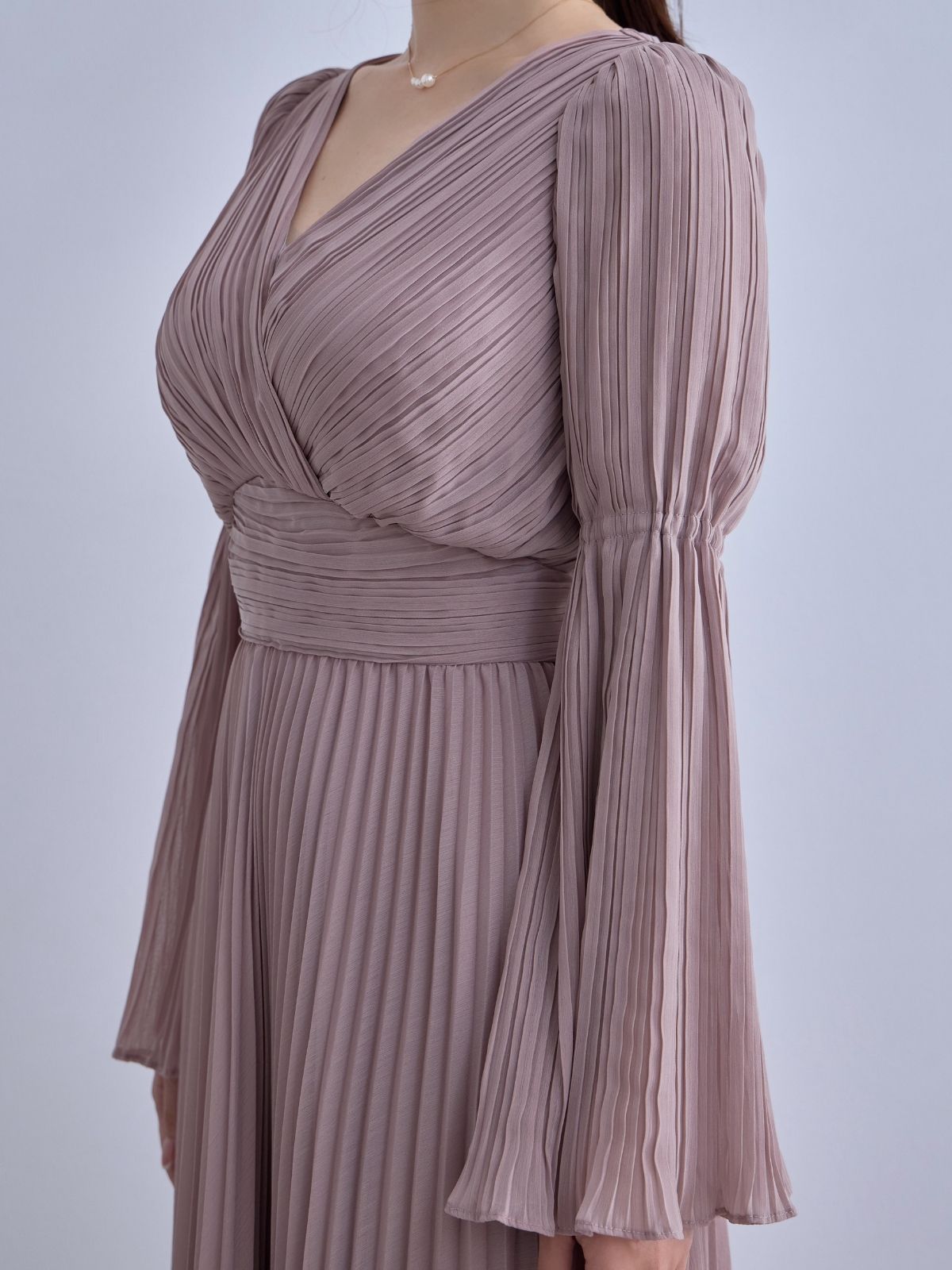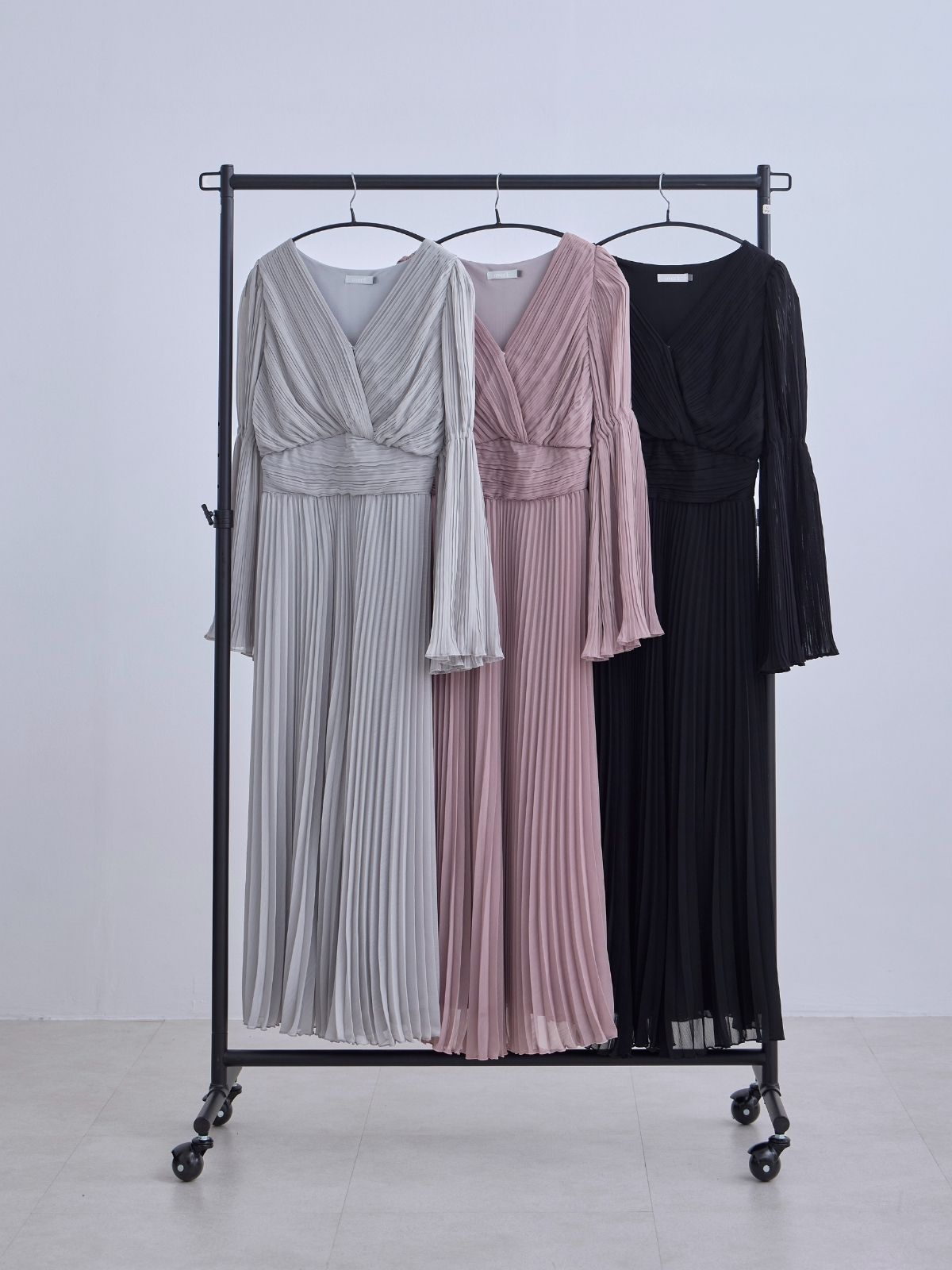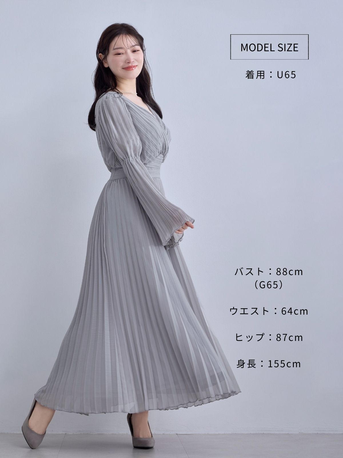 C0160 overE’s HOLIDAY ベルスリーブプリーツドレス