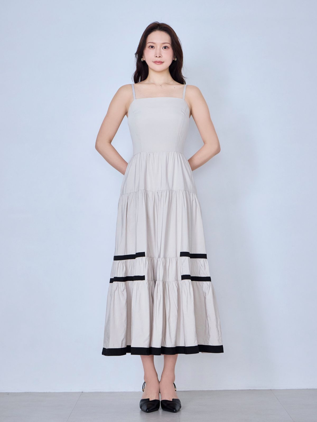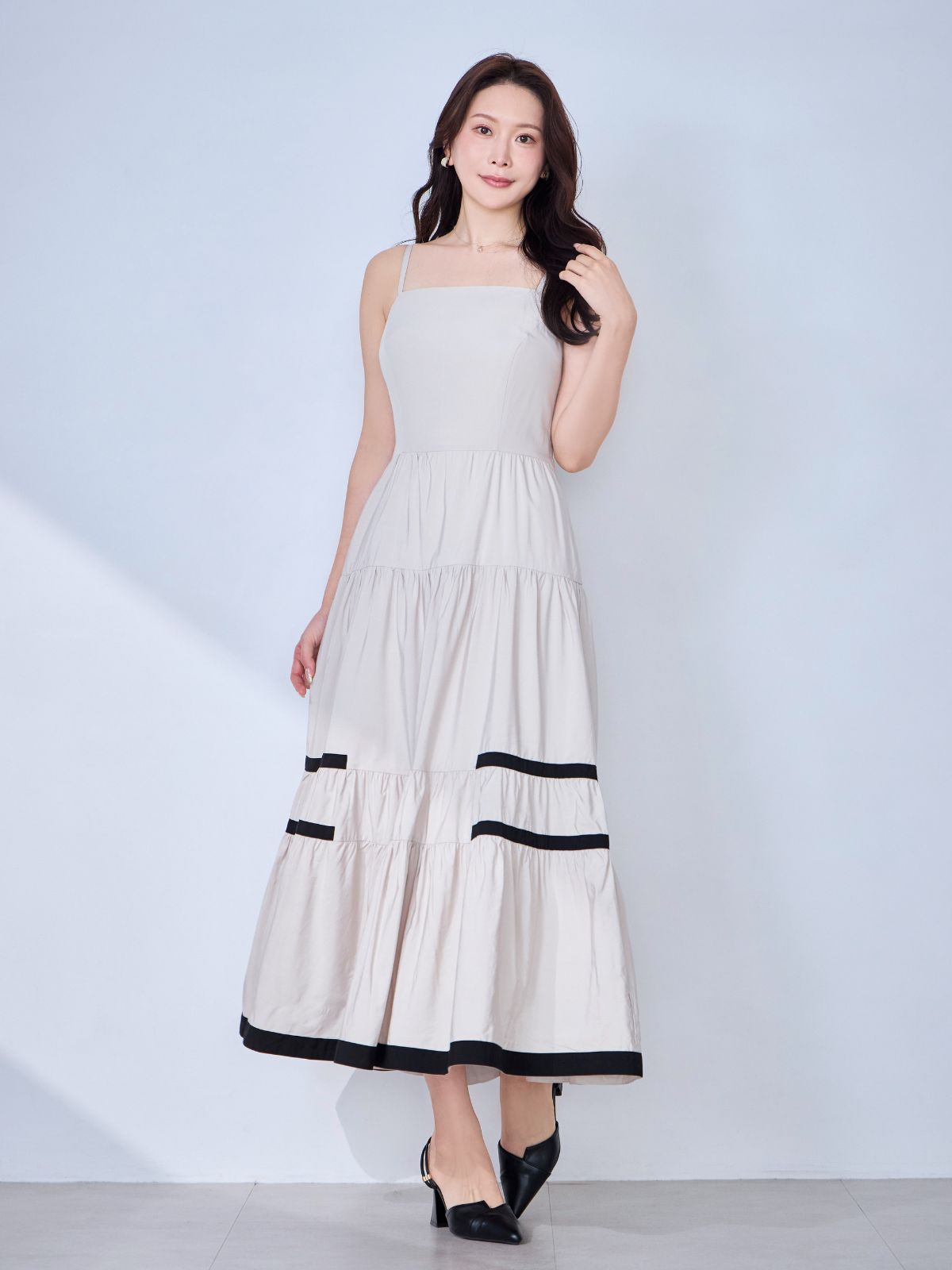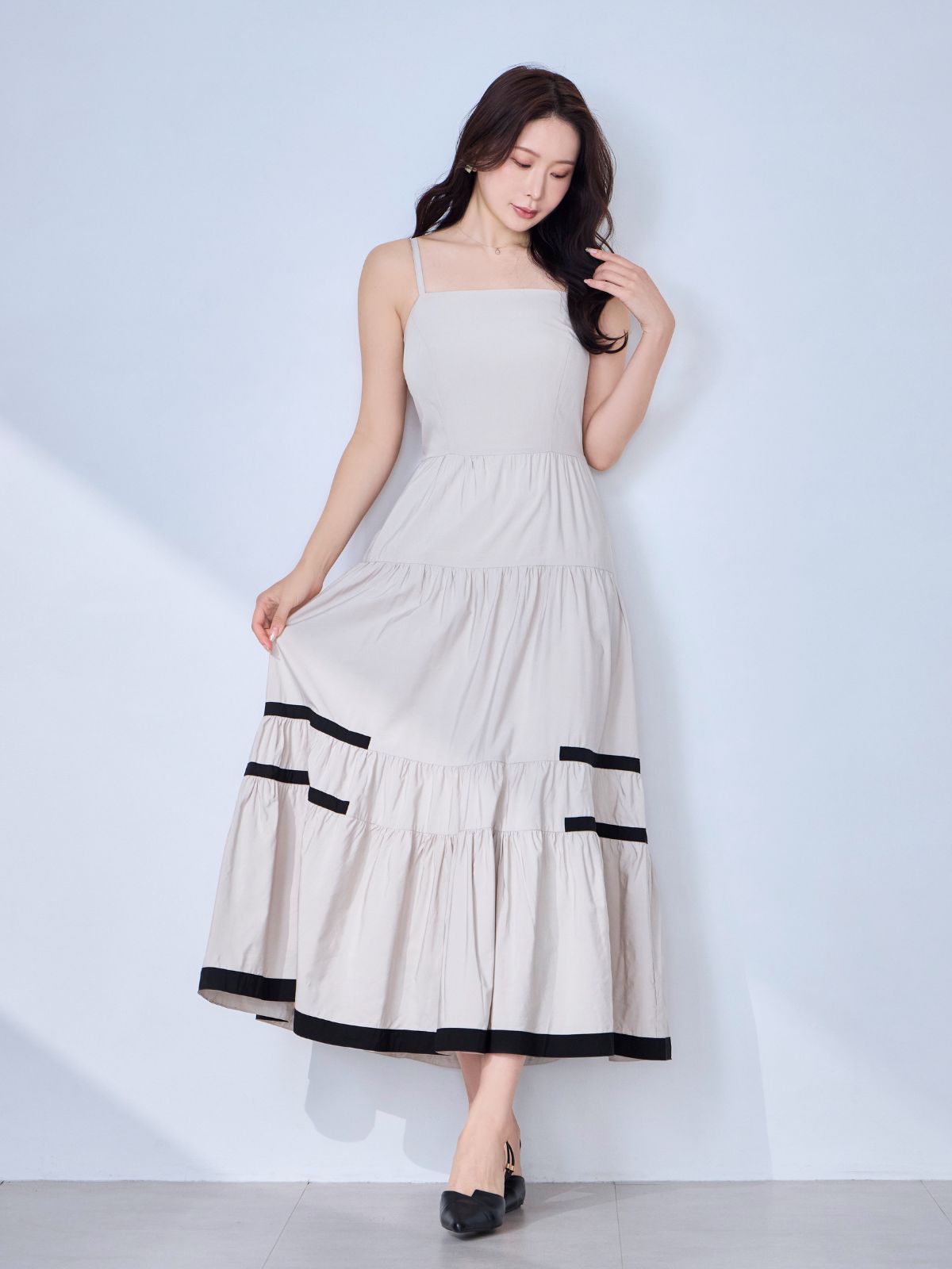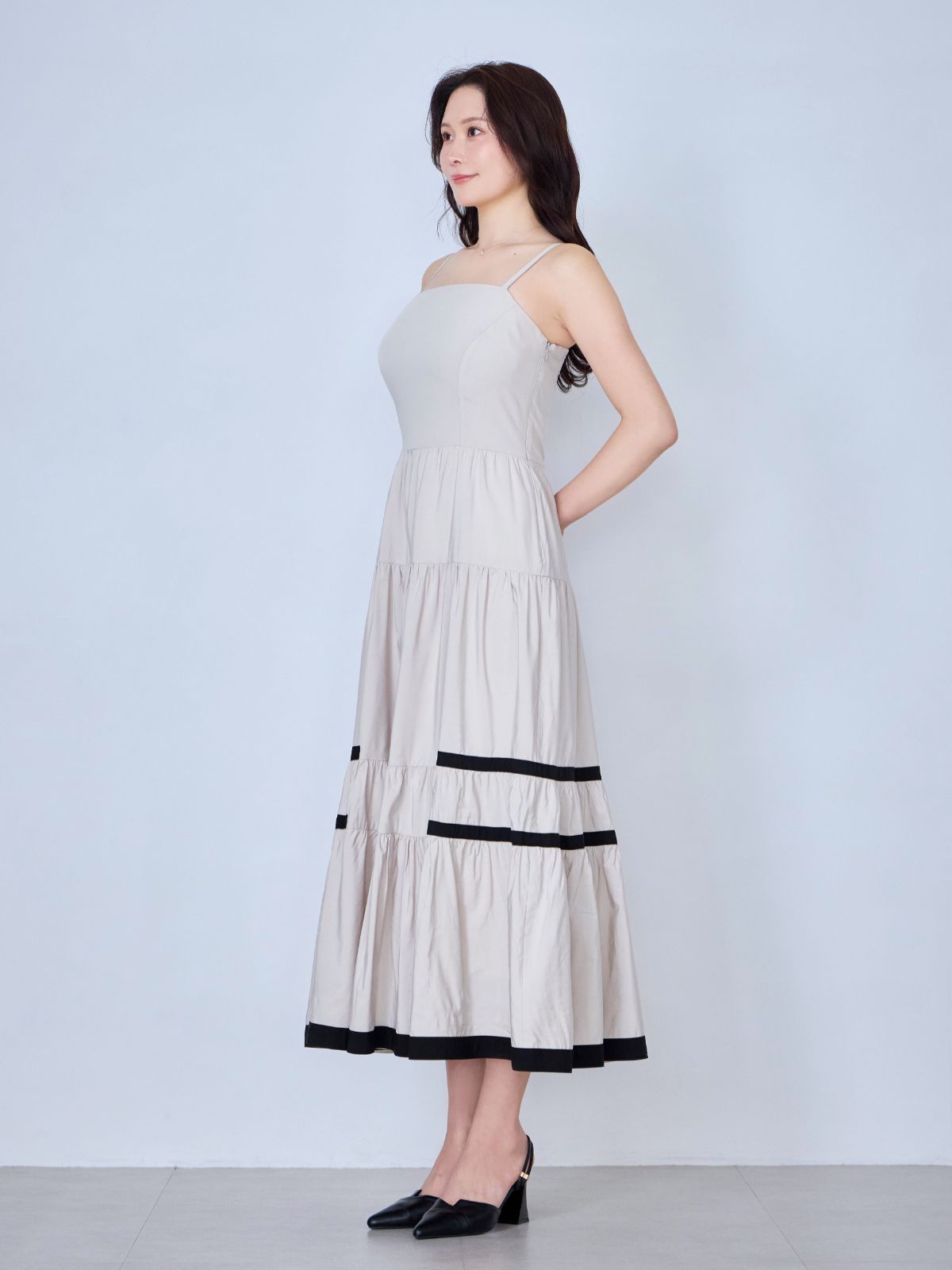 バイカラーティアードキャミワンピース:ブラック