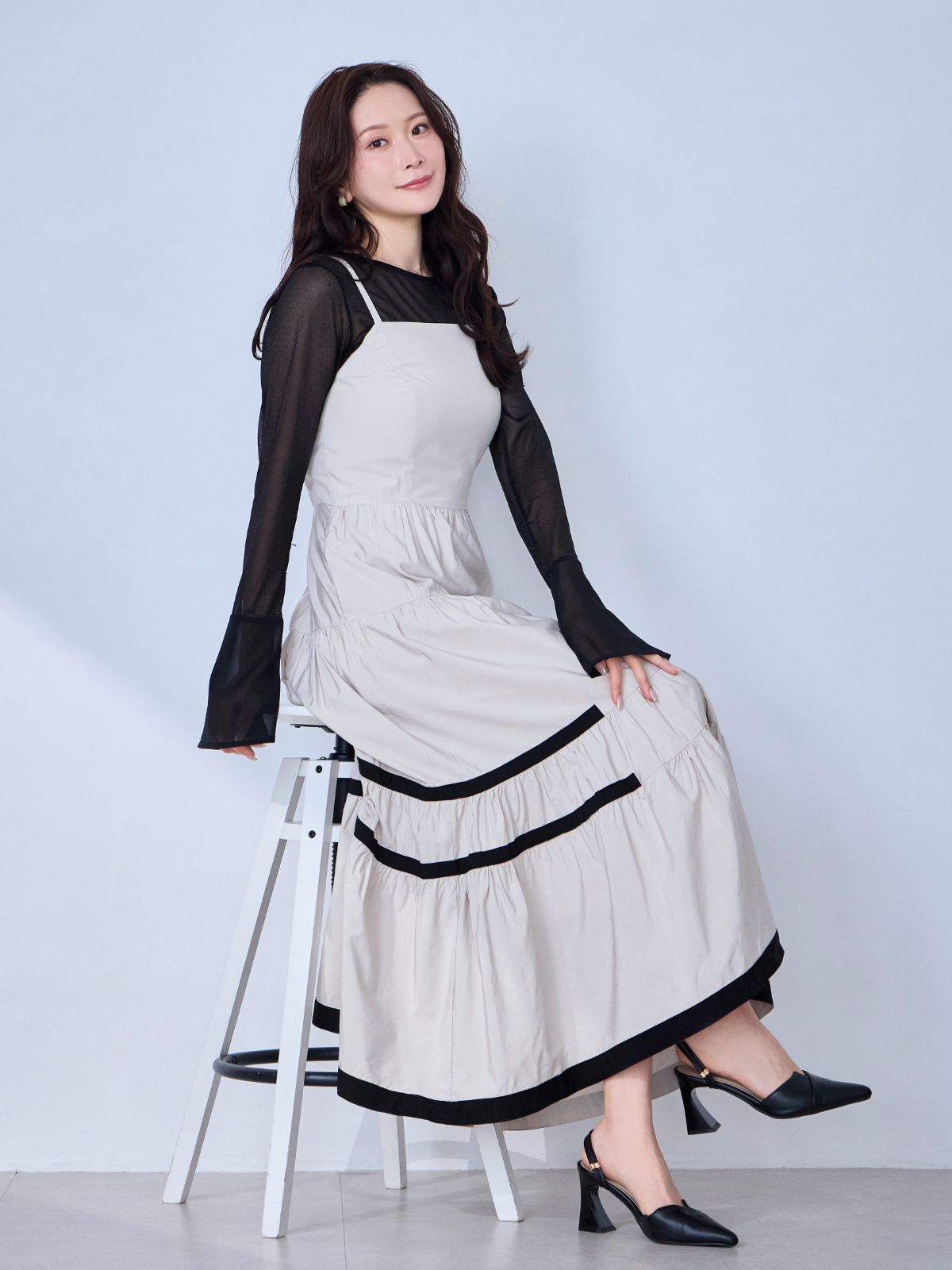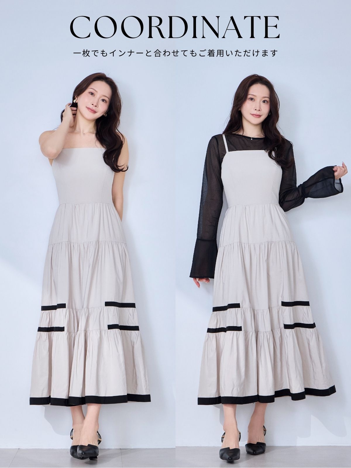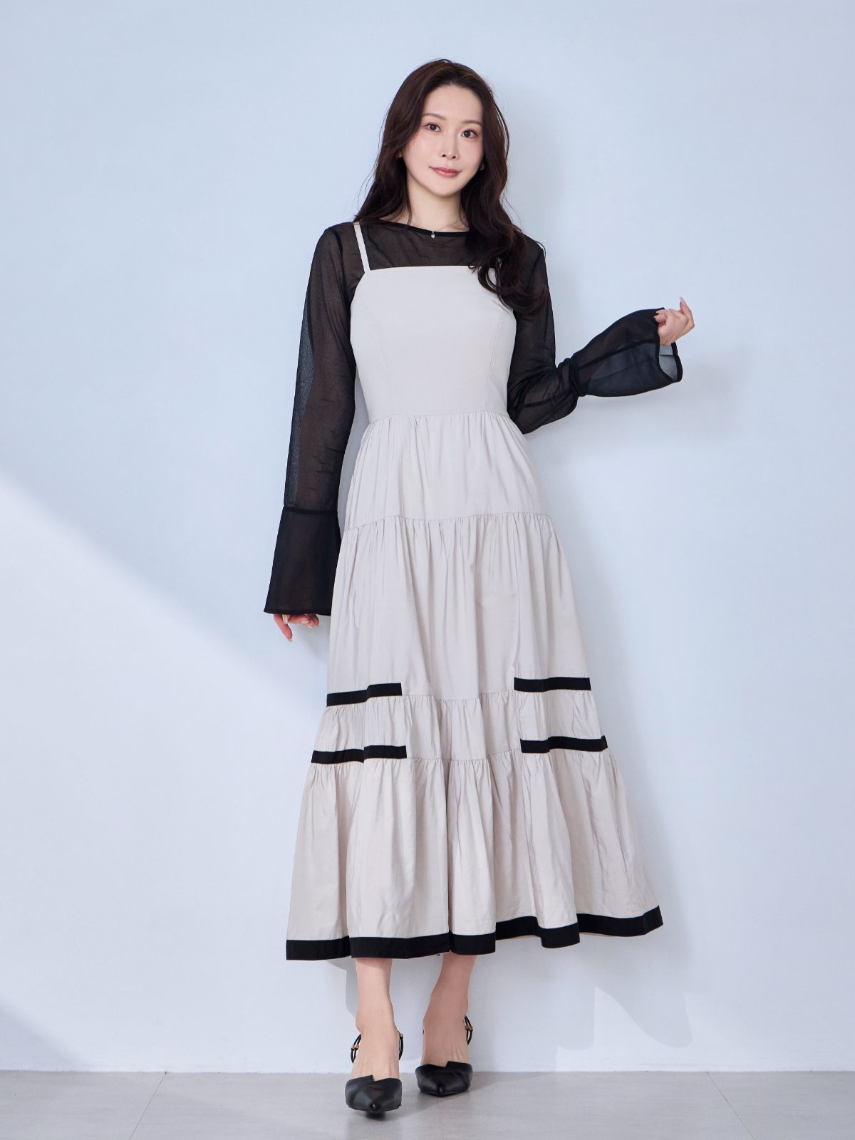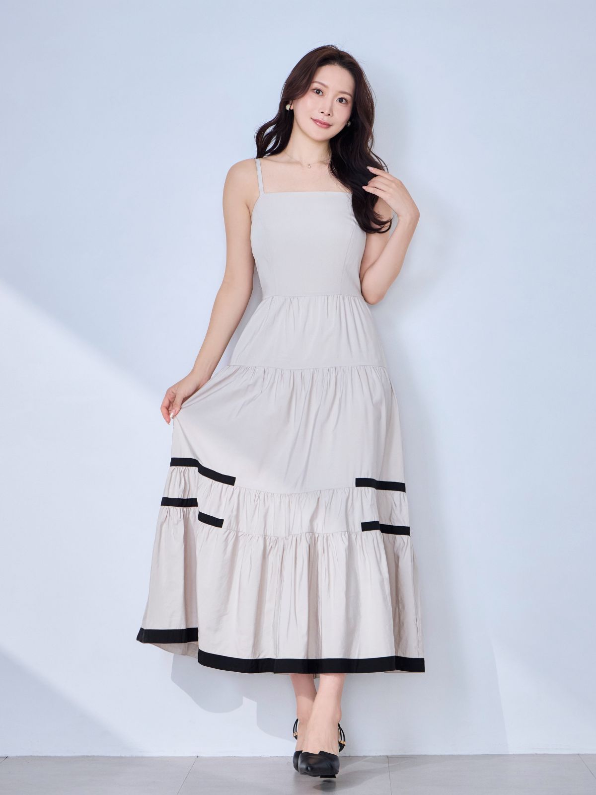 バイカラーティアードキャミワンピース:ブラック