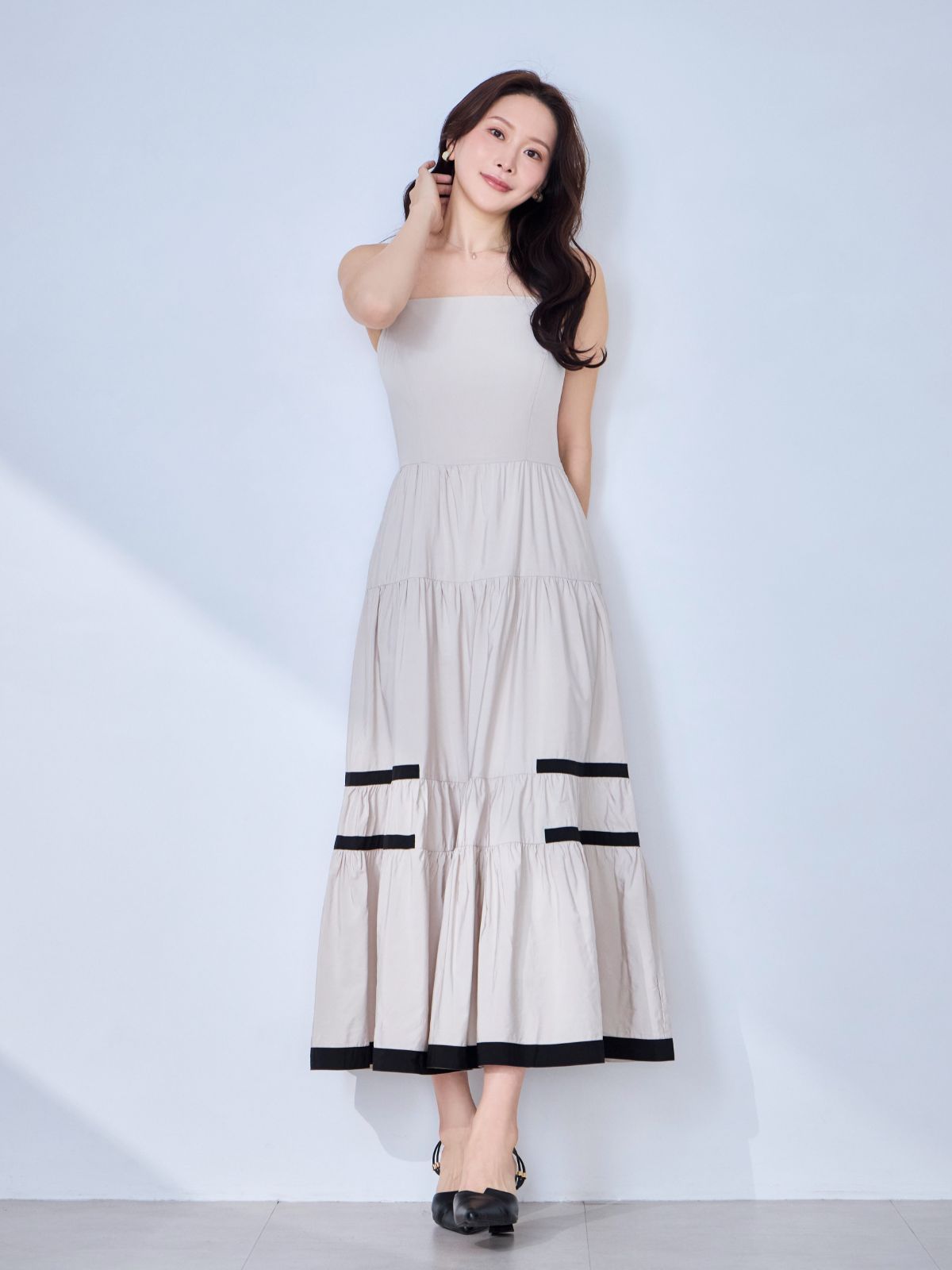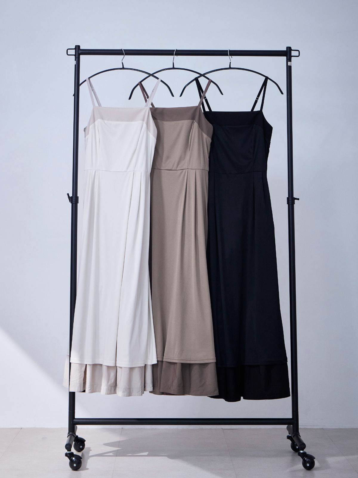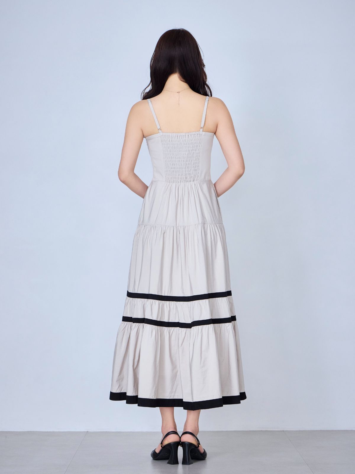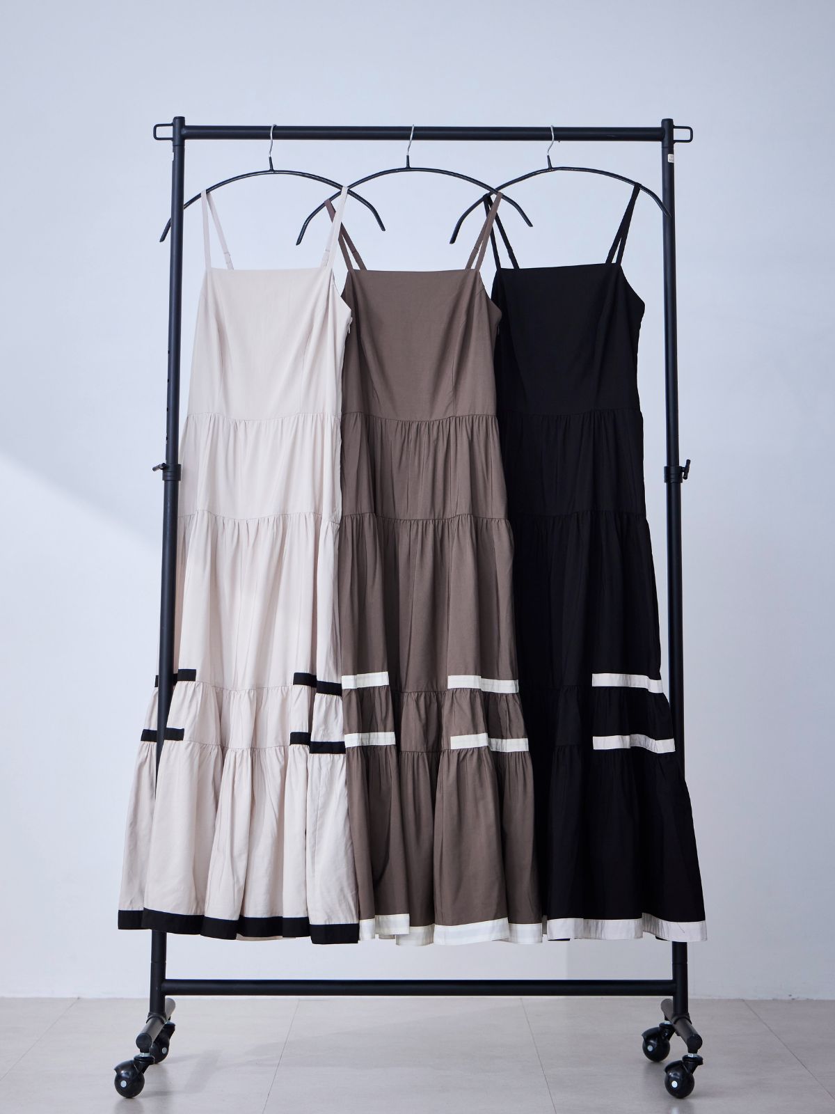 バイカラーティアードキャミワンピース:ブラック