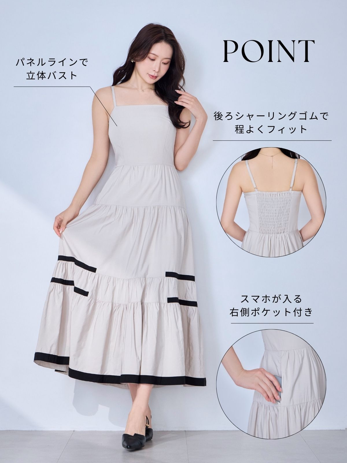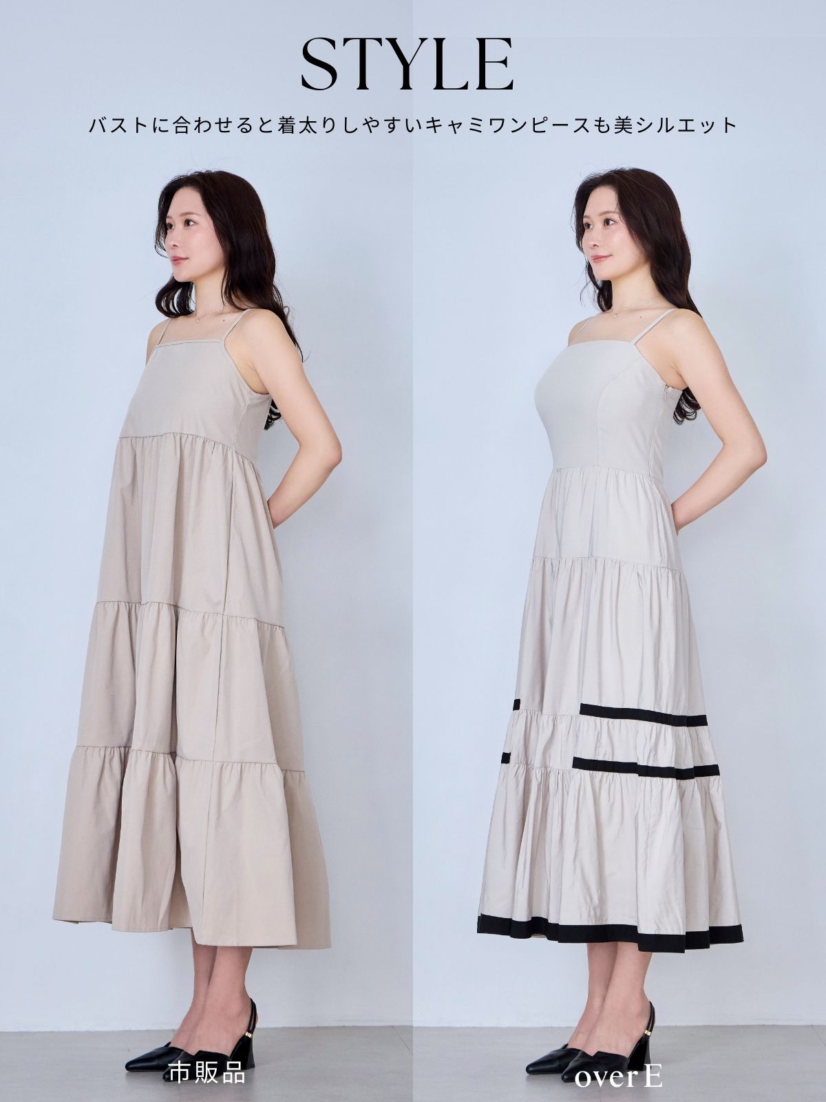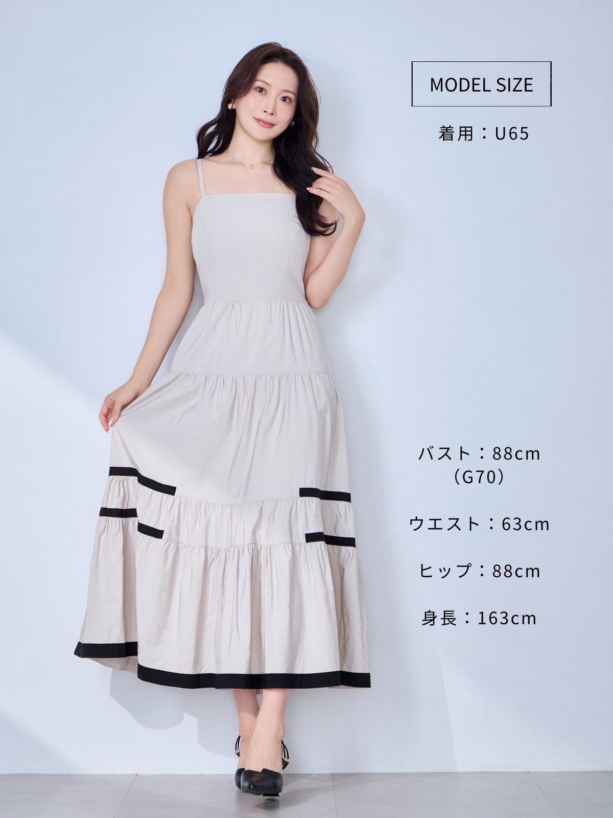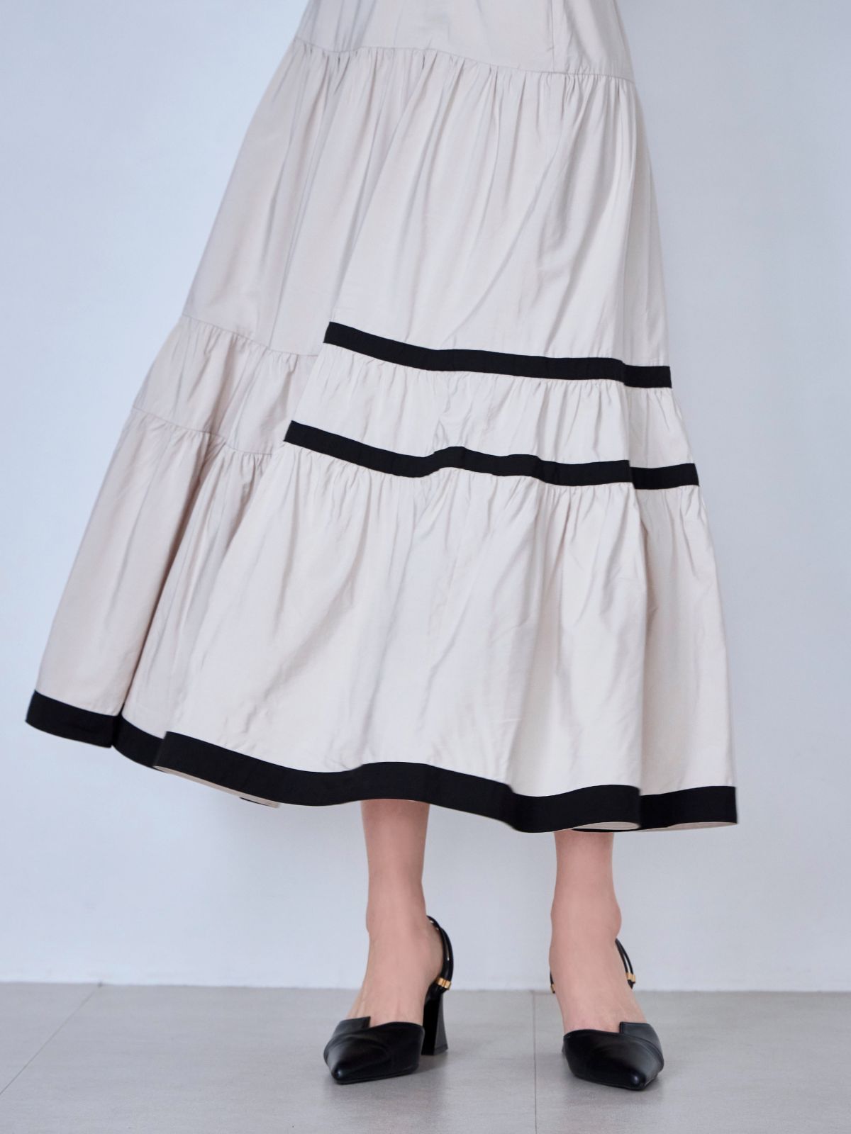 バイカラーティアードキャミワンピース:ブラック