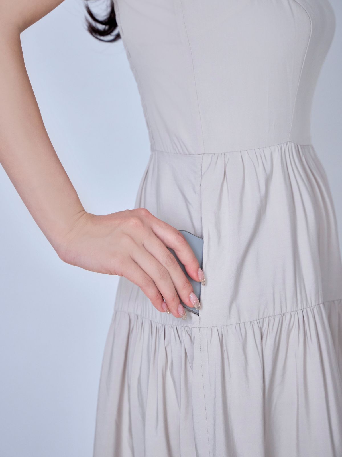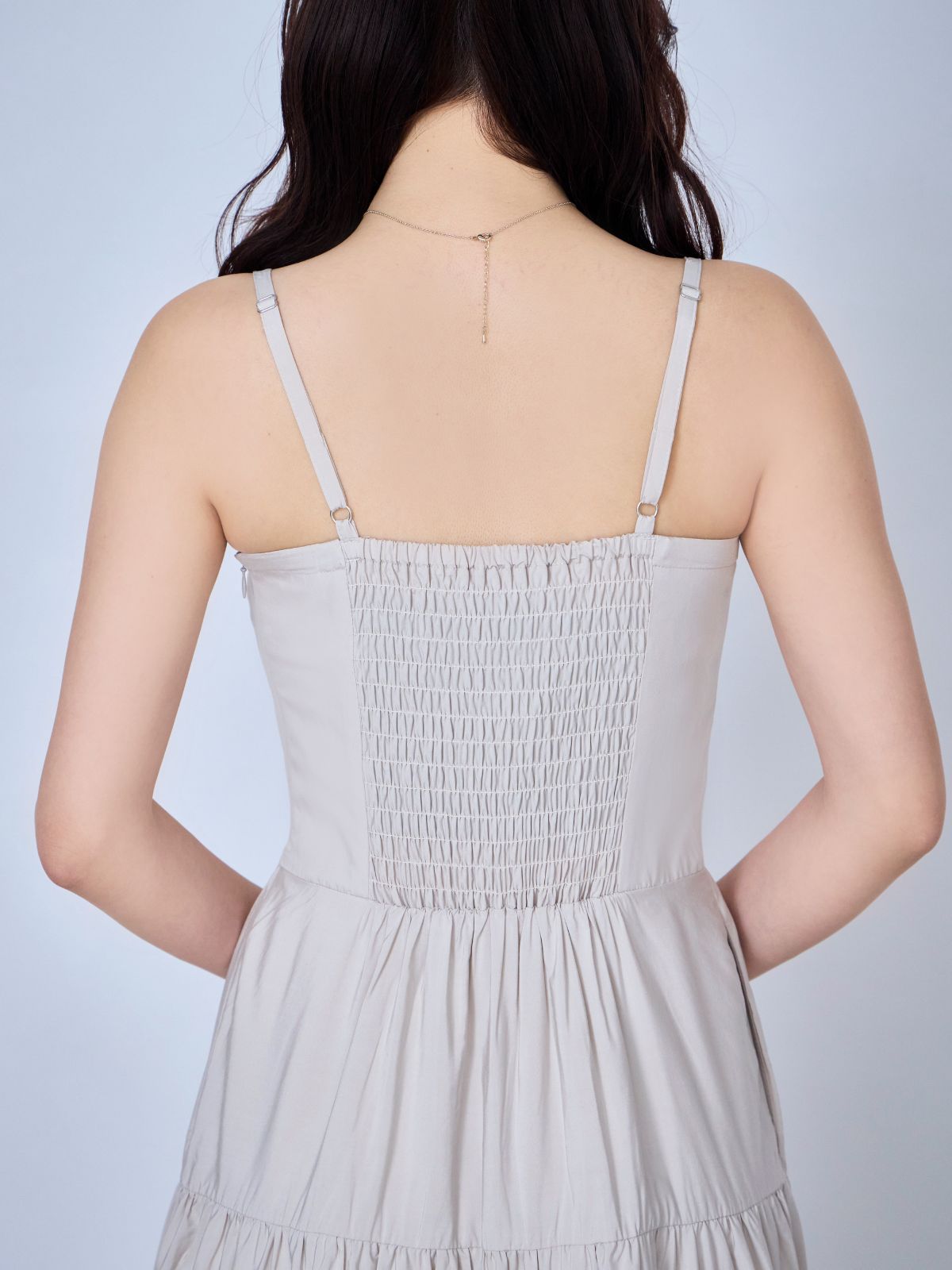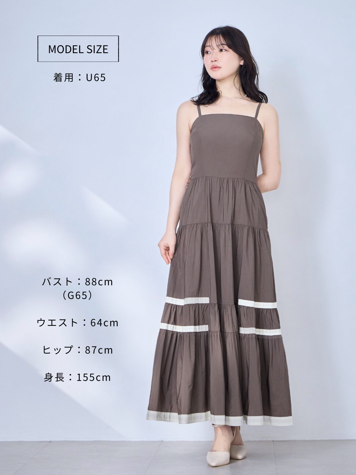 バイカラーティアードキャミワンピース:ブラウン
