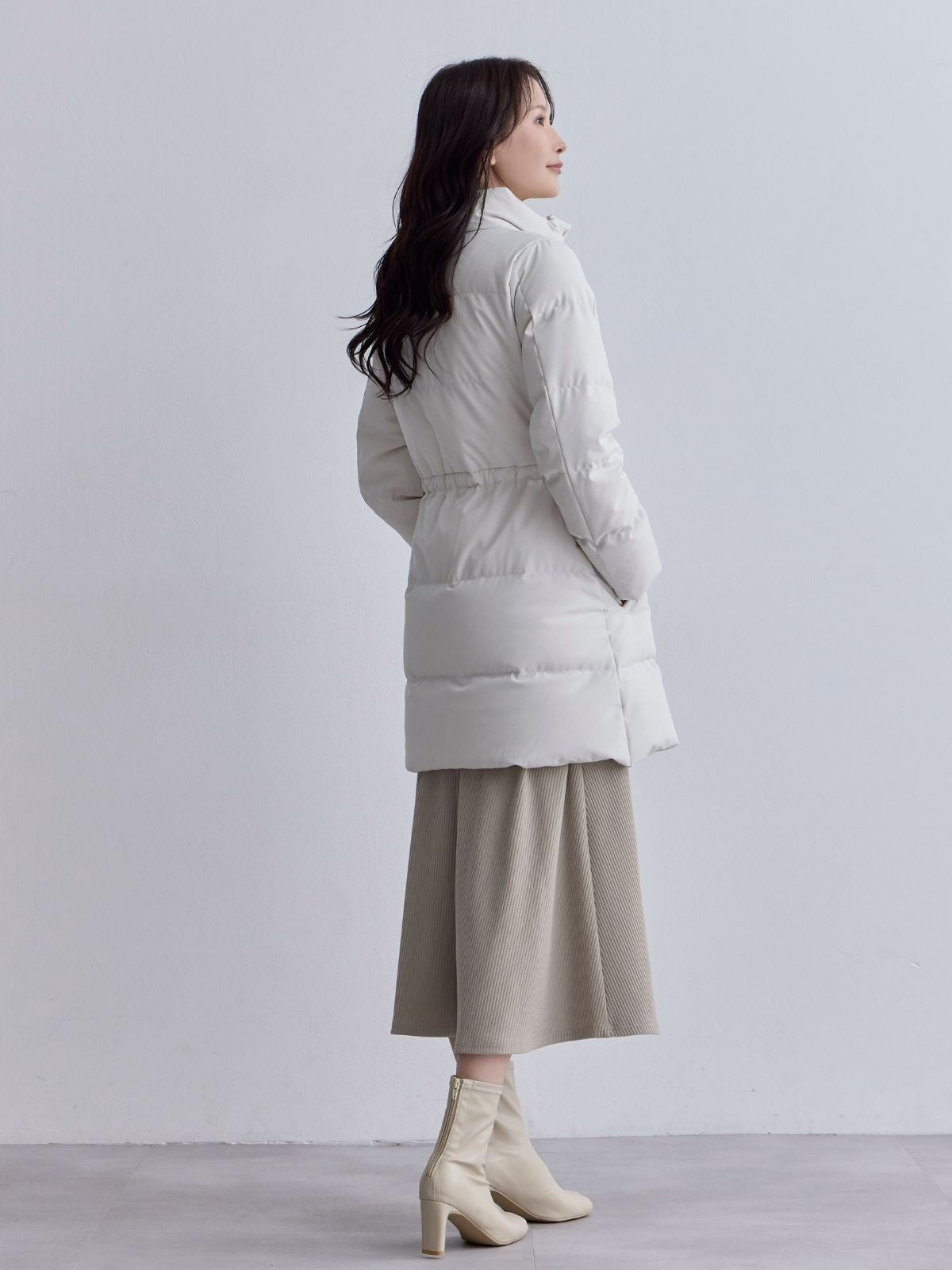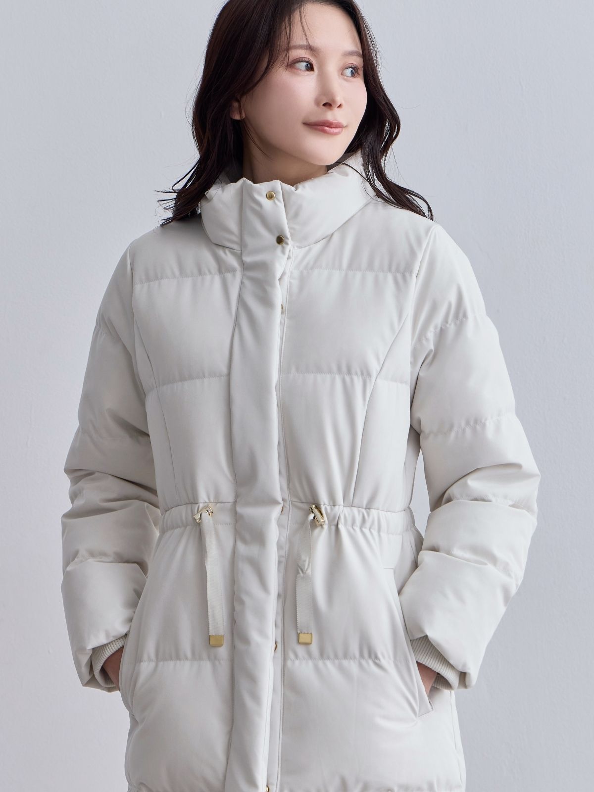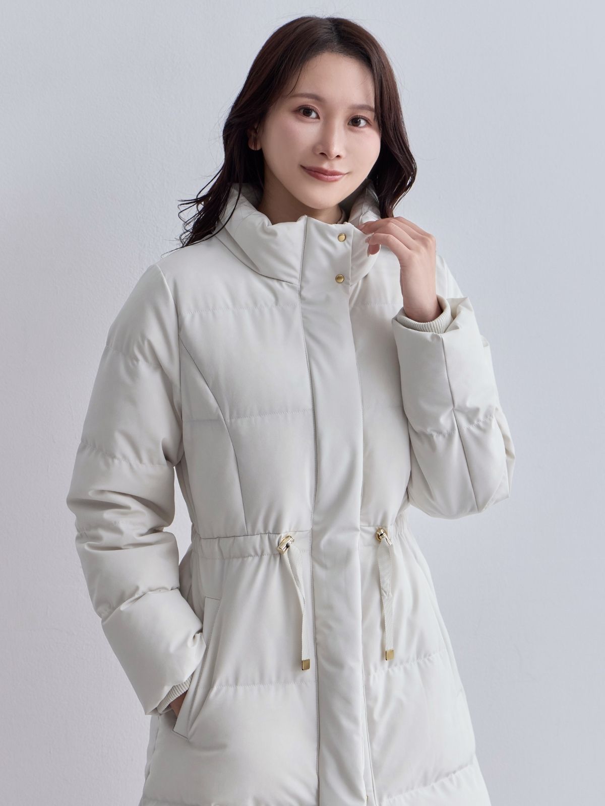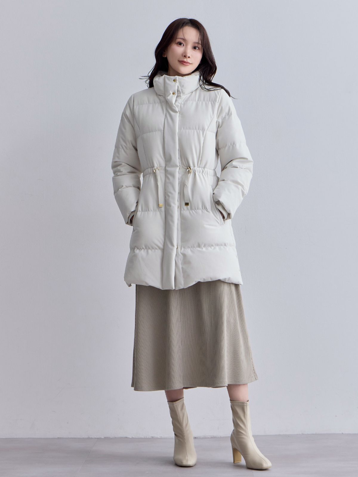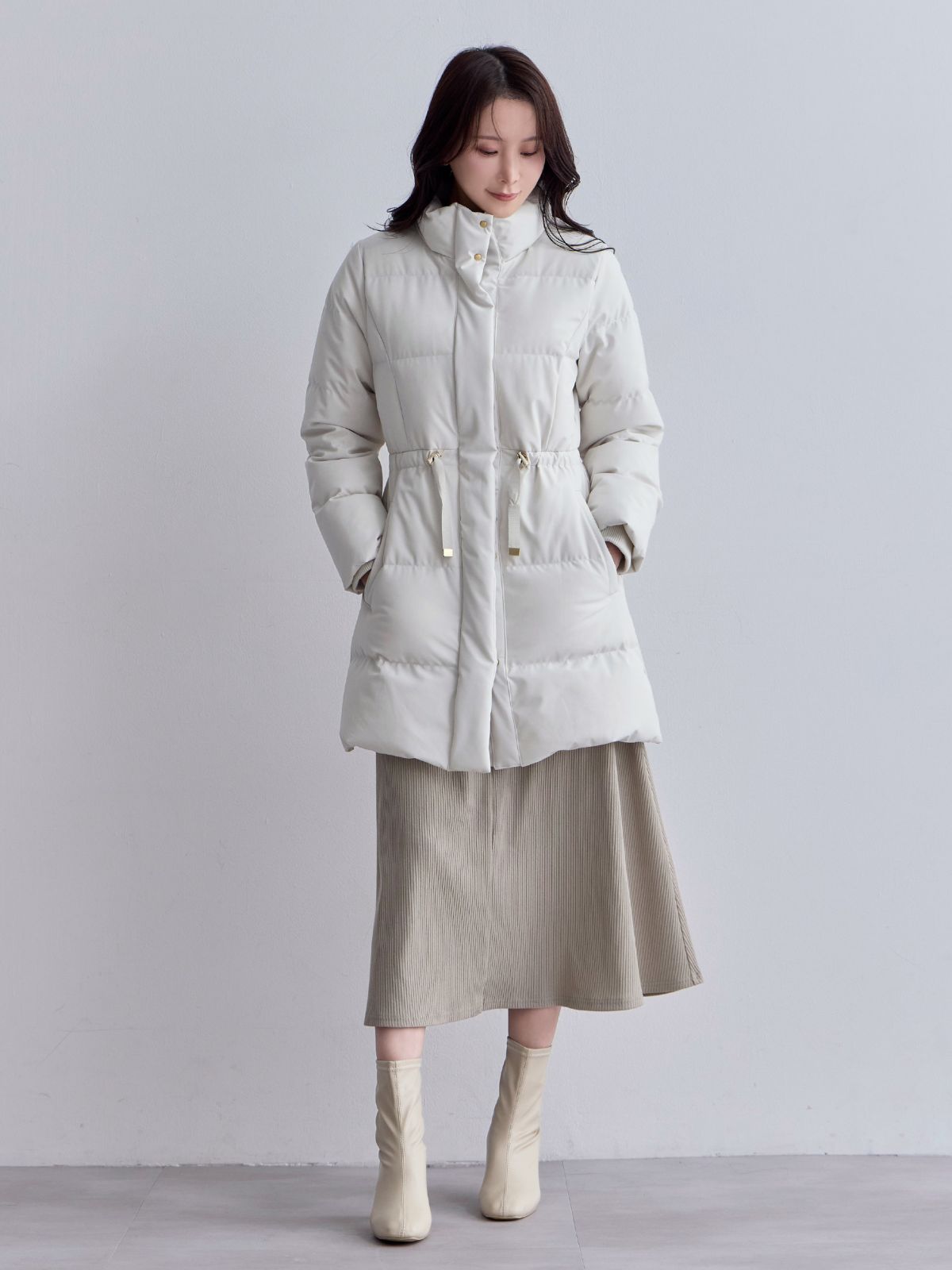 ウエストマークストレッチダウンコート:ライトグレー