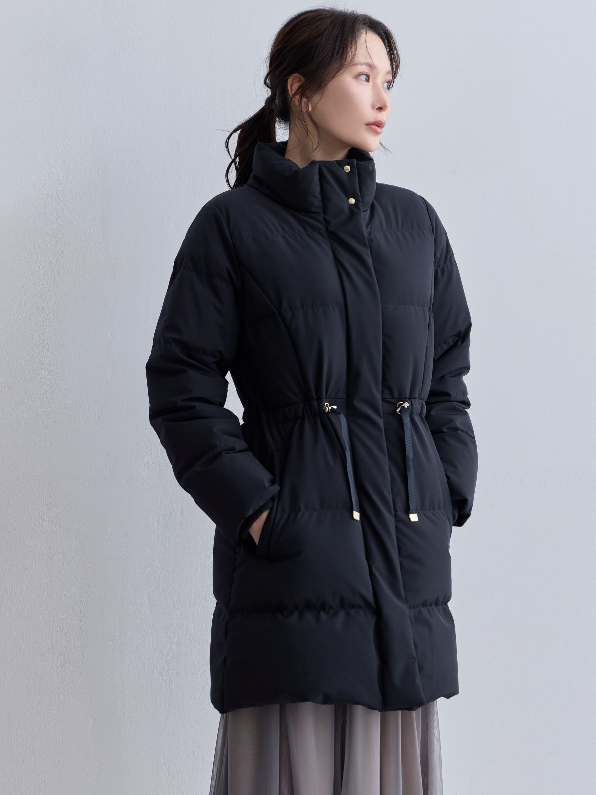 ウエストマークストレッチダウンコート:ライトグレー