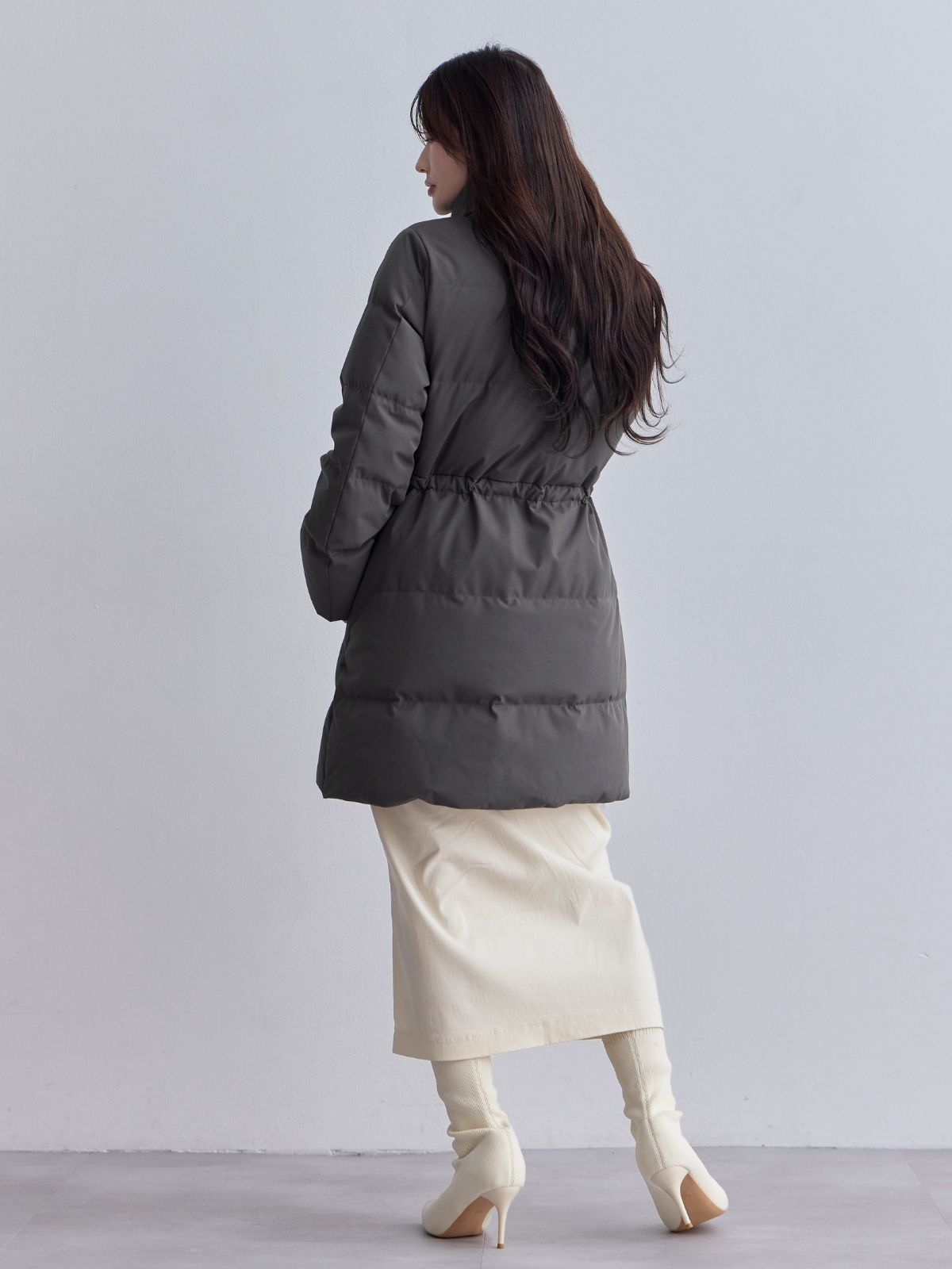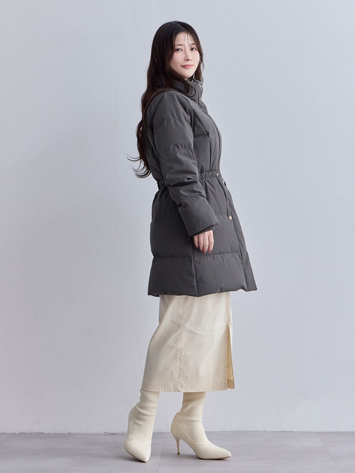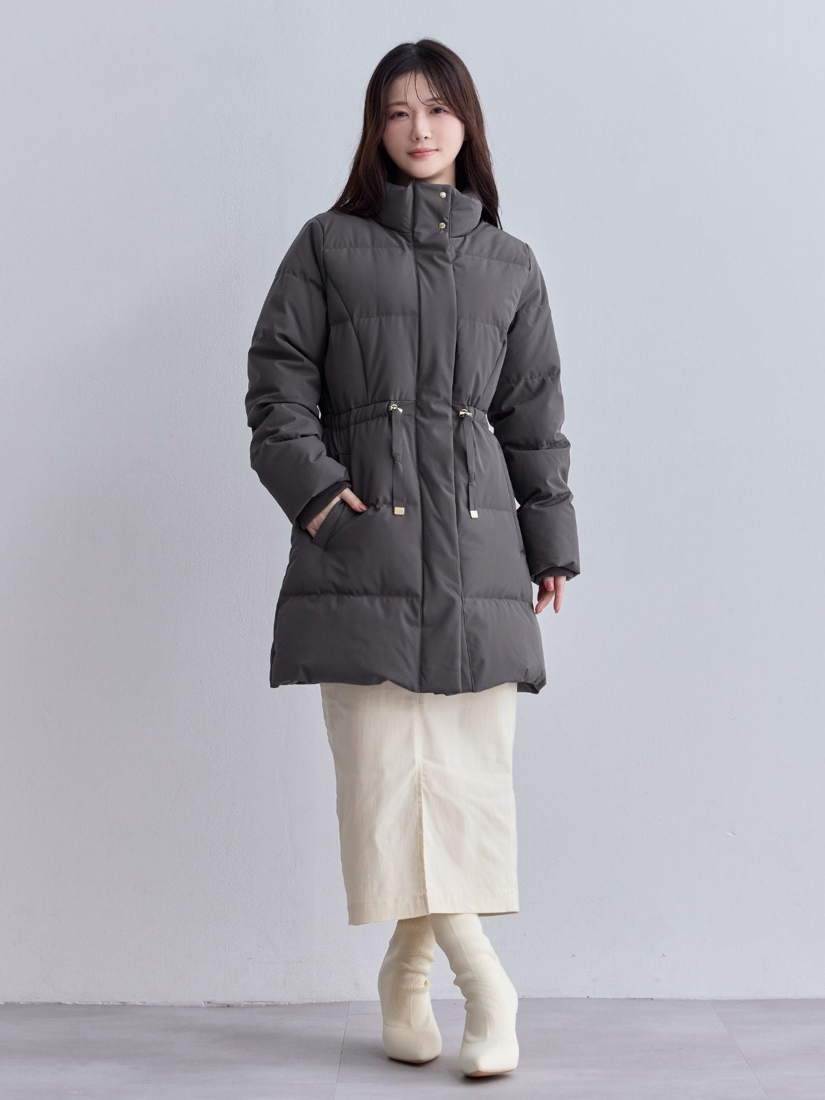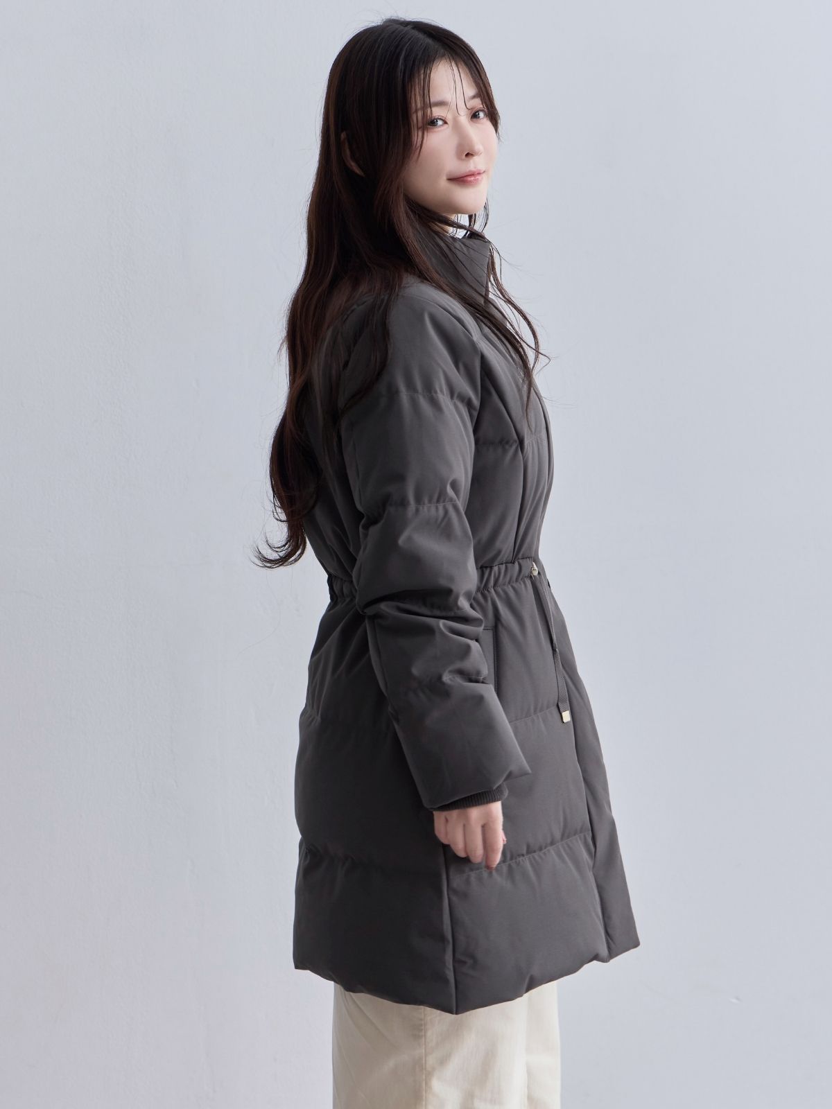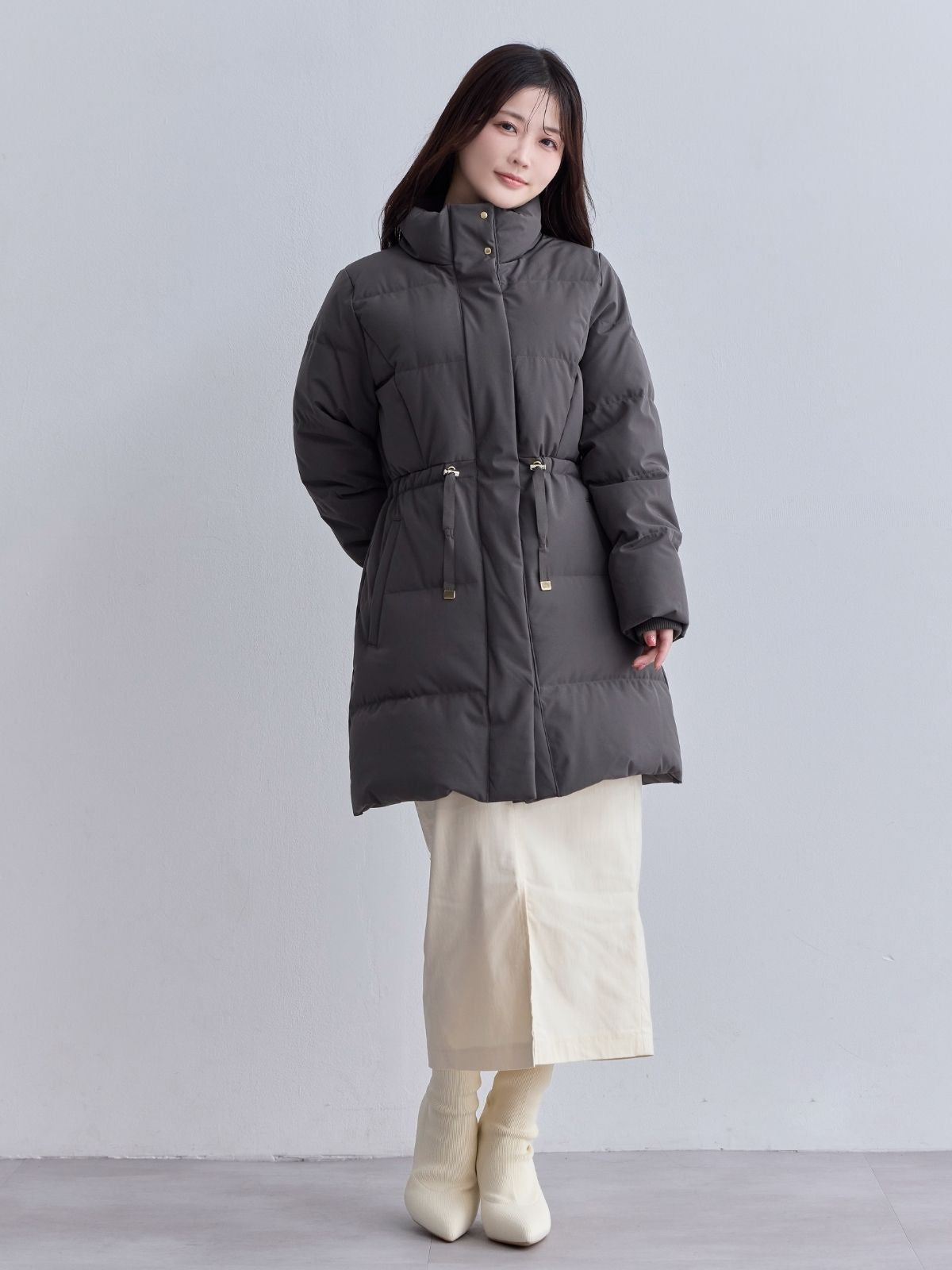 ウエストマークストレッチダウンコート:ライトグレー