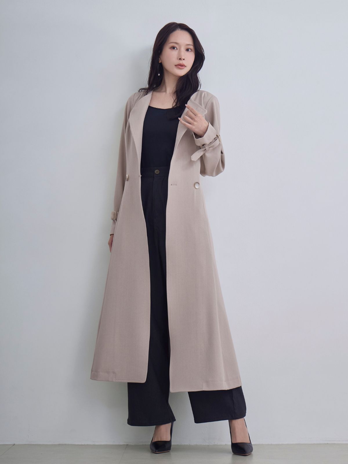 [1/29 22:00発売]2wayノーカラートレンチコート26SS:ベージュ[102サイズ対応/入荷次第発送]