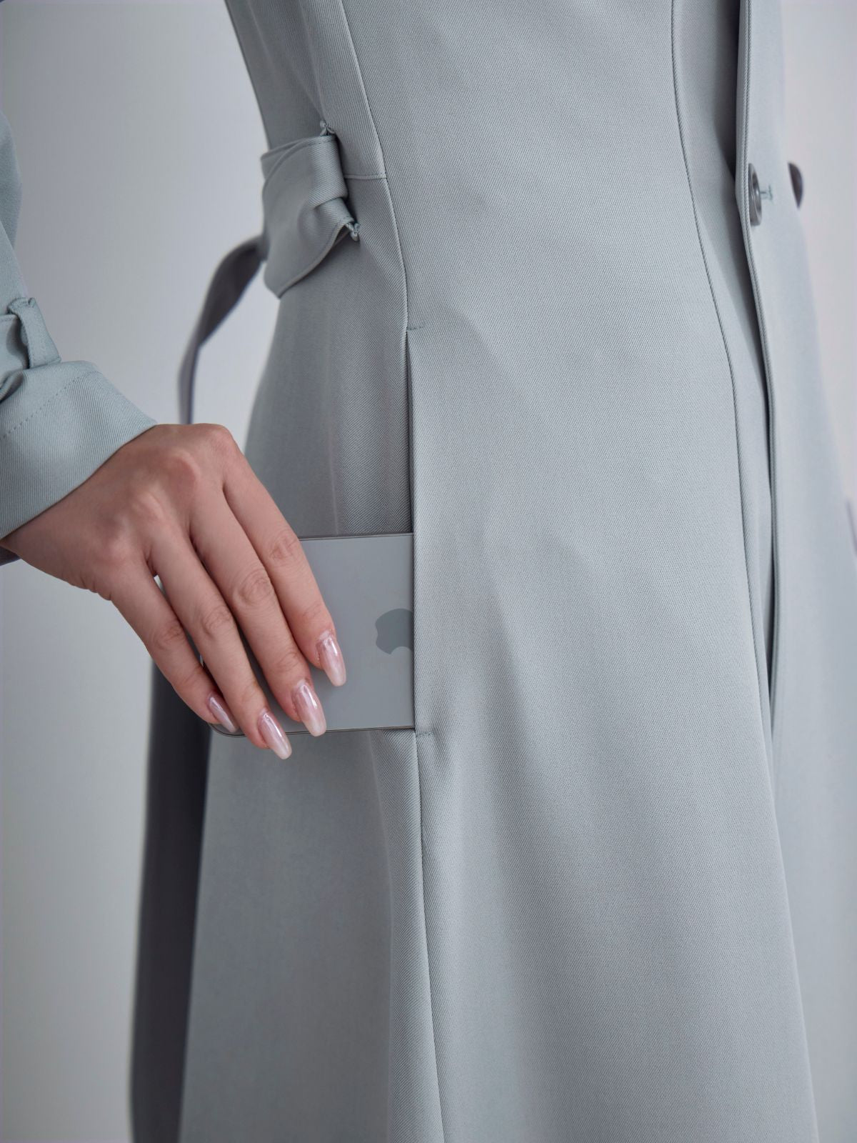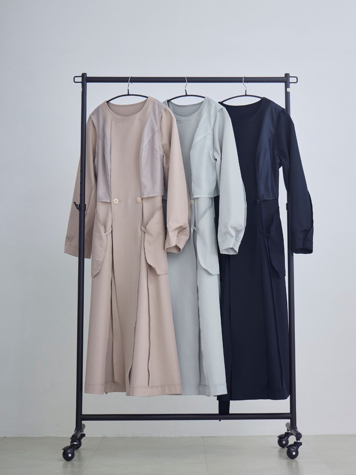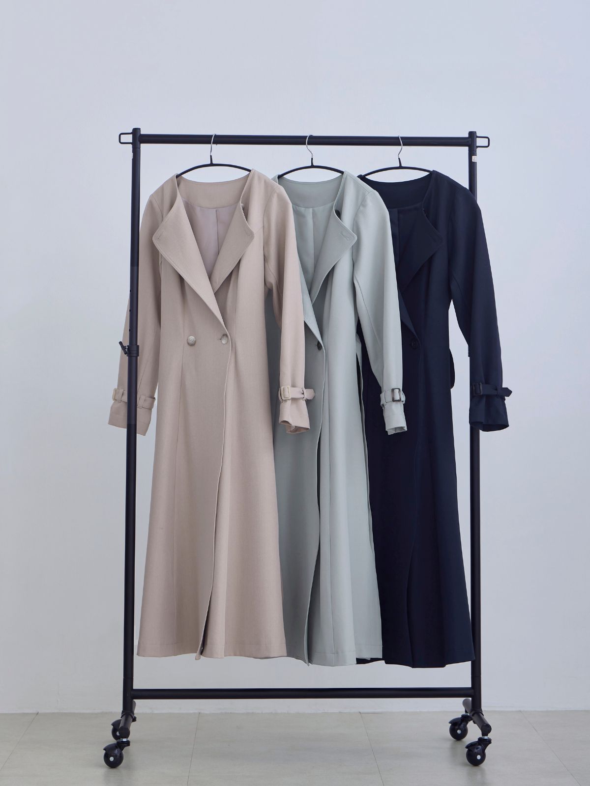 前回好評だった"2wayノーカラートレンチコート"を素材や仕様をアップデートし、新たにお作りしました。パネルラインで美しいシルエットはそのままに、より上品な素材を使用し気品あるコートに。
