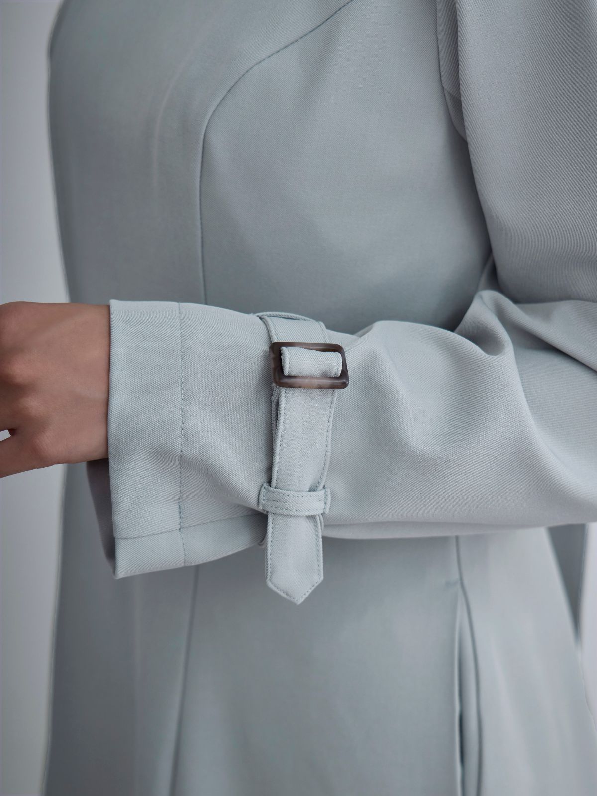 シンプルさを持ち合わせながらも、こなれ感のあるトレンチコートなので、カジュアルからフェミニンまでどんなコーディネートにも合わせていただけます。 ベルト付きなのでウエストマークや袖を絞って、シルエットを変えるアレンジも楽しめます。今回の袖のベルトは本体に留めておりますので紛失することなく安心してお召しいただけます。左右にはポケットをお付けしており、シワにもなりづらいのも嬉しいポイント。