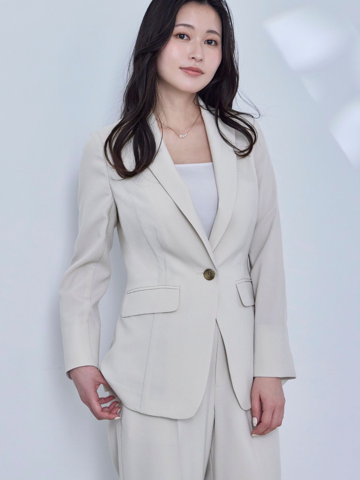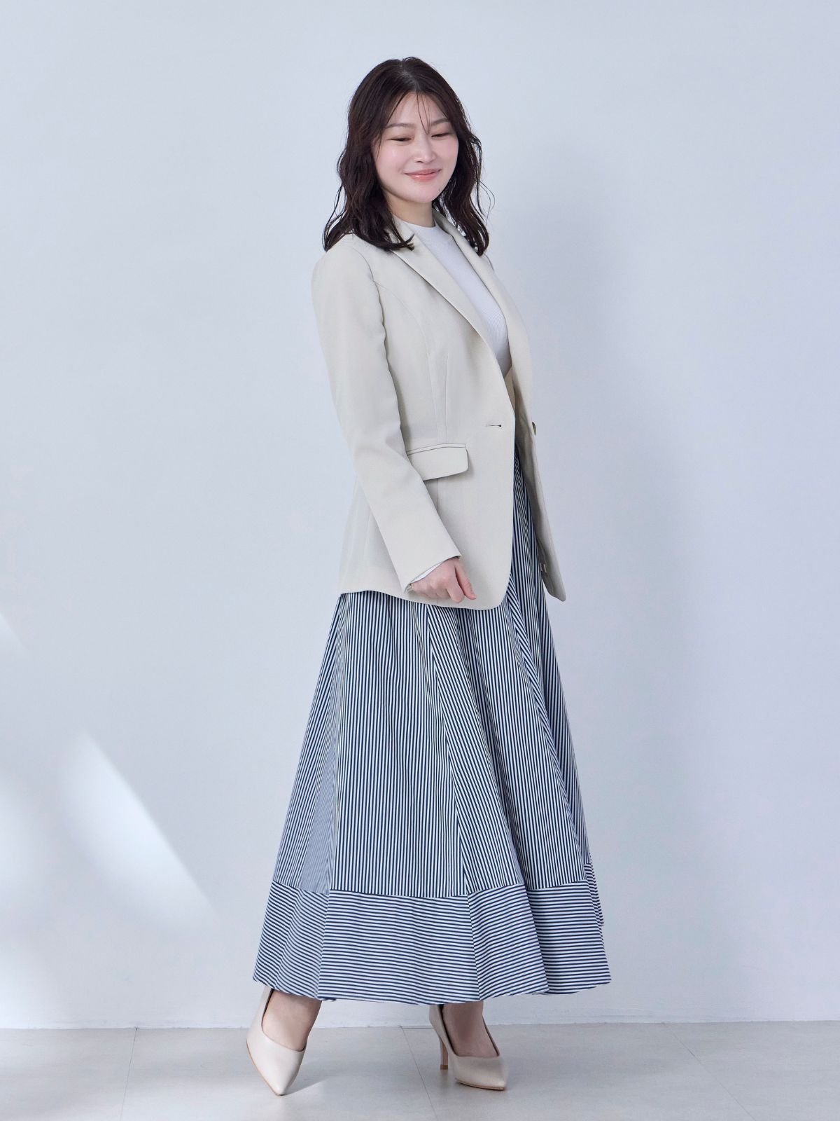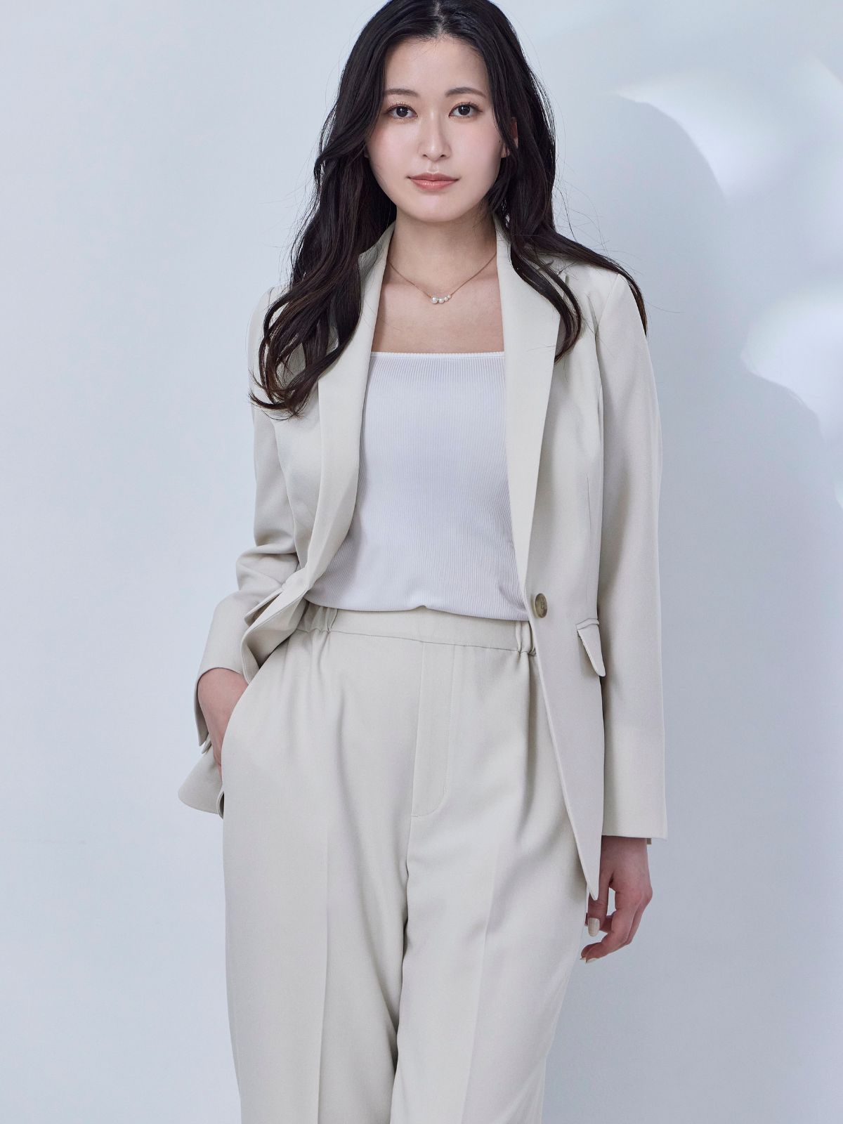 仕事用にネイビーを購入しました。 艶感のある上質な生地なので重たく見えませんし、ループタイプなので忙しい朝でも形がきれいに決まるのが嬉しいです。 「ツイードライクマーメイドワンピース(ネイビー)」と合わせていますが、重ねてももたつかずシルエットがきれいにまとまります。1枚で着ても形が美しく着回し力も高いと思います。これからもたくさん着たいです。