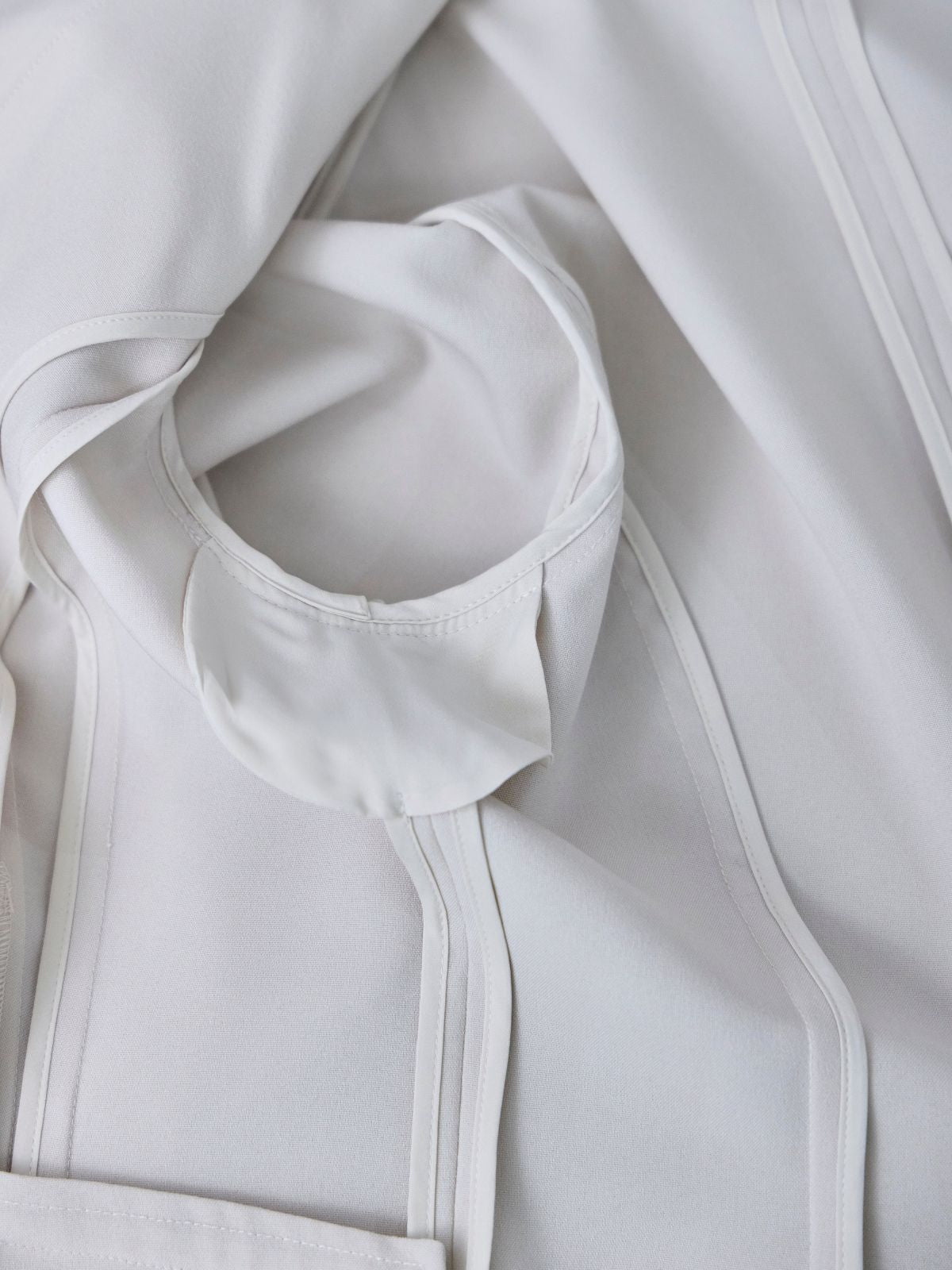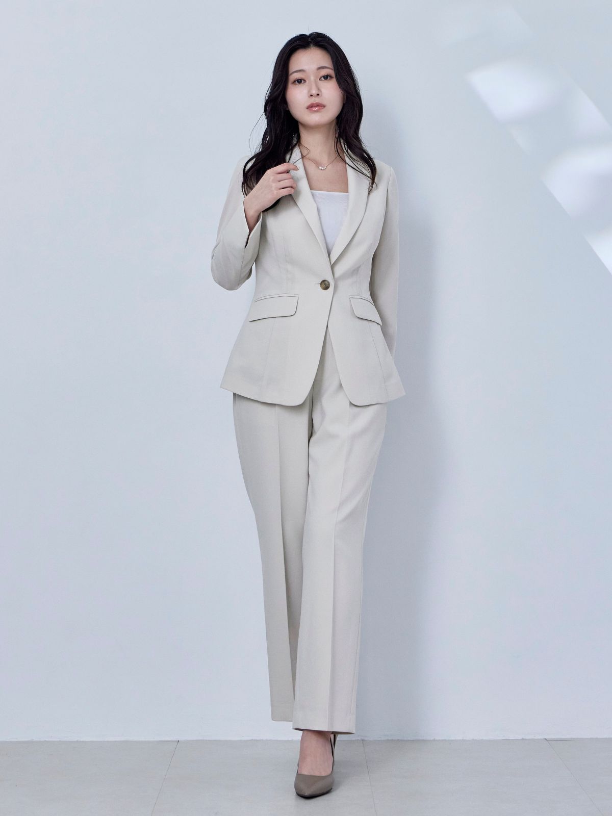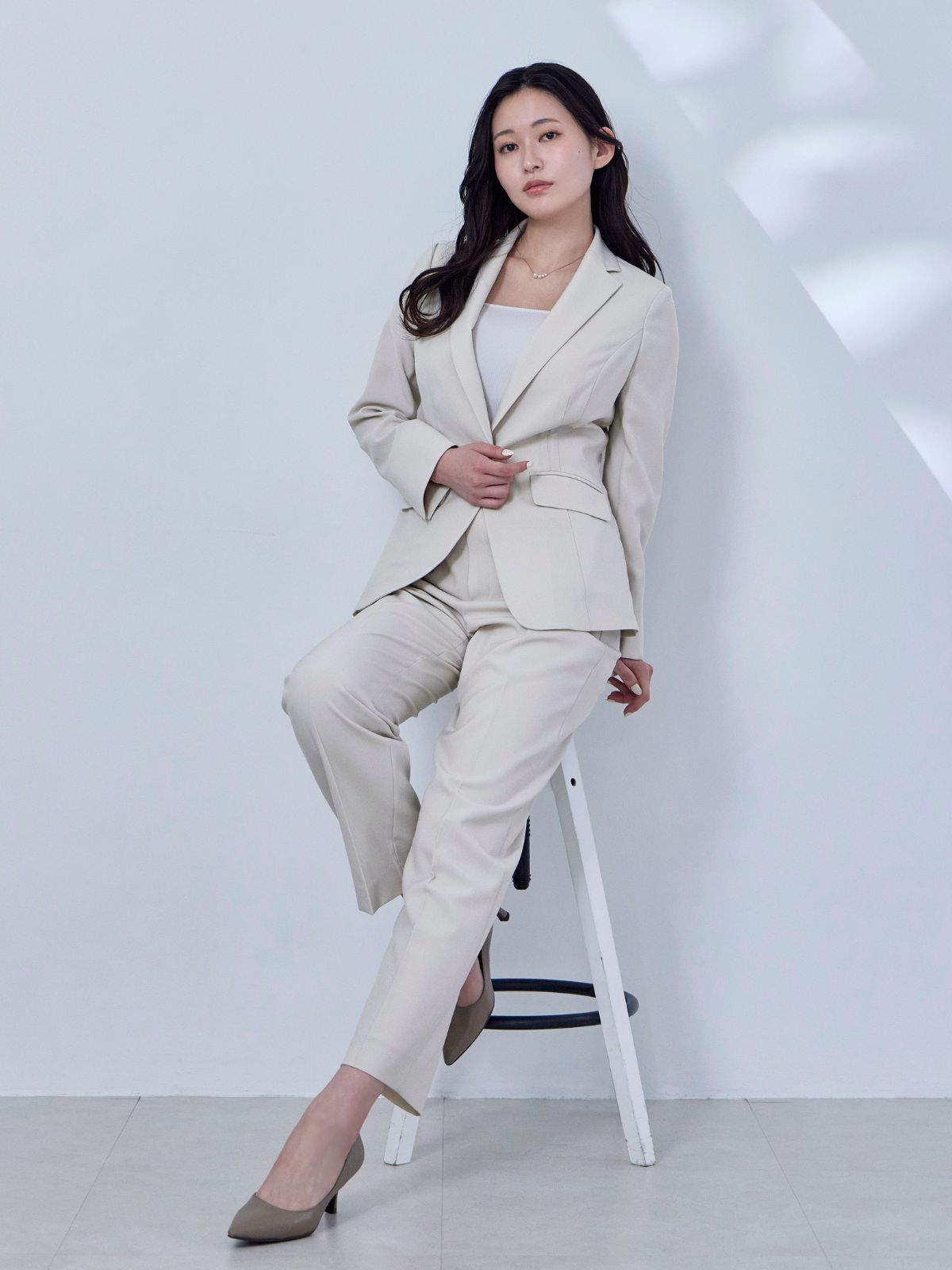 仕事用にネイビーを購入しました。 艶感のある上質な生地なので重たく見えませんし、ループタイプなので忙しい朝でも形がきれいに決まるのが嬉しいです。 「ツイードライクマーメイドワンピース(ネイビー)」と合わせていますが、重ねてももたつかずシルエットがきれいにまとまります。1枚で着ても形が美しく着回し力も高いと思います。これからもたくさん着たいです。