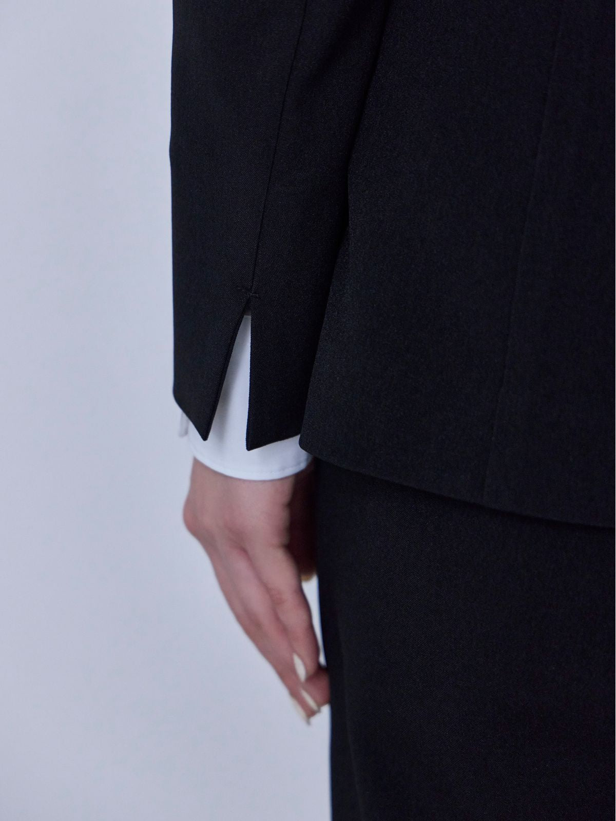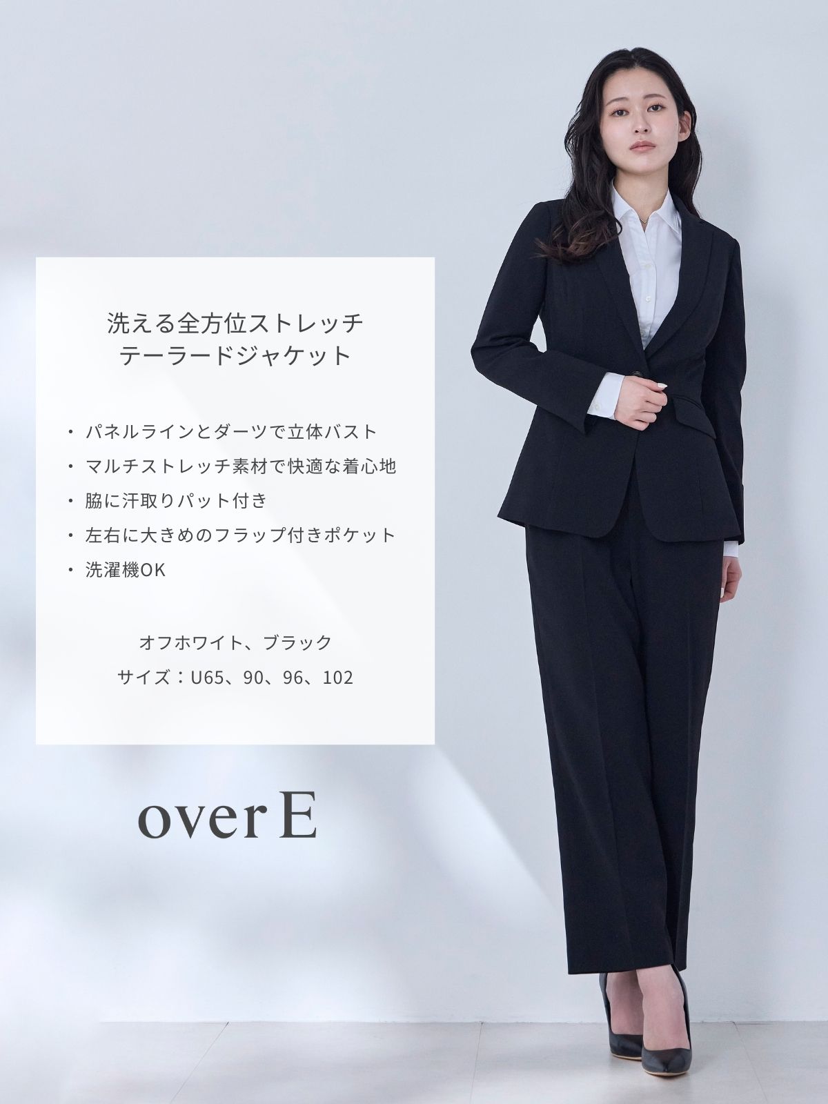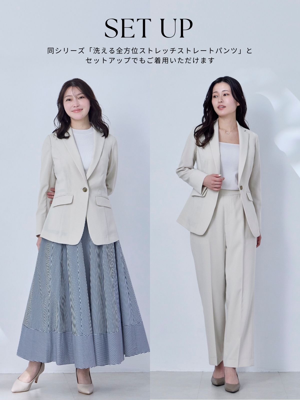 洗える全方位ストレッチテーラードジャケット:ブラック