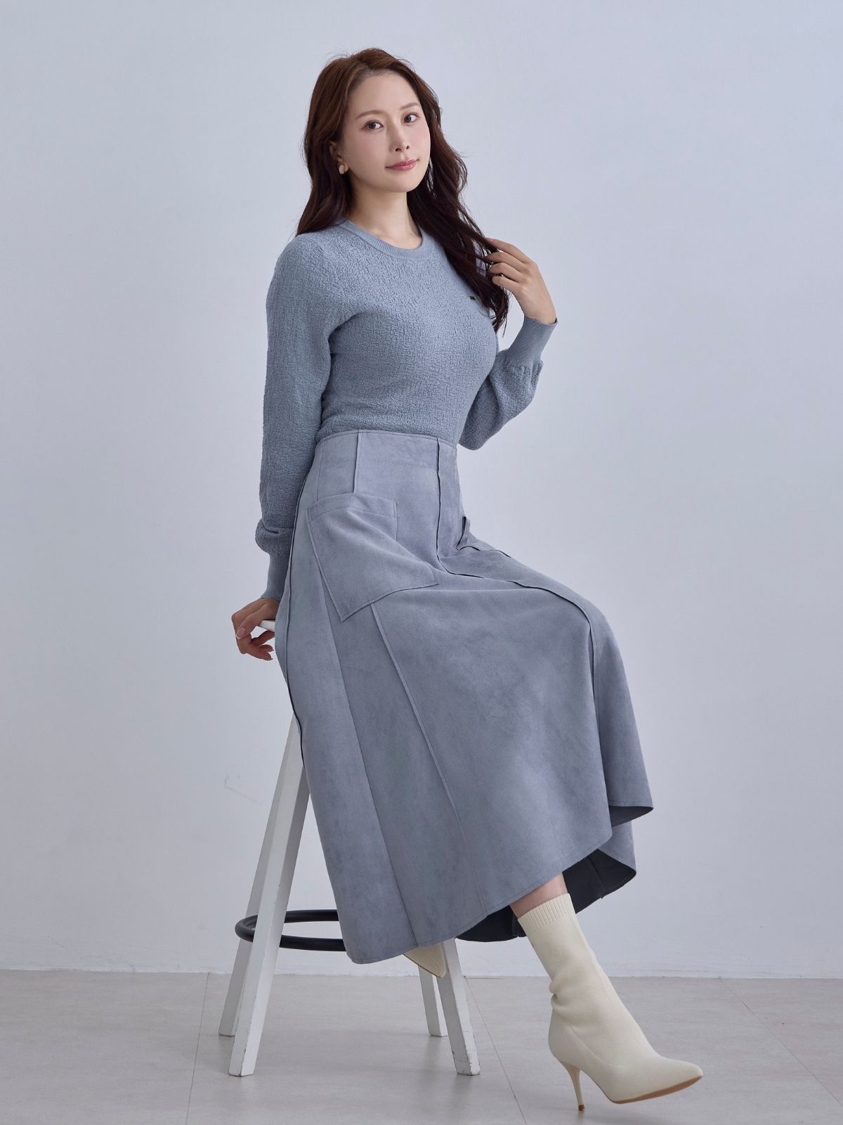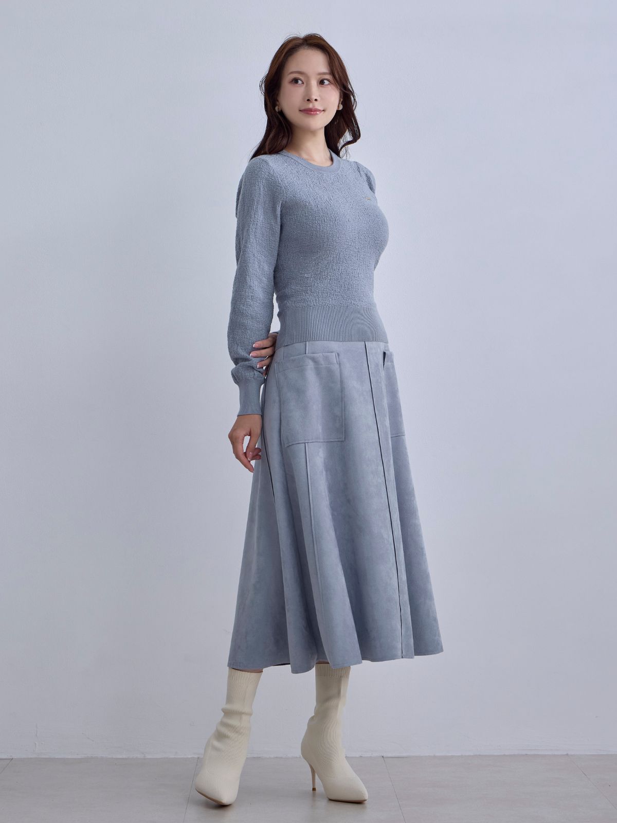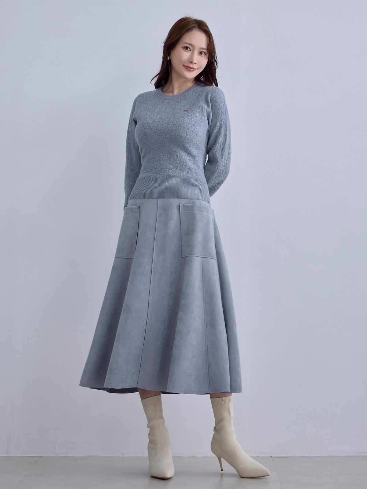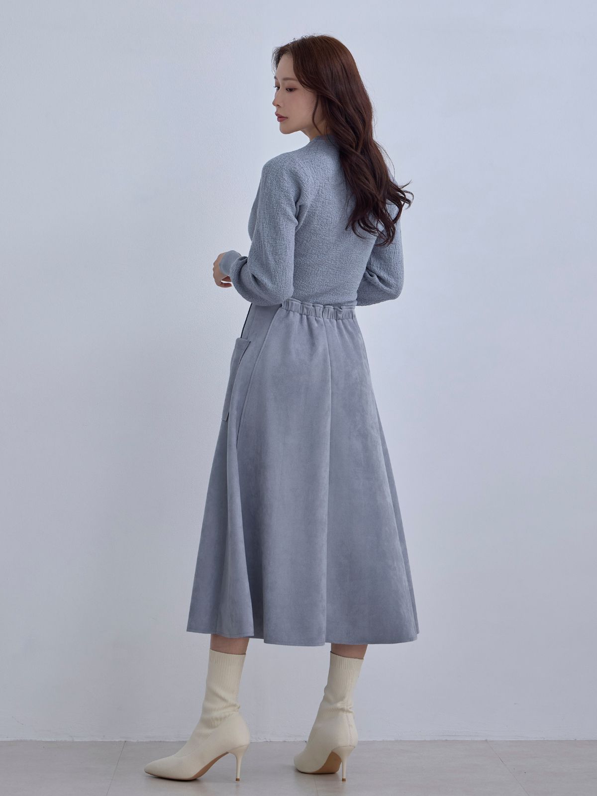 [12/11 22:00発売 期間限定 300円OFF]スエードライクフレアスカート:ブルーグレー